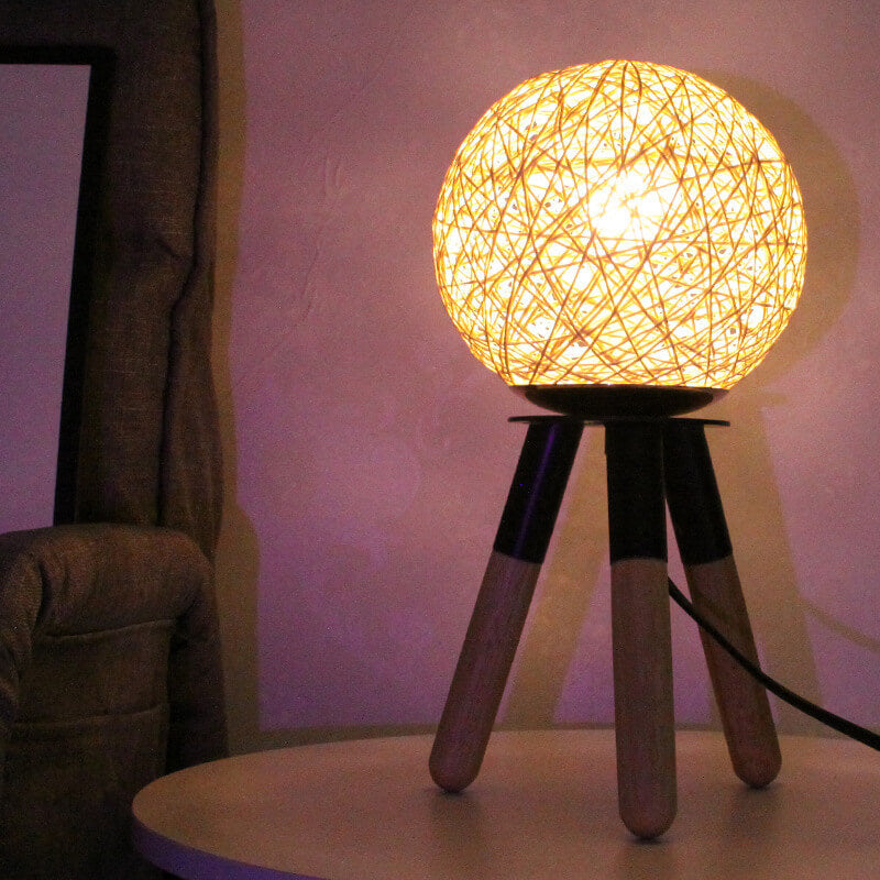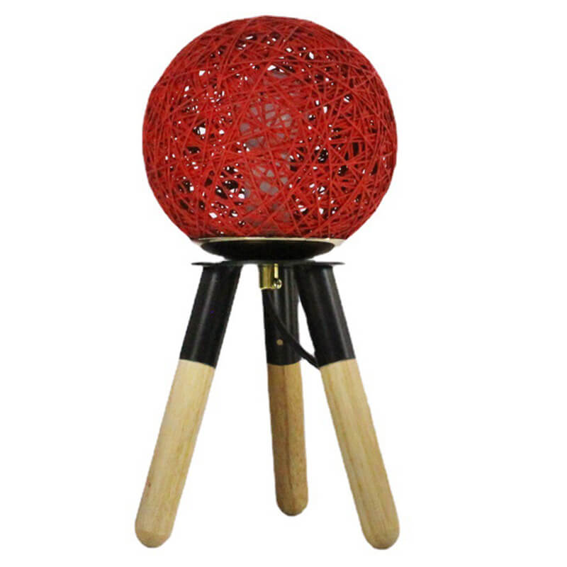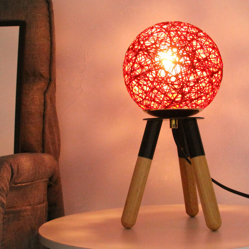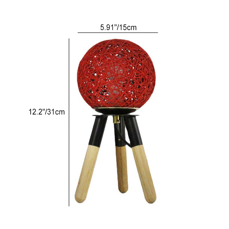Contemporary Nordic Rattan Ball Wood Tripod 1-Light Table Lamp For Bedroom