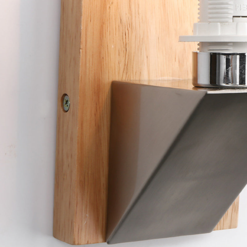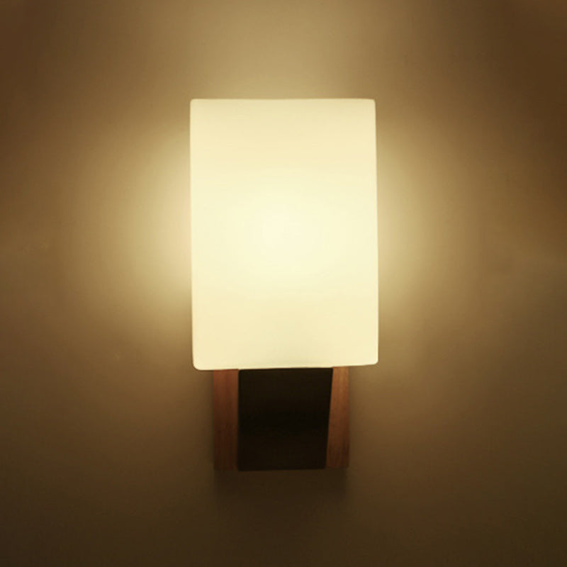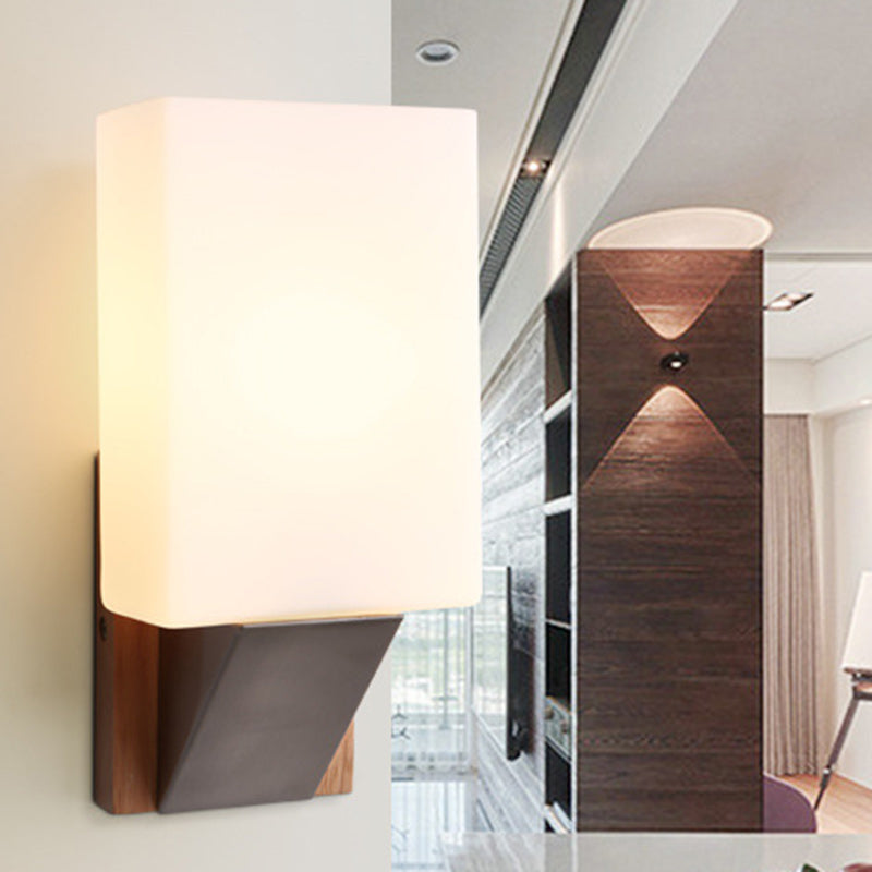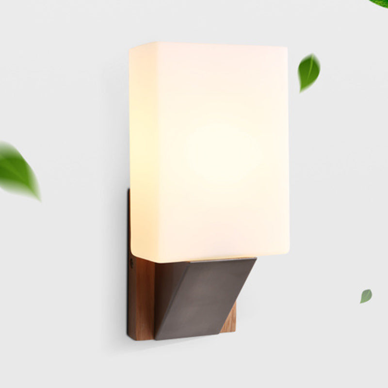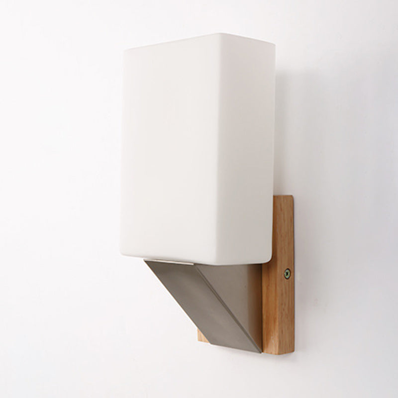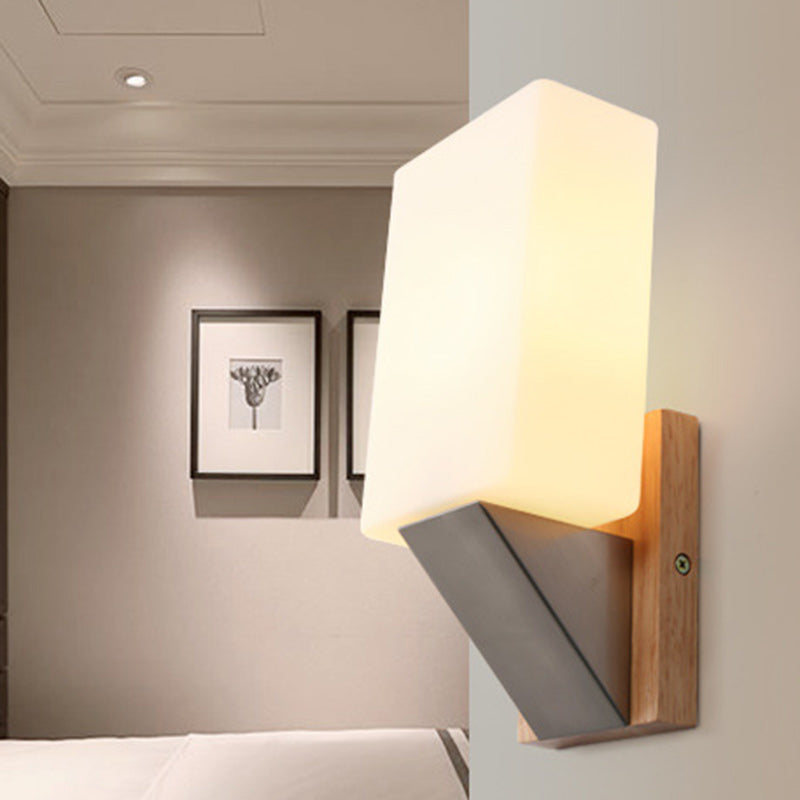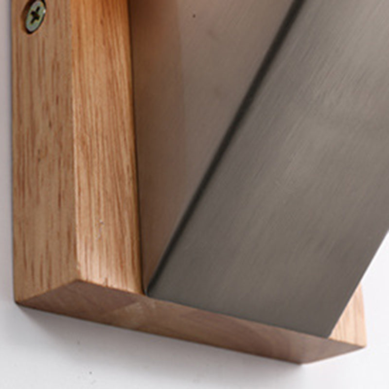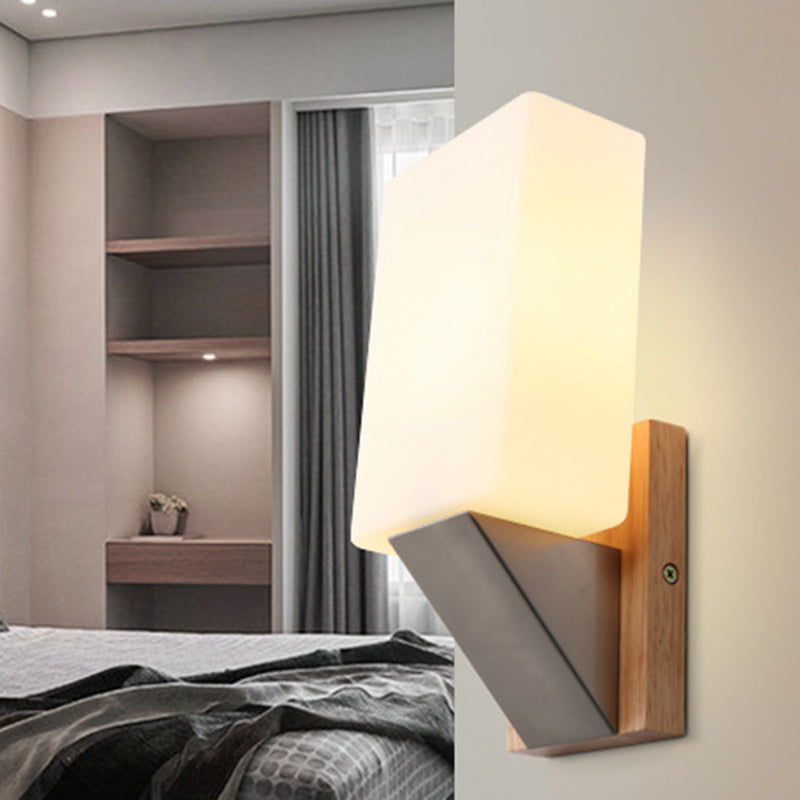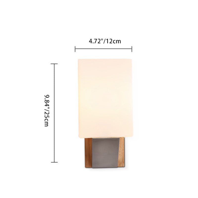 Contemporary Nordic Rectangular Wood Iron Glass 1-Light Wall Sconce Lamp For Living Room