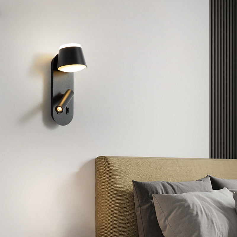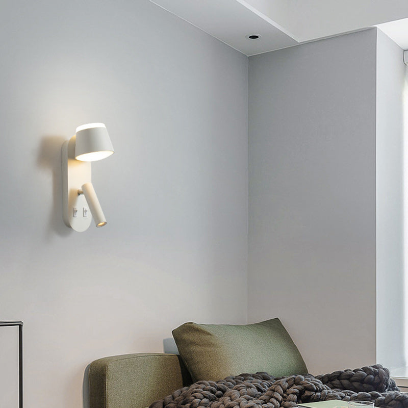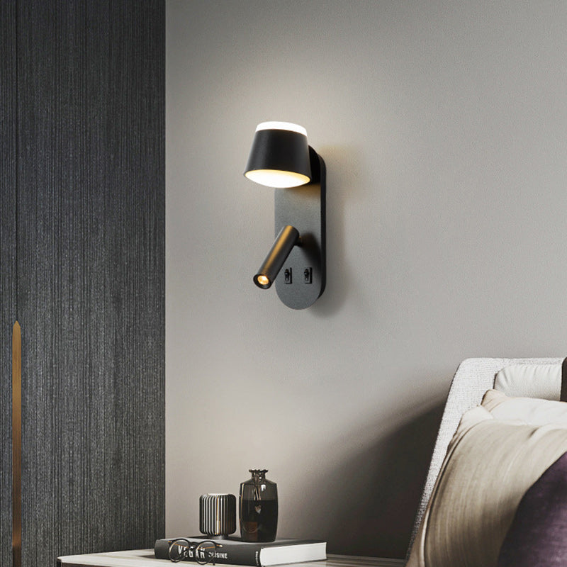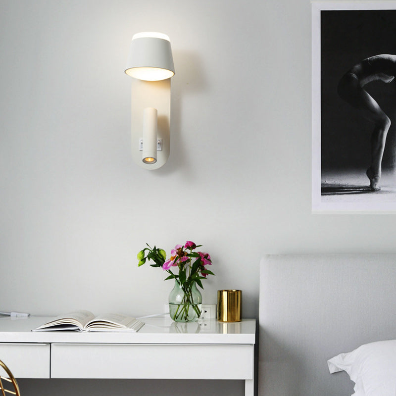 Contemporary Nordic Rotatable Aluminum Acrylic Cylinder Elliptical With Spotlight LED Wall Sconce Lamp For Bedside
