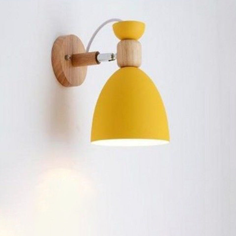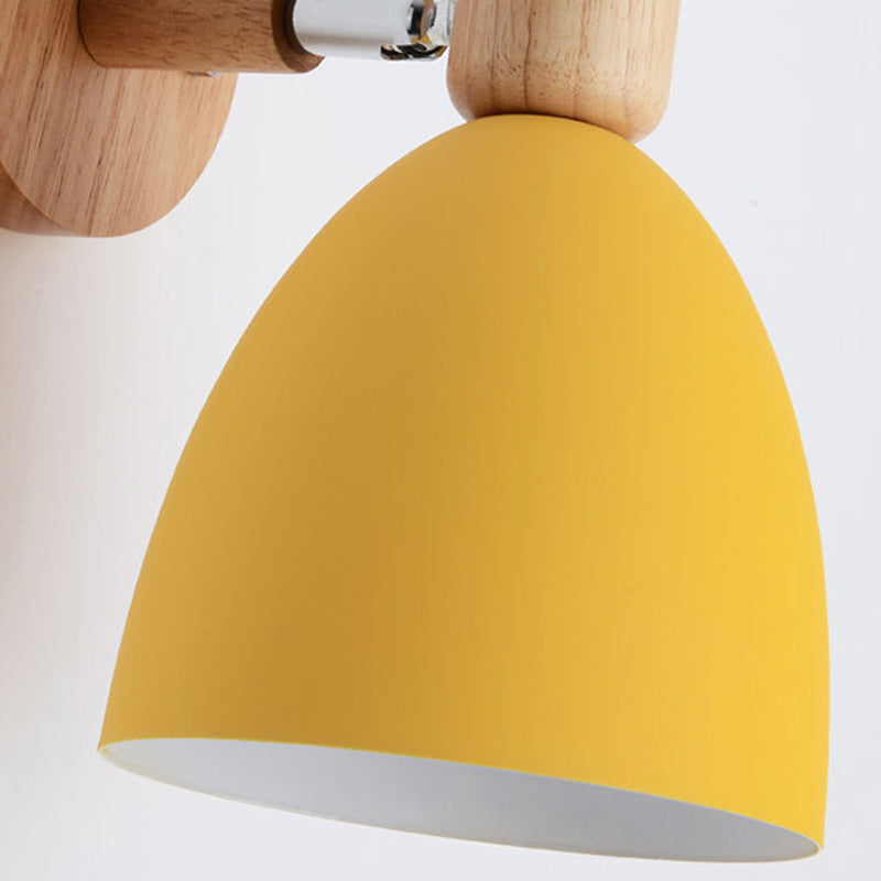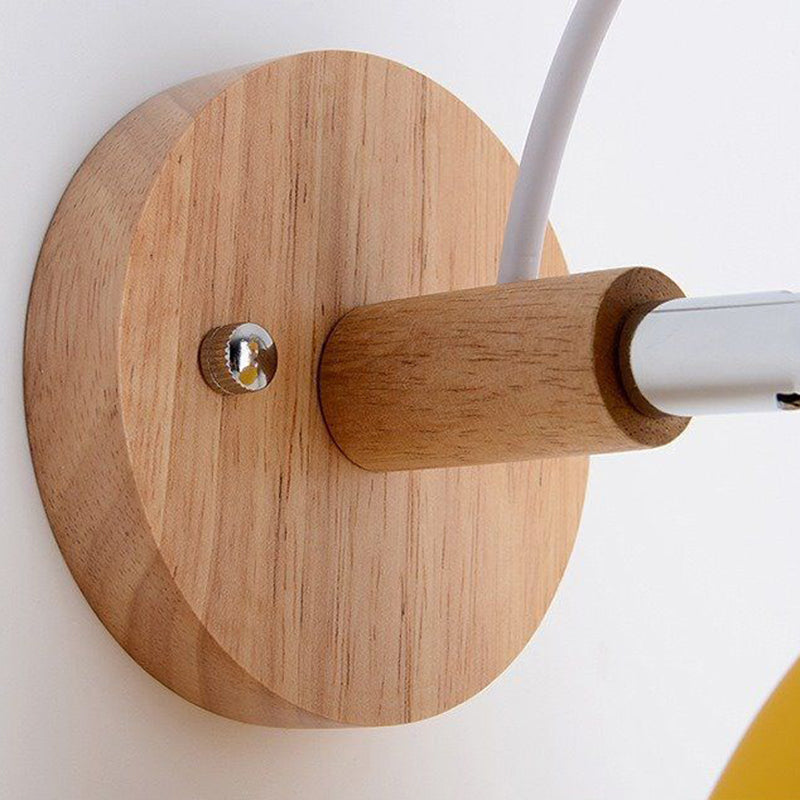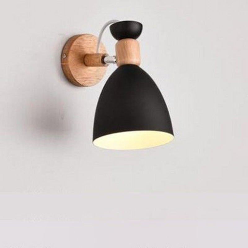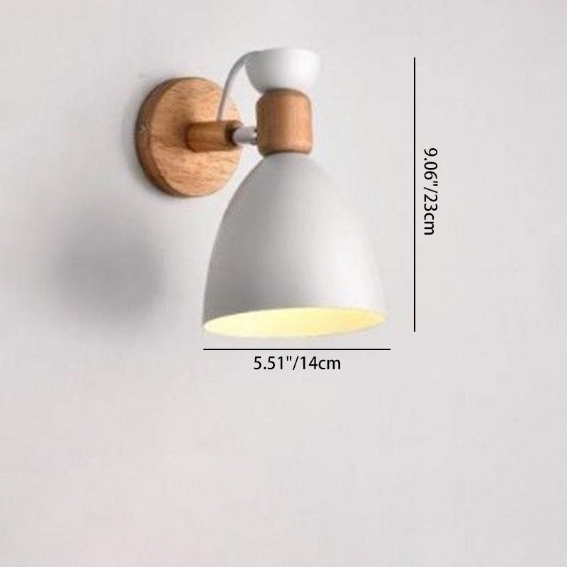 Contemporary Nordic Rotatable Wood Iron Round Trumpet Shape 1-Light Wall Sconce Lamp For Hallway