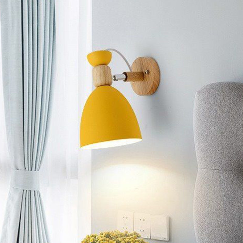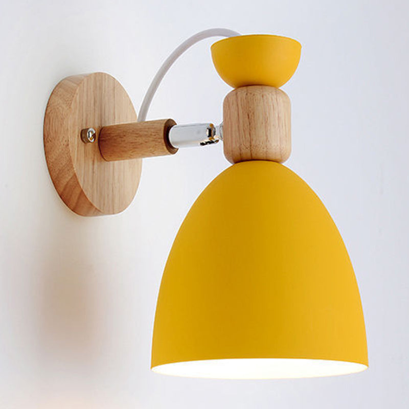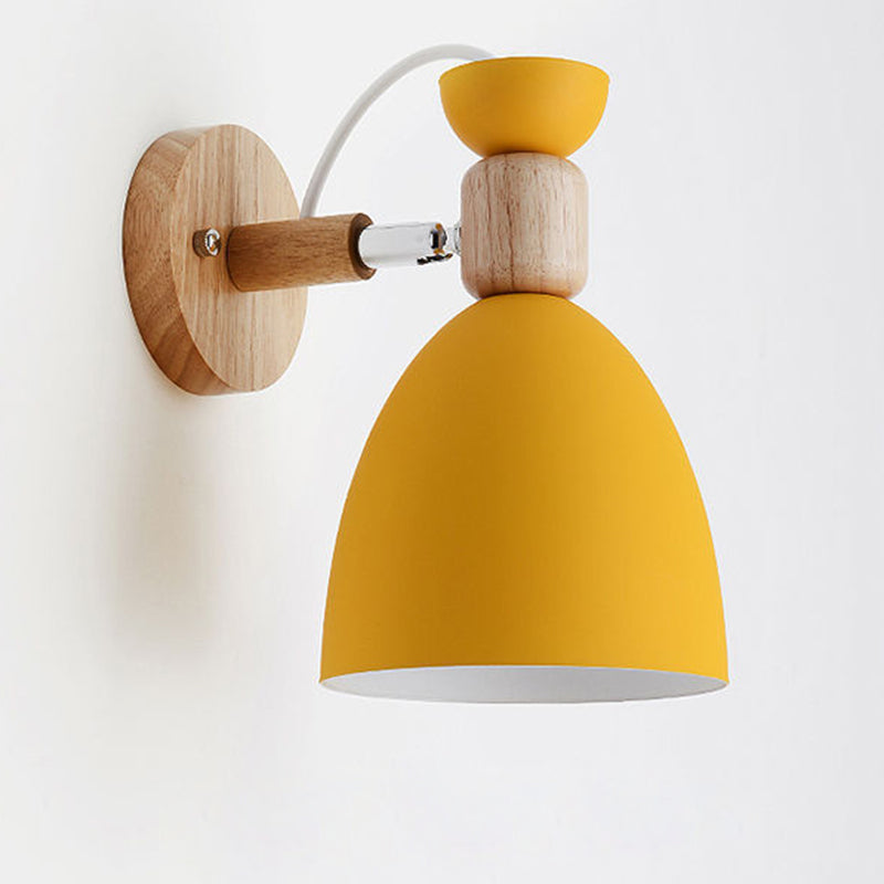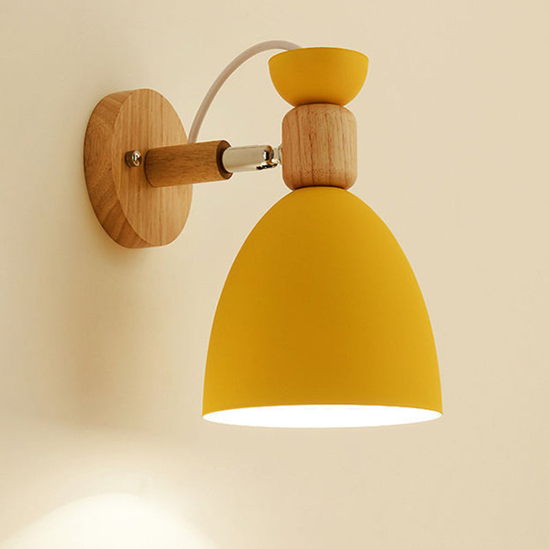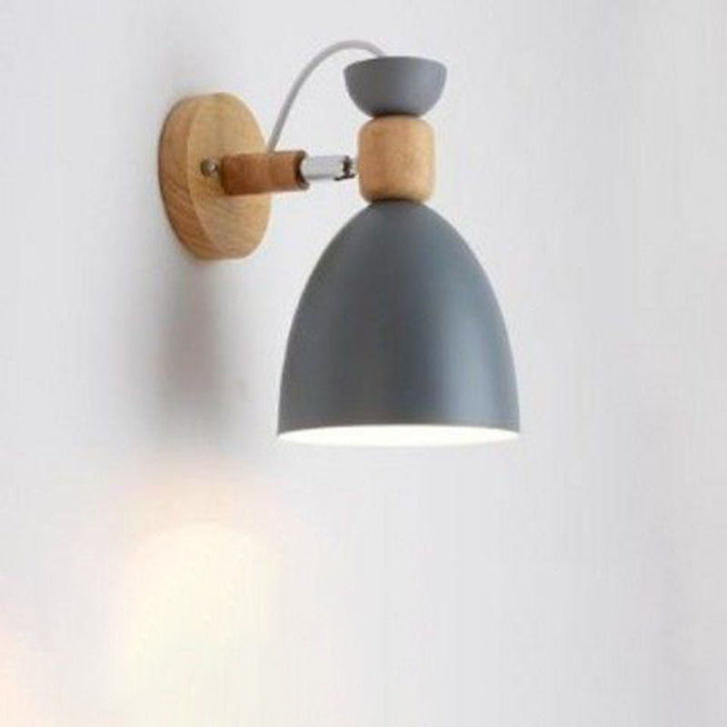 Contemporary Nordic Rotatable Wood Iron Round Trumpet Shape 1-Light Wall Sconce Lamp For Hallway