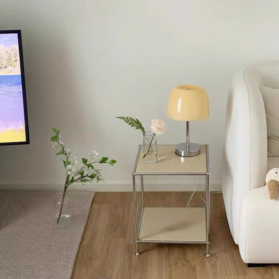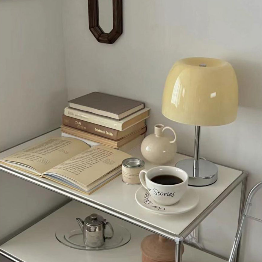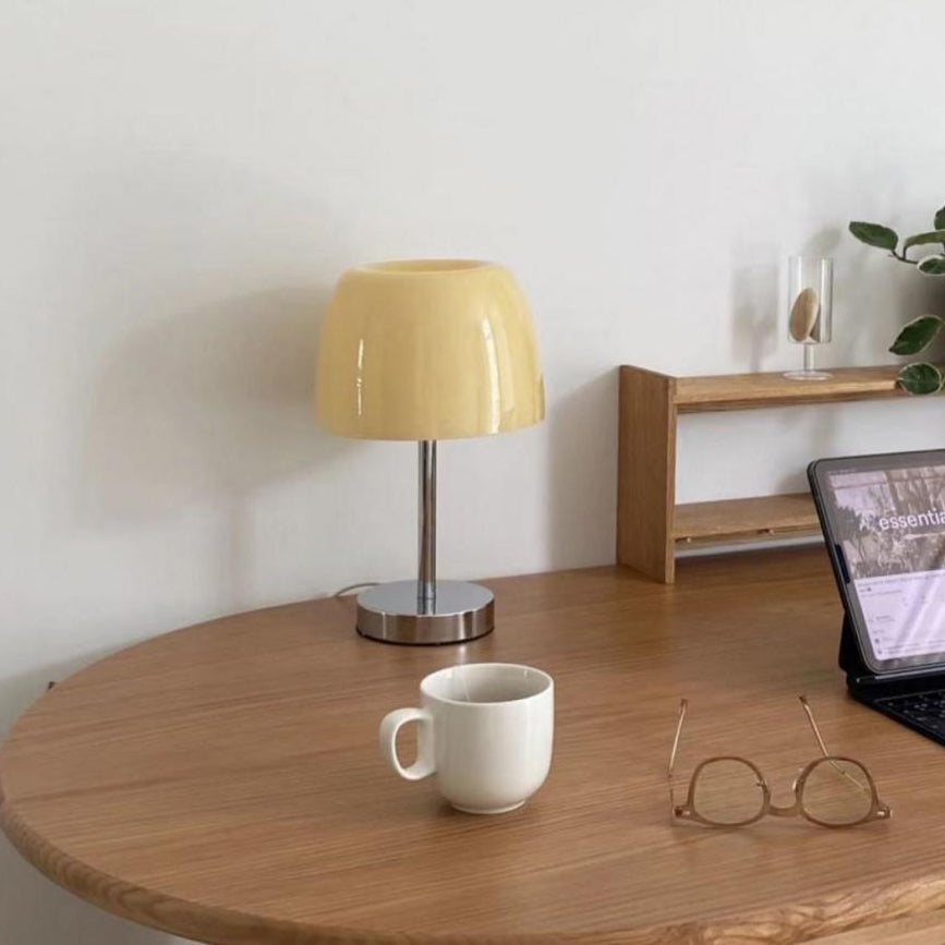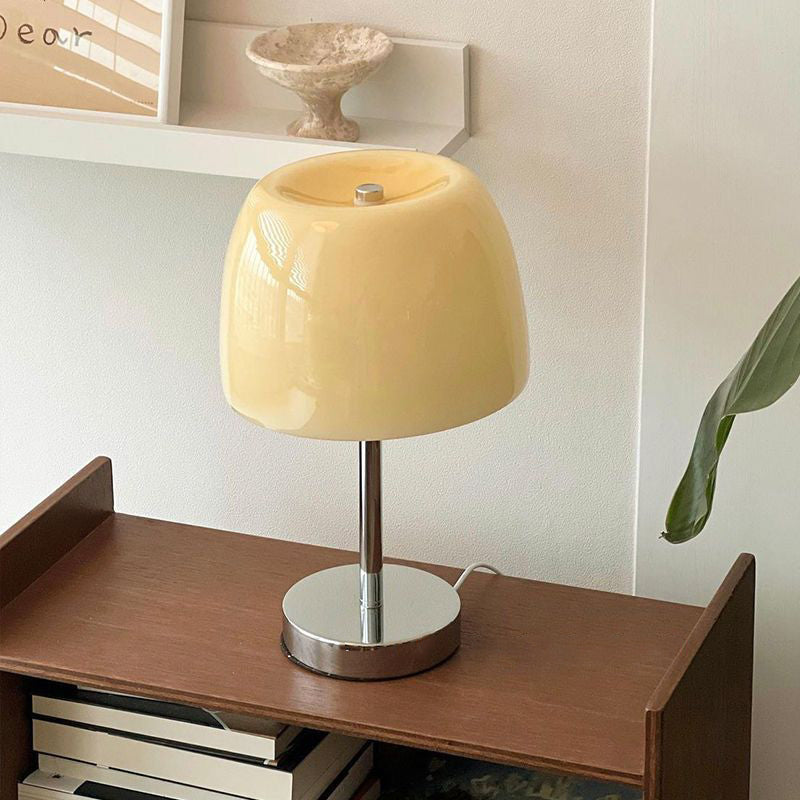 Contemporary Nordic Round Base Mushroom Lamp Shape Stainless Steel Glass 1-Light Table Lamp For Living Room