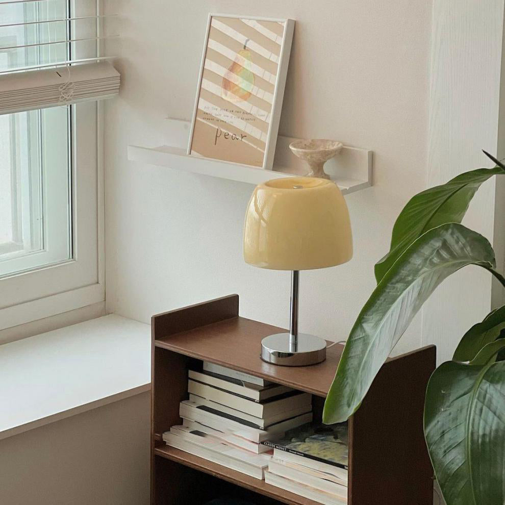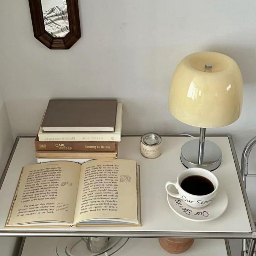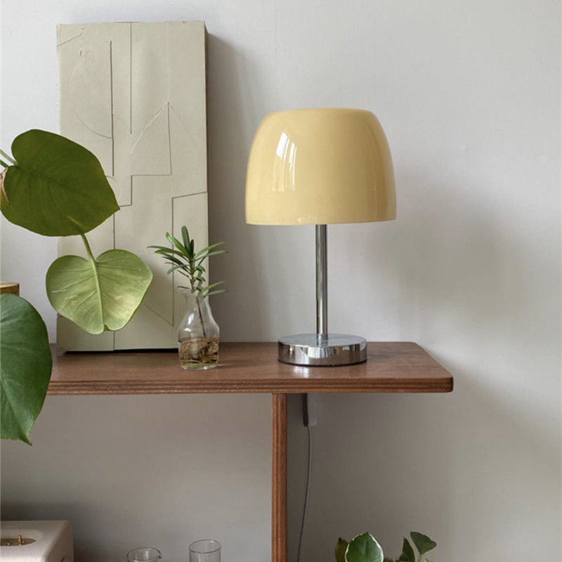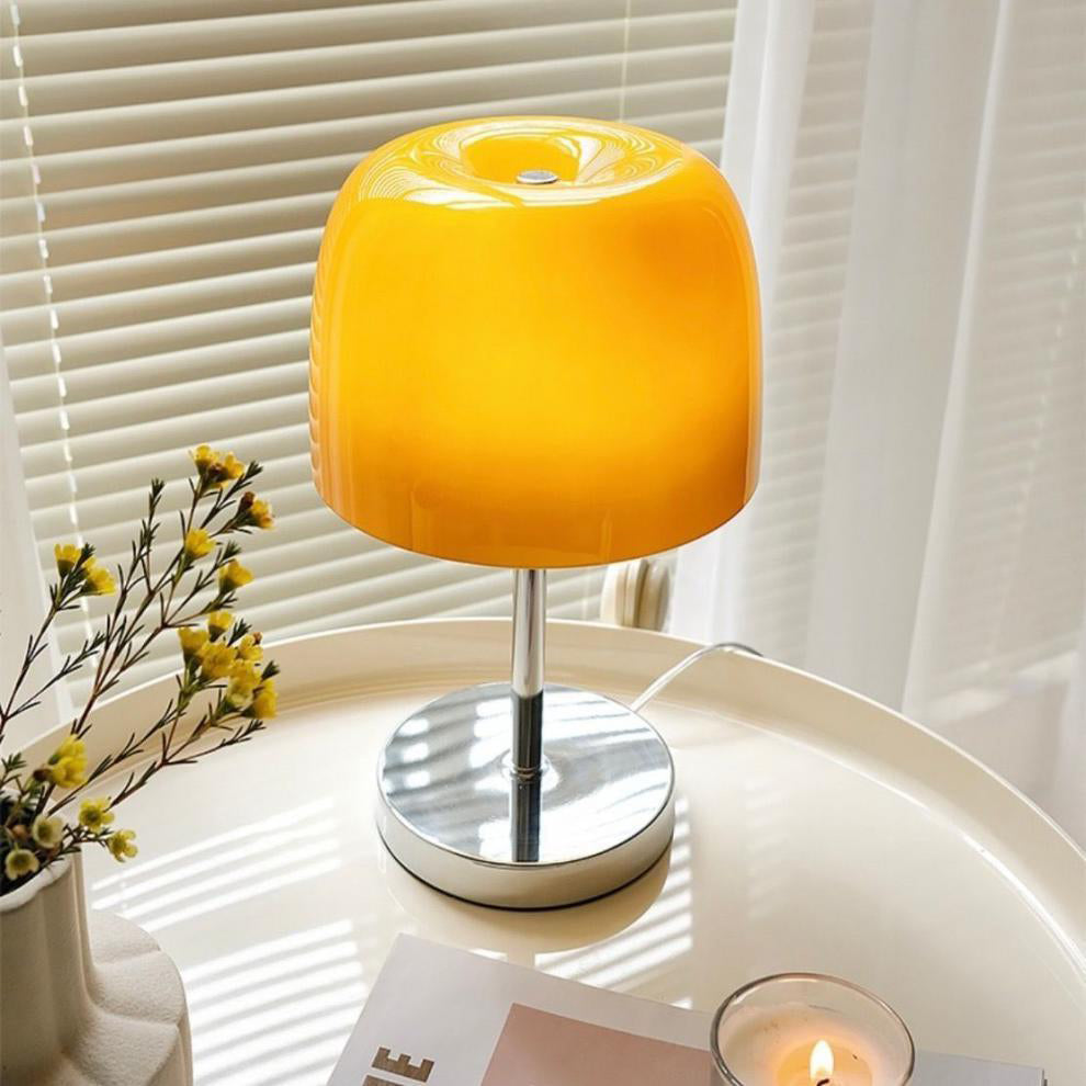 Contemporary Nordic Round Base Mushroom Lamp Shape Stainless Steel Glass 1-Light Table Lamp For Living Room
