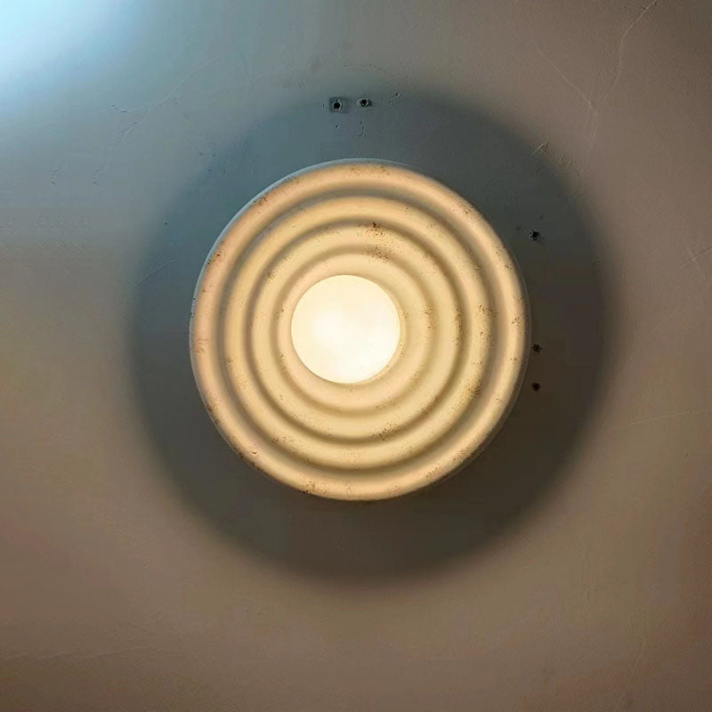 Contemporary Nordic Round Corrugated Resin Glass 1-light Wall Sconce Lamp For Bedroom