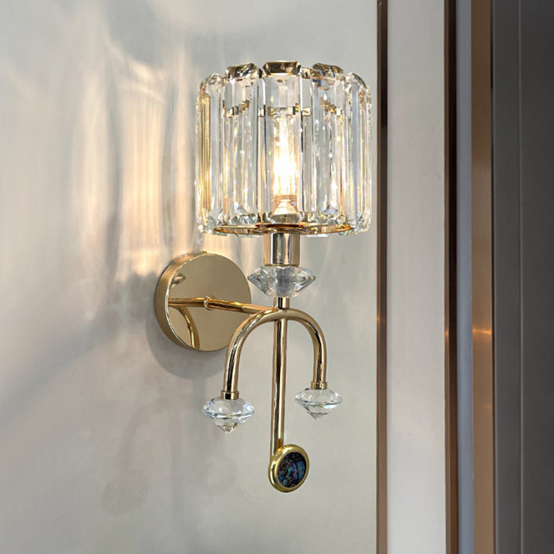 Contemporary Nordic Round Cylinder Iron Crystal 1-Light Wall Sconce Lamp For Living Room