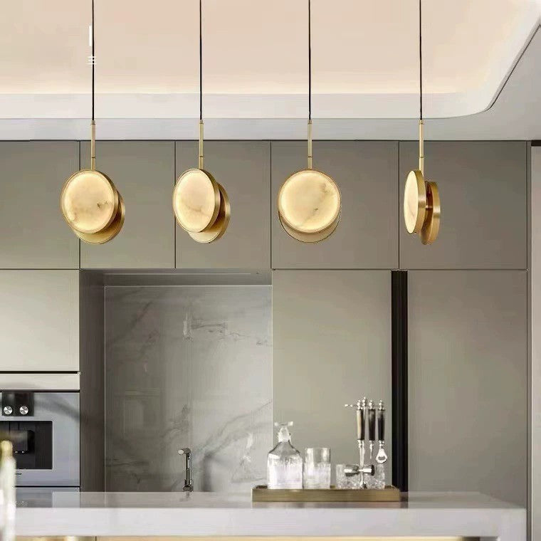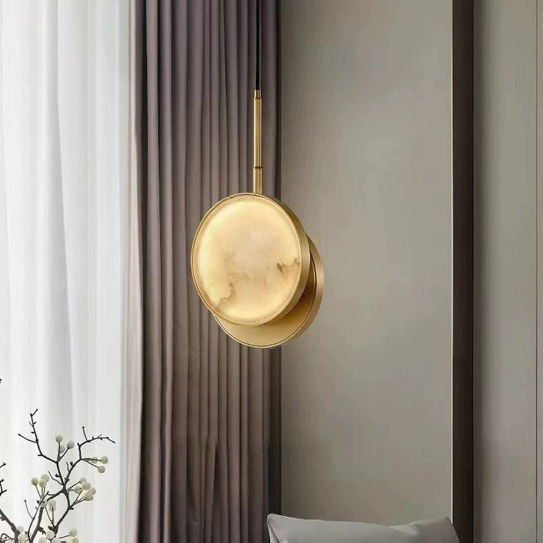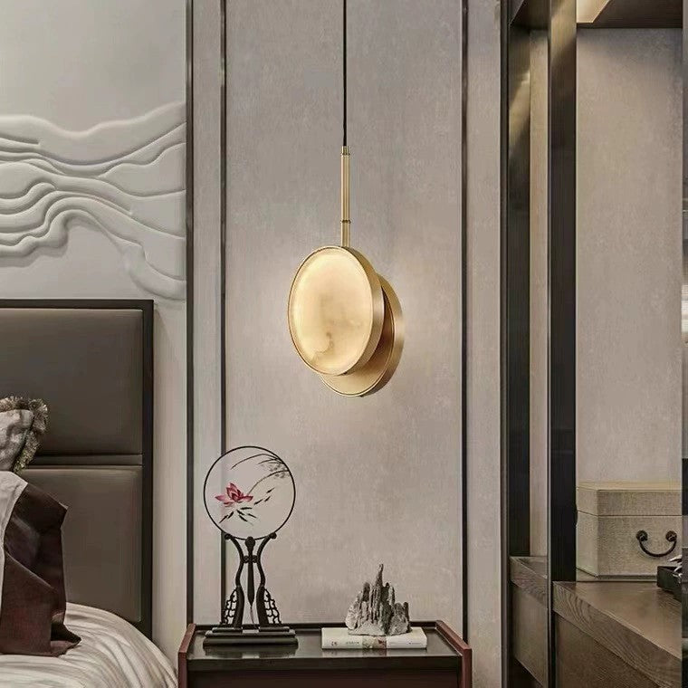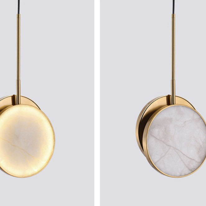 Contemporary Nordic Round Hardware Marble LED Pendant Light For Bedroom