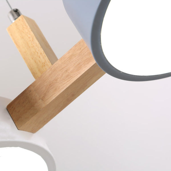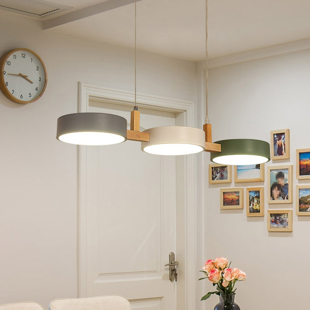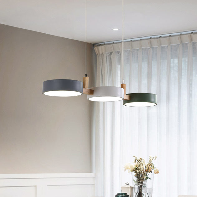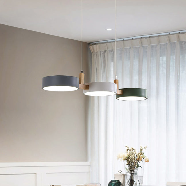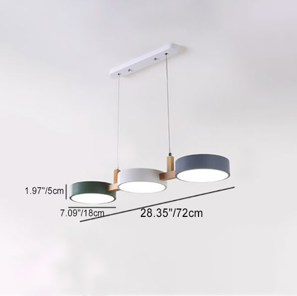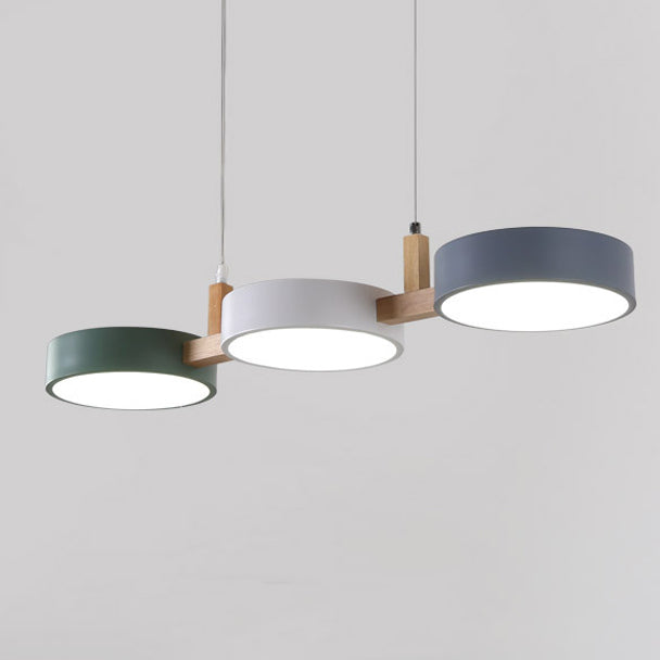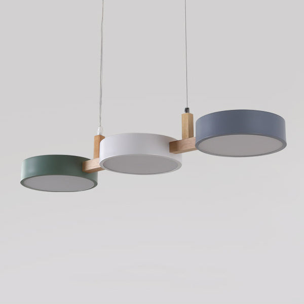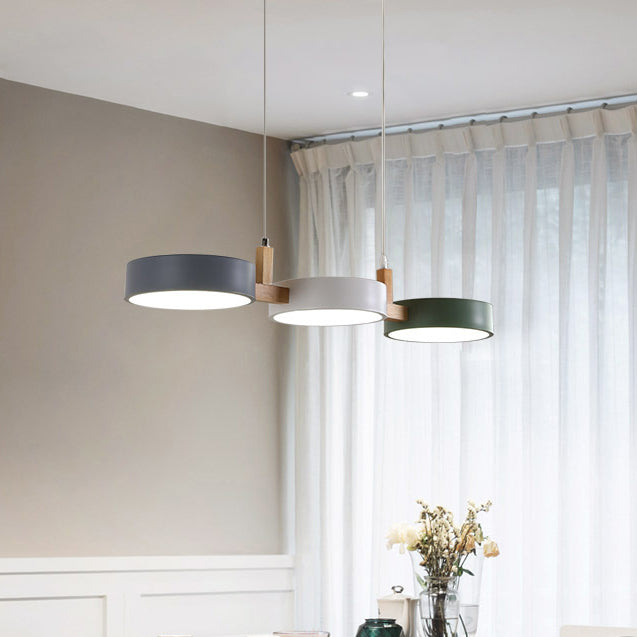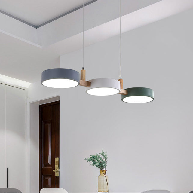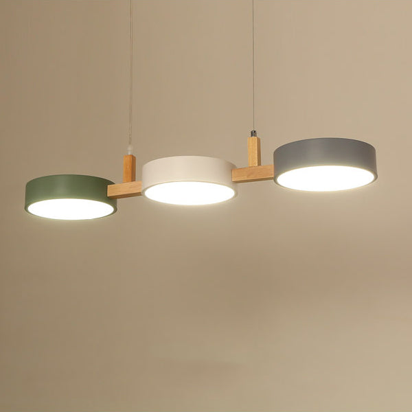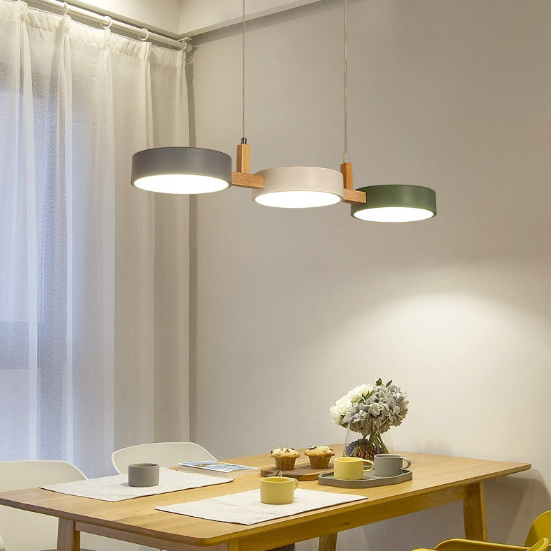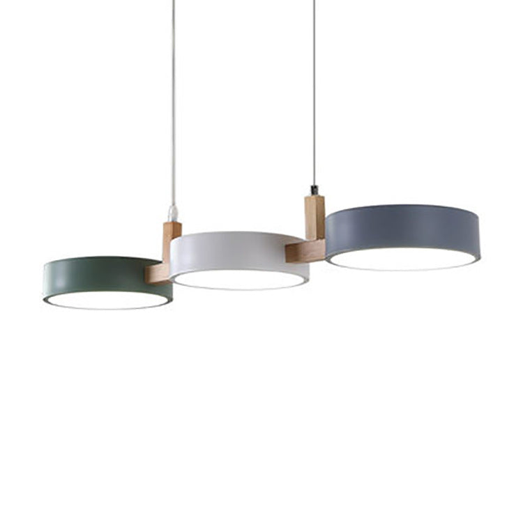 Contemporary Nordic Round Iron Acrylic Wood LED Island Light Chandelier For Dining Room