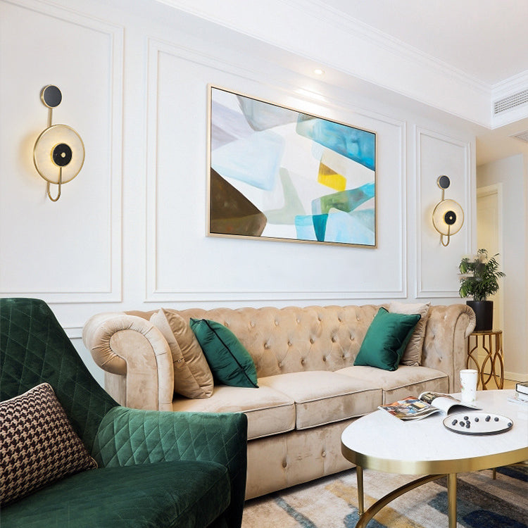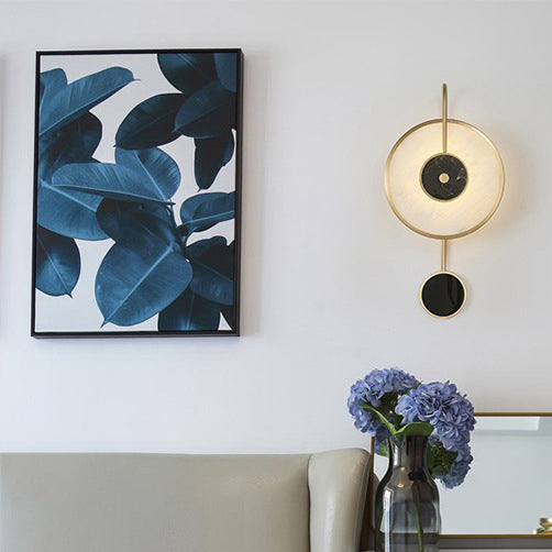 Contemporary Nordic Round Iron Marble LED Wall Sconce Lamp For Bedroom