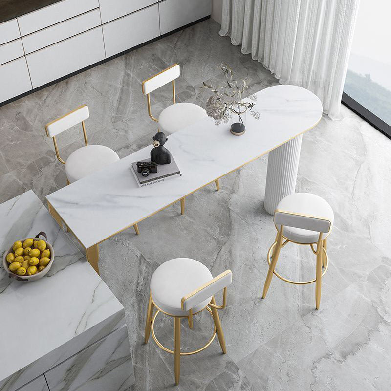 Contemporary Nordic Round PU Leather Microfiber Leather Genuine Leather Better Material Genuine Leather Upholstered Iron Bar Stool Backrest Footrest For Dining Room