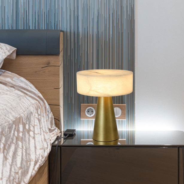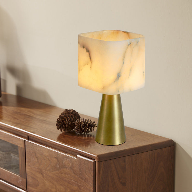 Contemporary Nordic Round Square Tapered Metal Base Lucite 1-Light Table Lamp For Bedroom