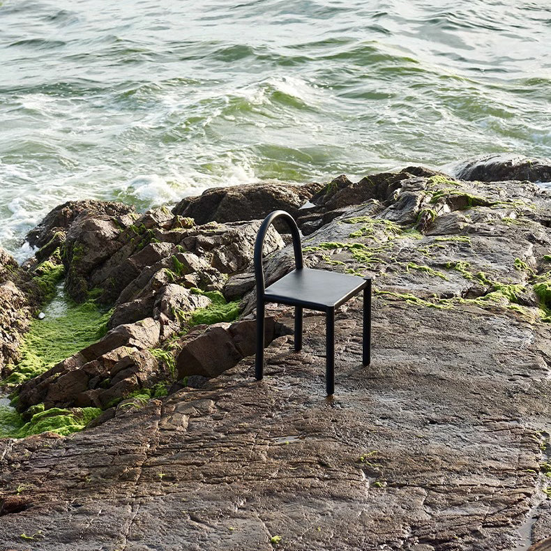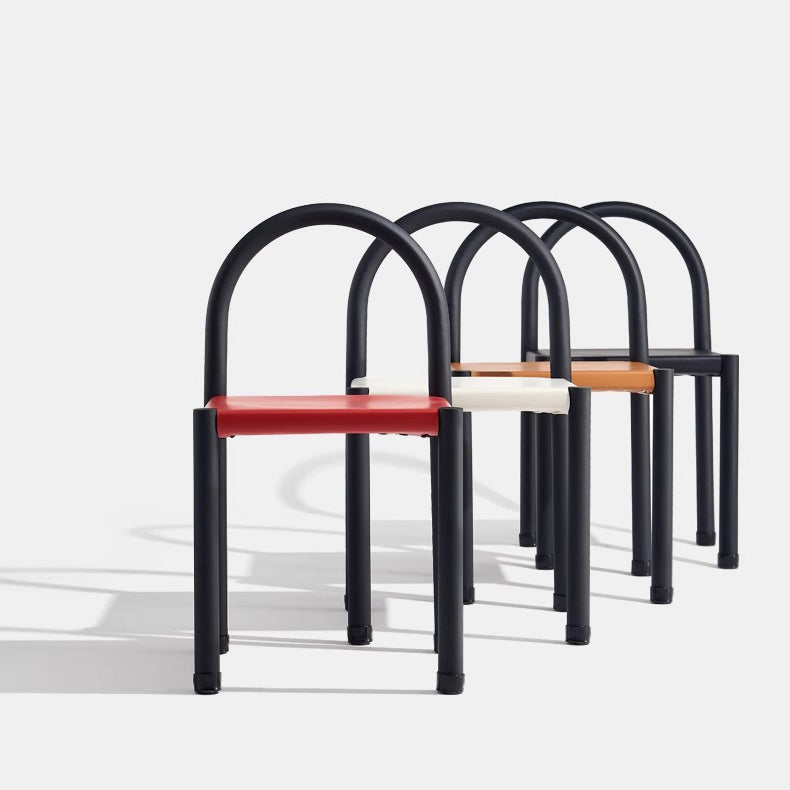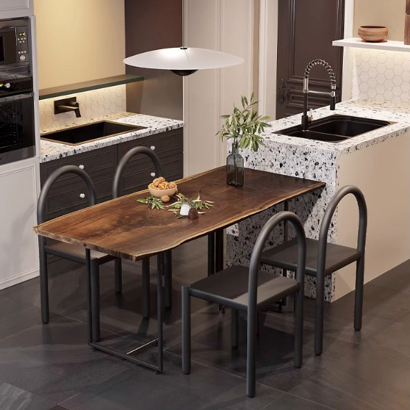 Contemporary Nordic Square Genuine Leather Carbon Steel Dining Chair Half Round Backrest For Dining Room
