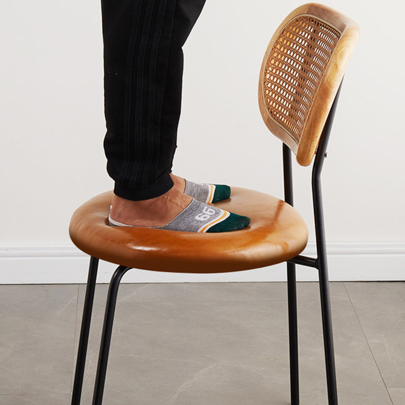 Contemporary Nordic Square Rattan Iron PU Leather Upholstered Dining Chair Backrest For Dining Room