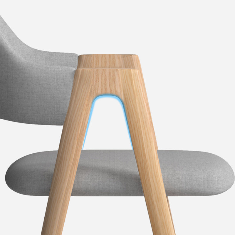 Contemporary Nordic Square Upholstered Iron Frame Linen Dining Chair Curved Backrest Armrest For Dining Room