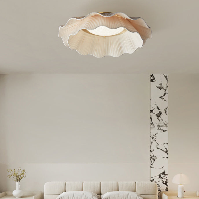 Contemporary Nordic Stripe Cloud Copper Hardware Fabric LED Flush Mount Ceiling Light For Bedroom