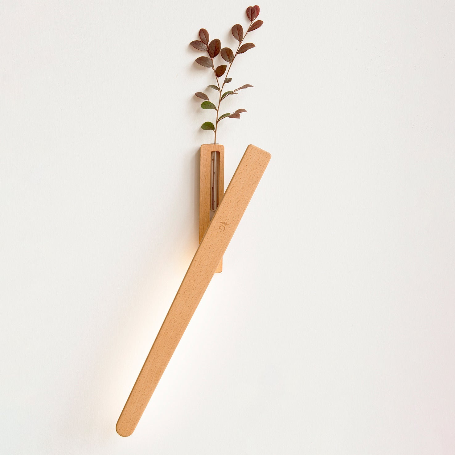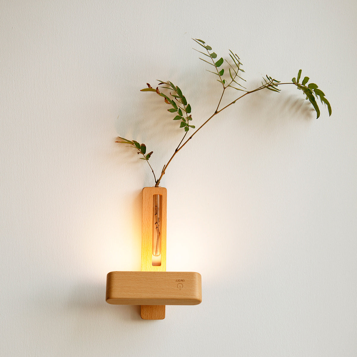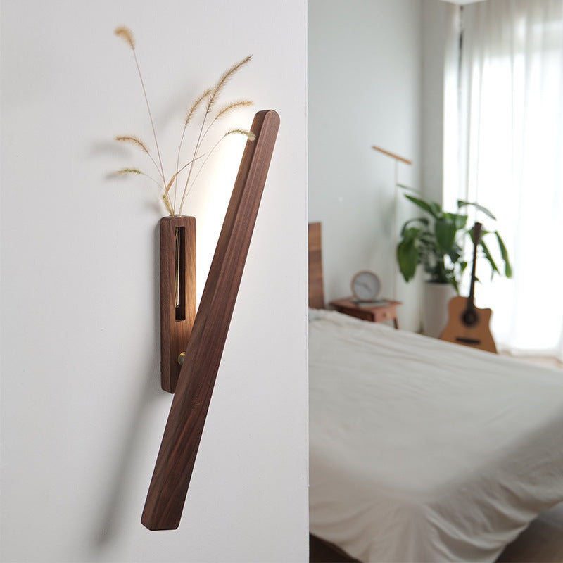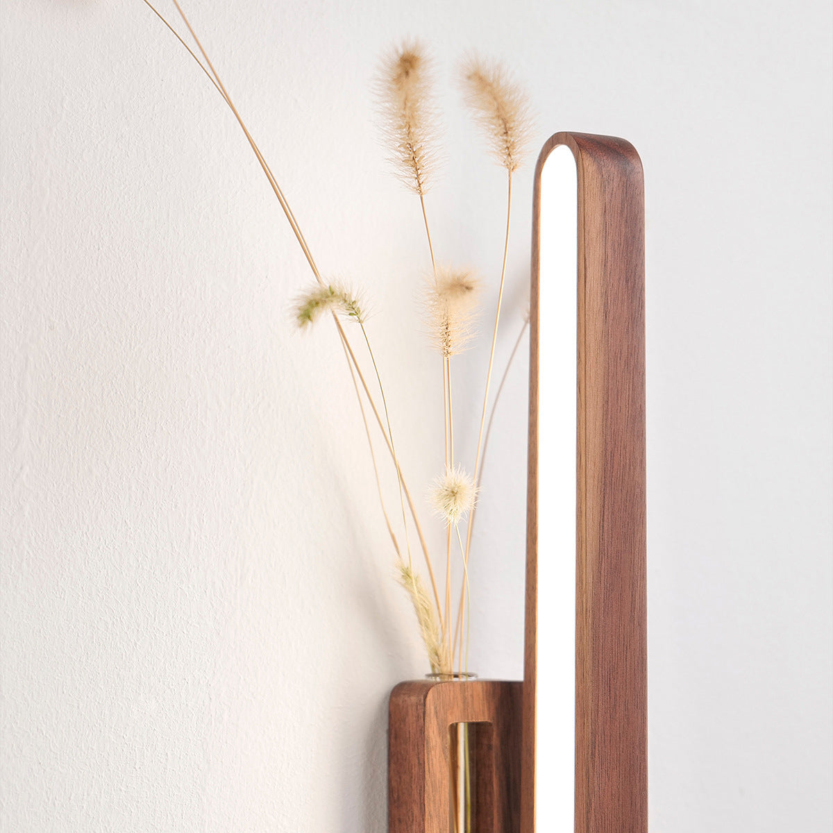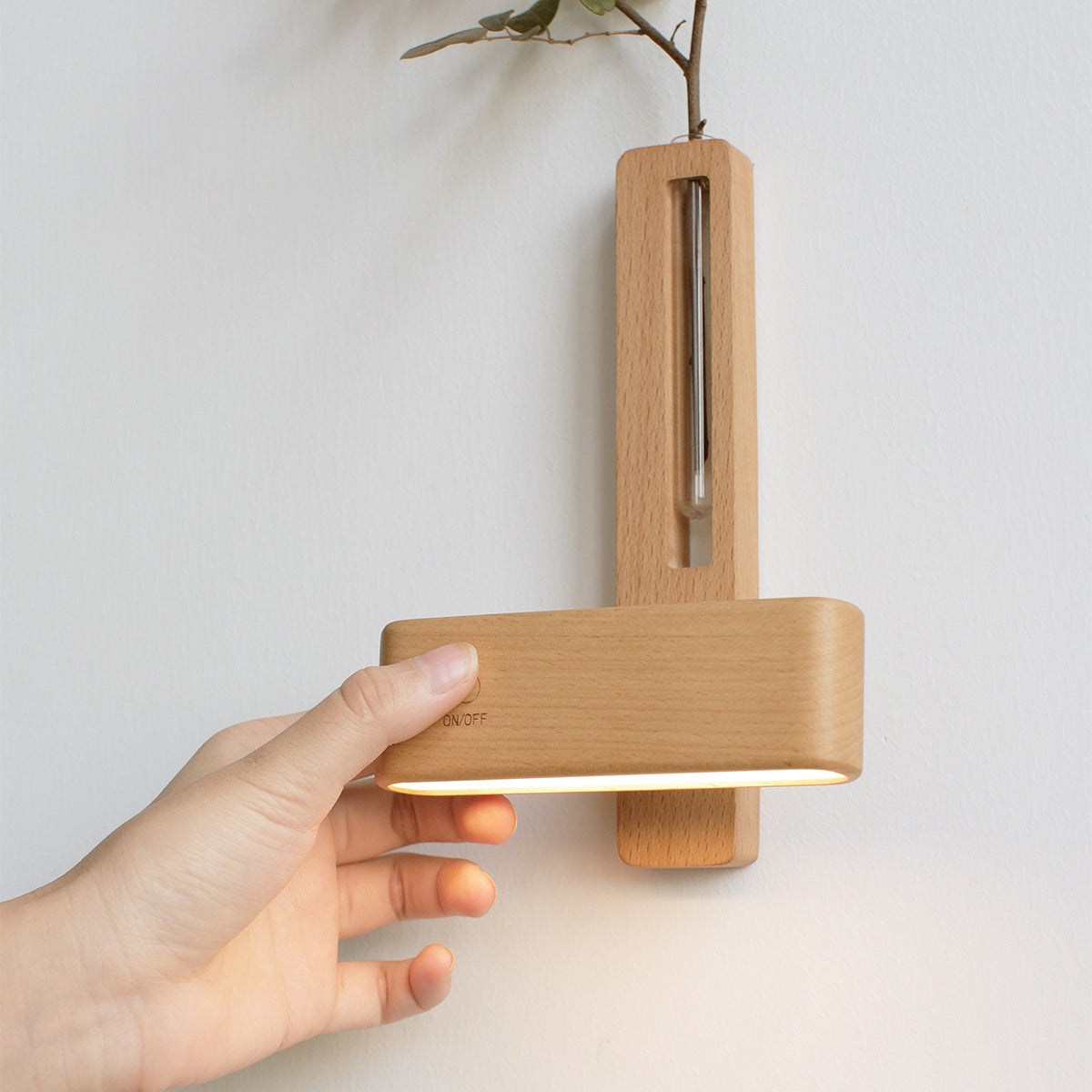 Contemporary Nordic Walnut Beech Rechargeable Strip Floral Container LED Wall Sconce Lamp For Bedside
