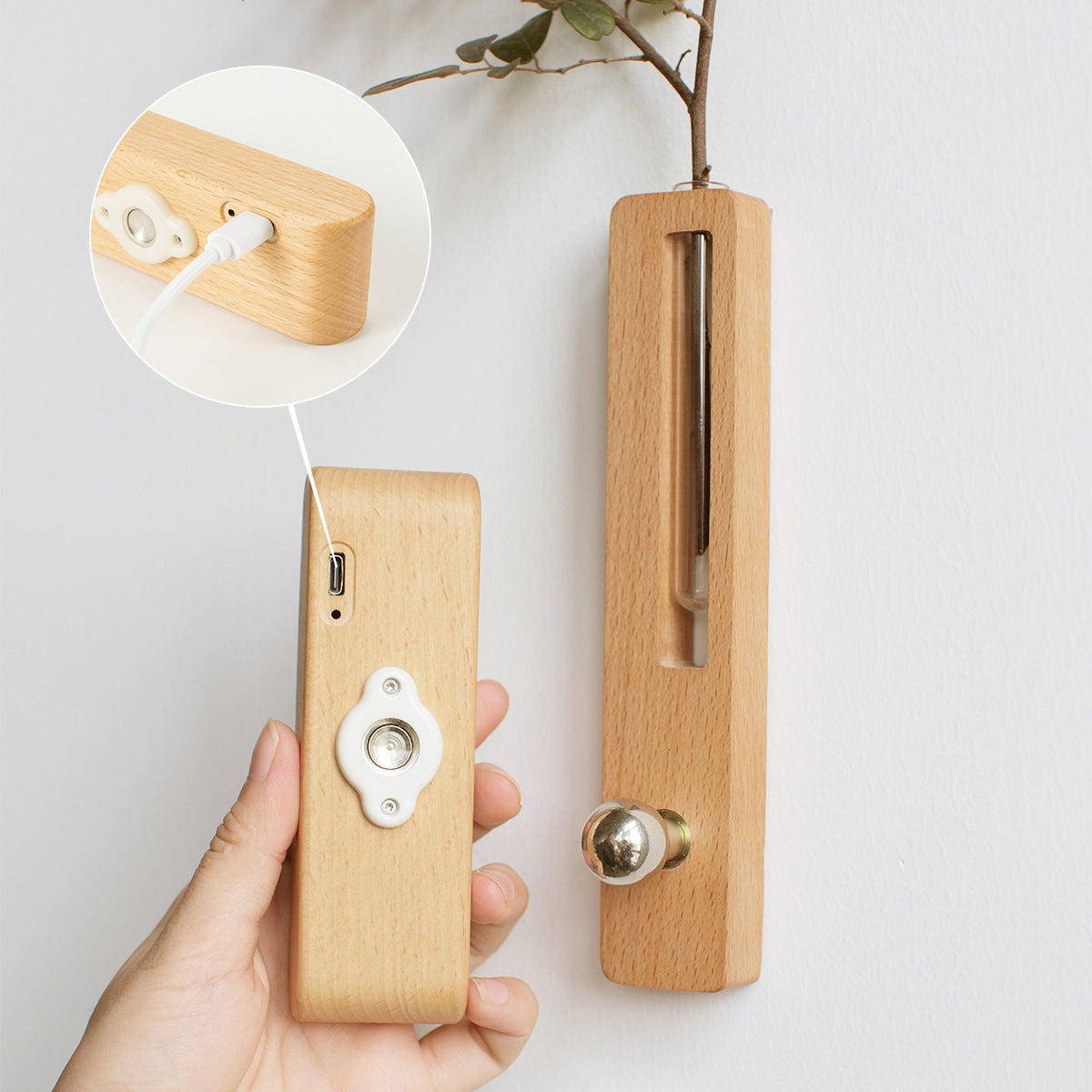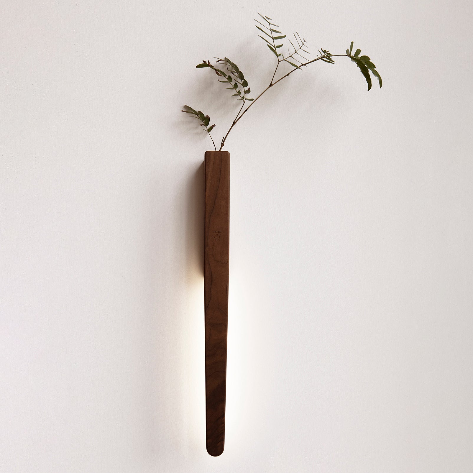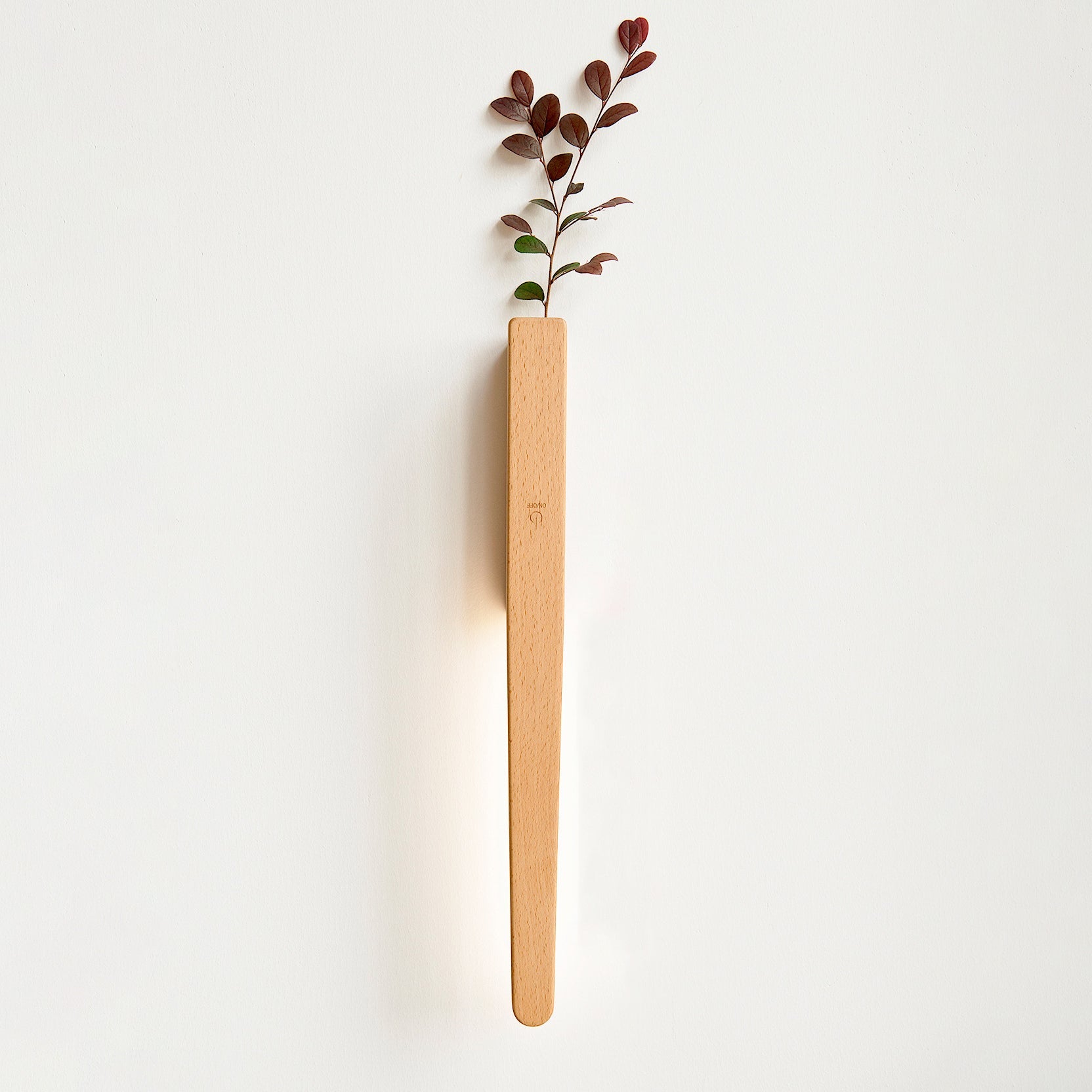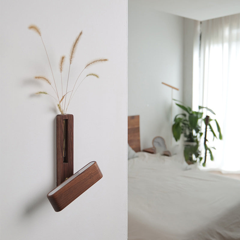 Contemporary Nordic Walnut Beech Rechargeable Strip Floral Container LED Wall Sconce Lamp For Bedside