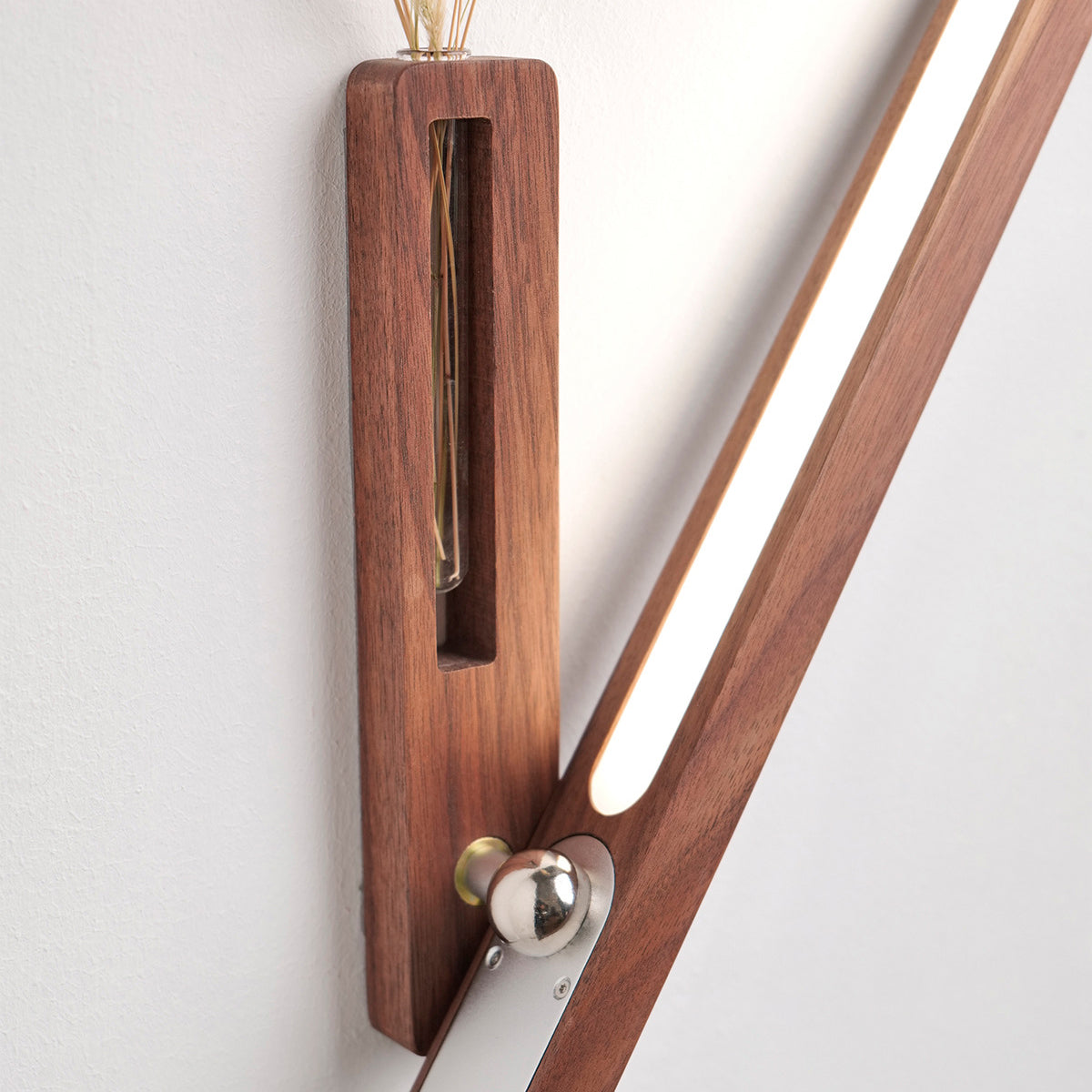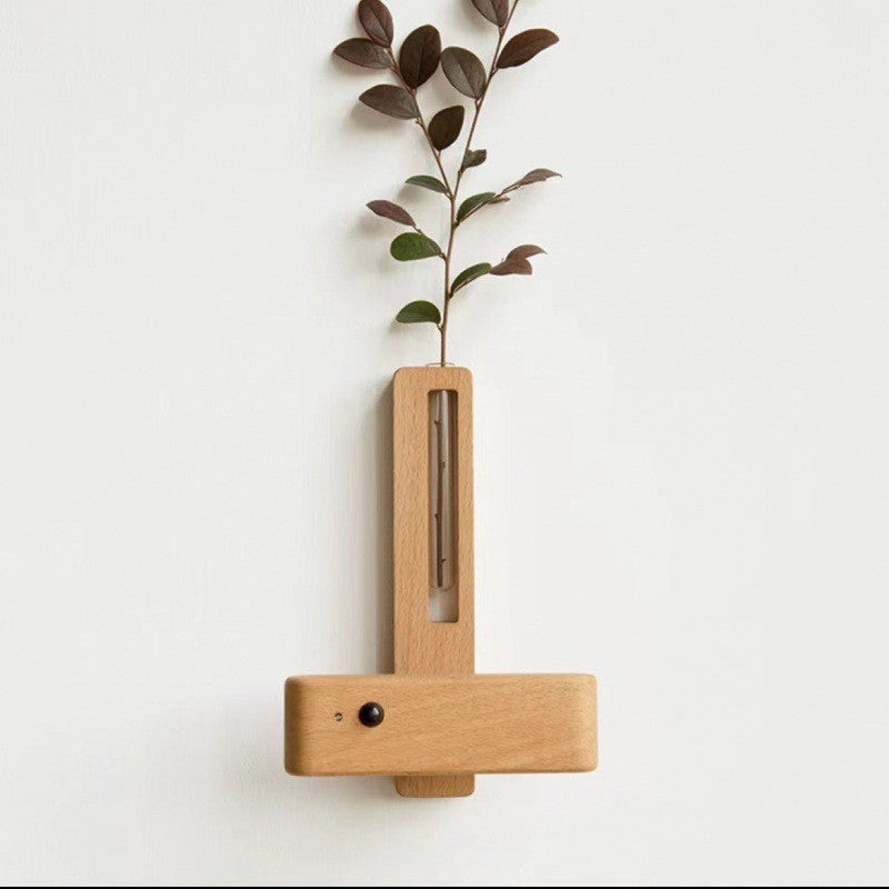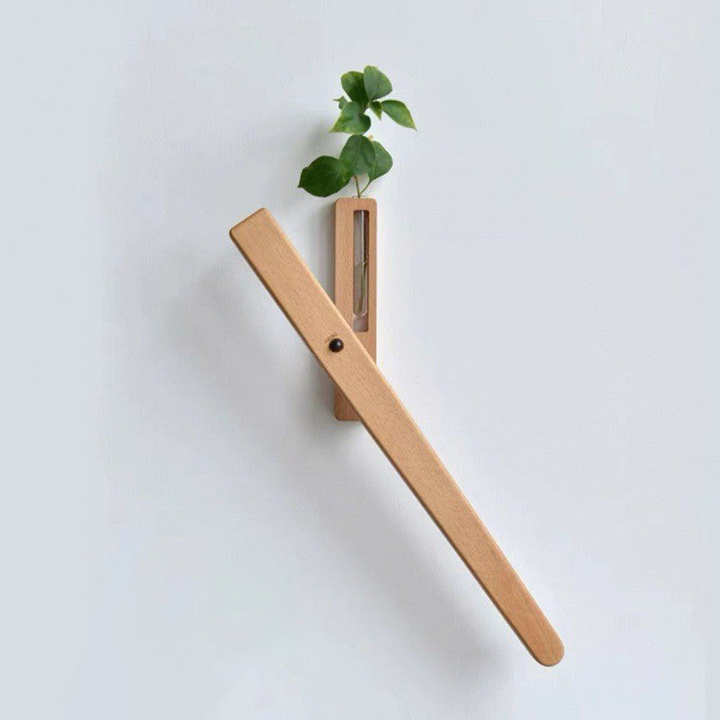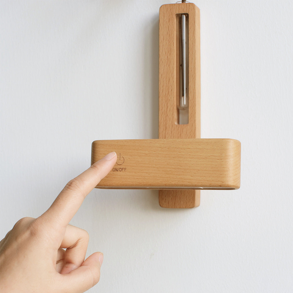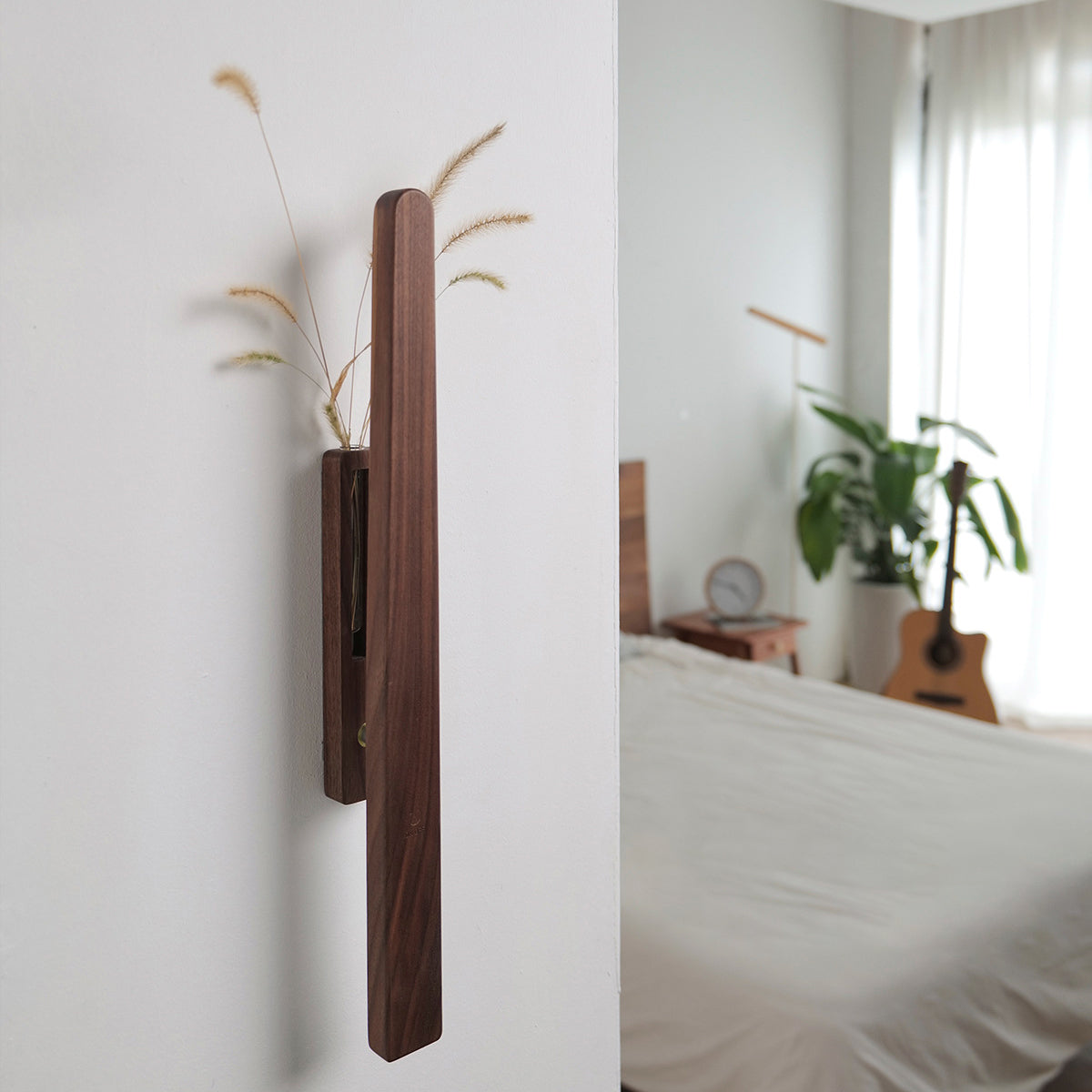 Contemporary Nordic Walnut Beech Rechargeable Strip Floral Container LED Wall Sconce Lamp For Bedside