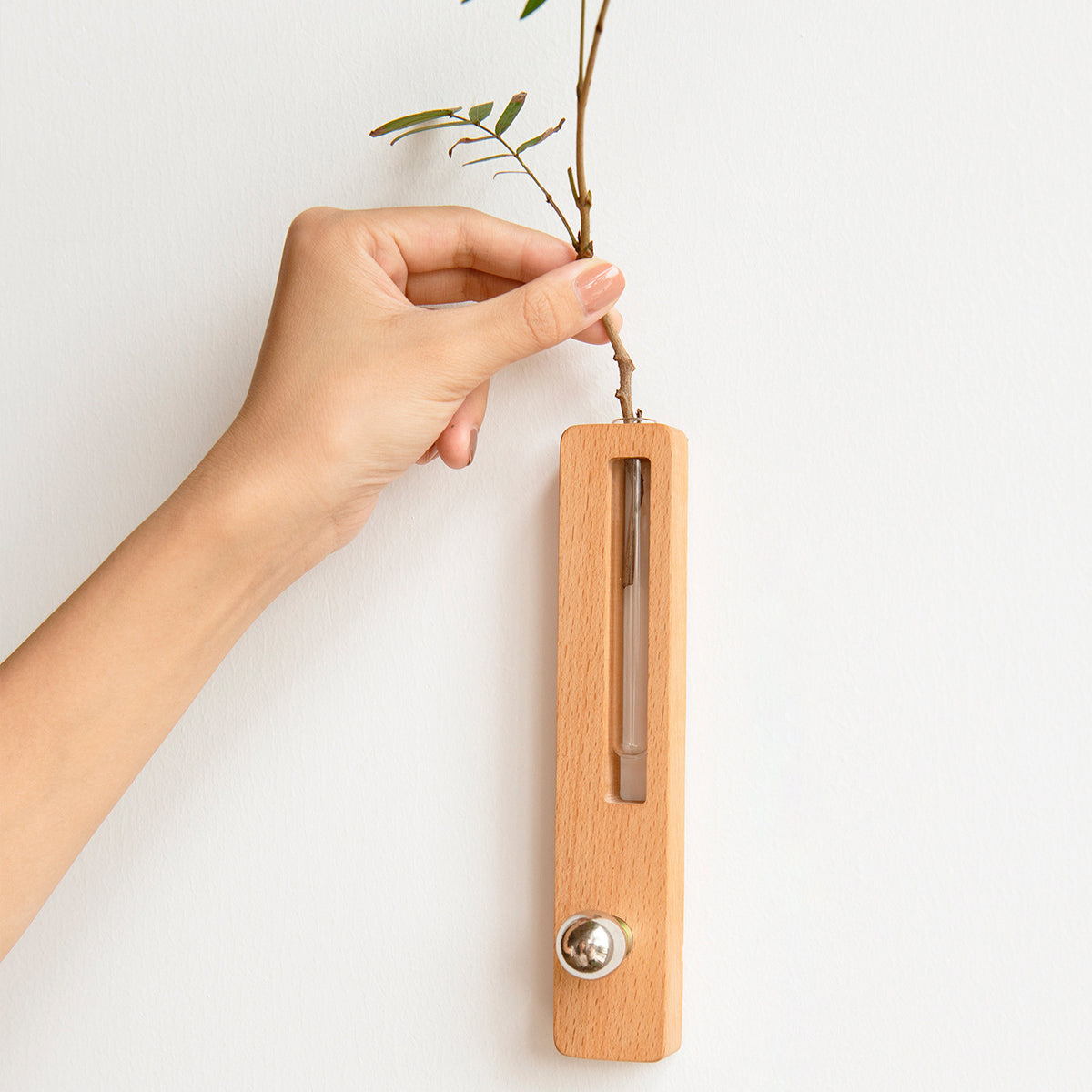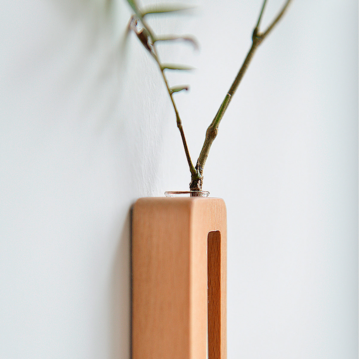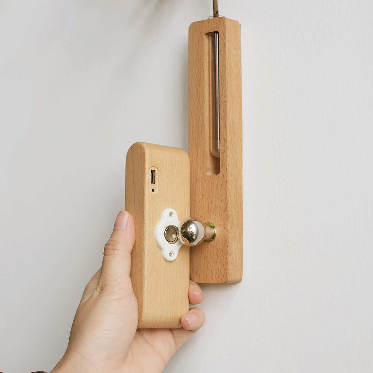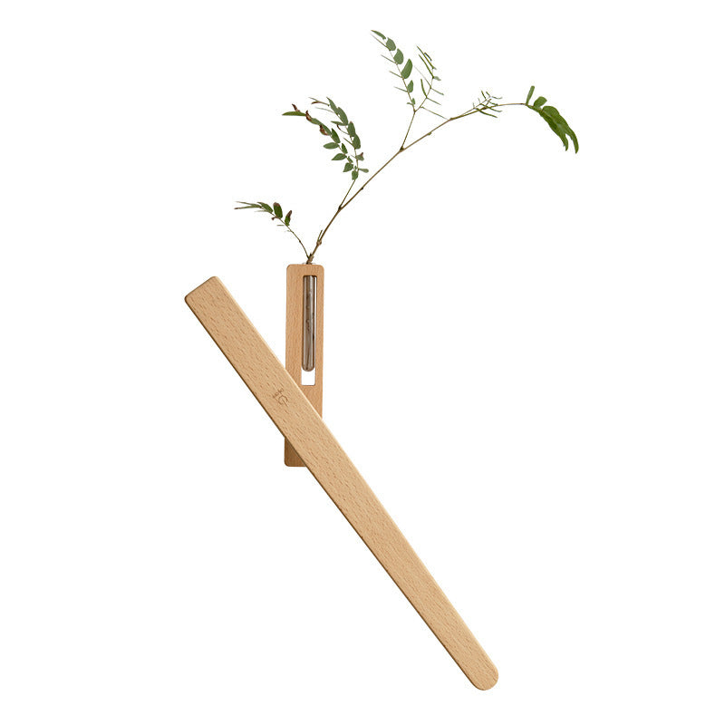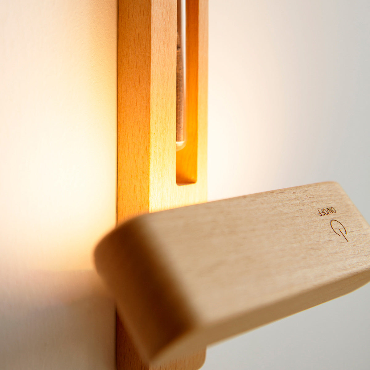 Contemporary Nordic Walnut Beech Rechargeable Strip Floral Container LED Wall Sconce Lamp For Bedside