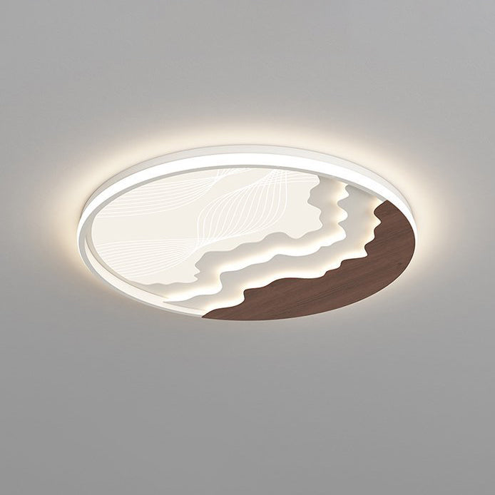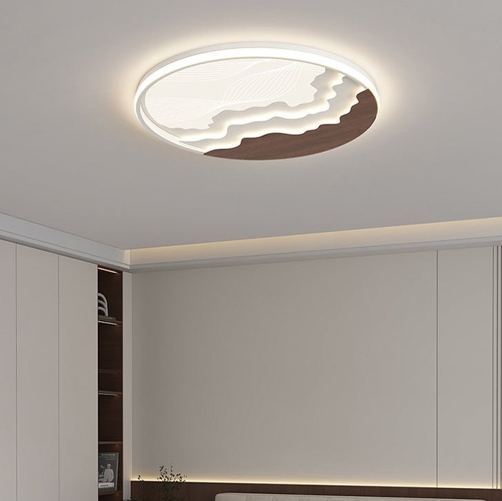 Contemporary Nordic Wave Design Round Iron Acrylic LED Flush Mount Ceiling Light For Bedroom