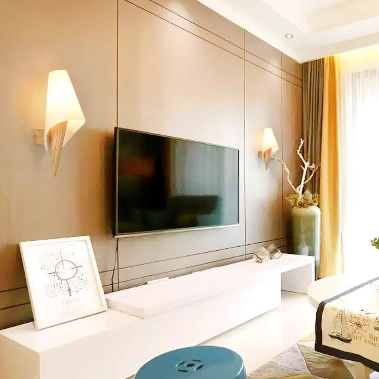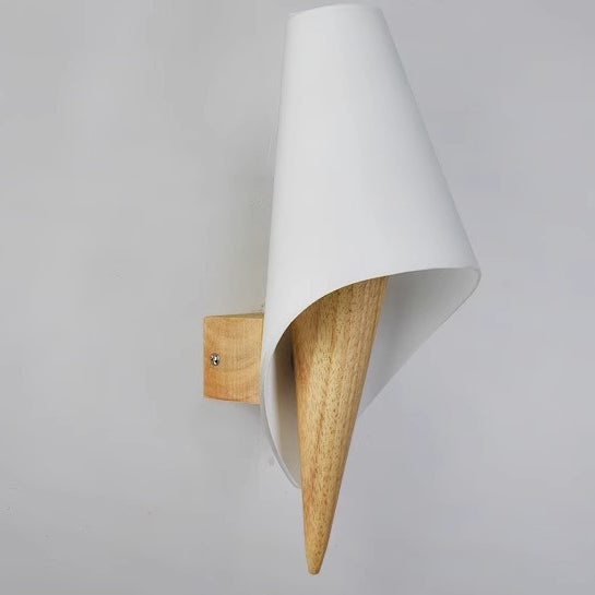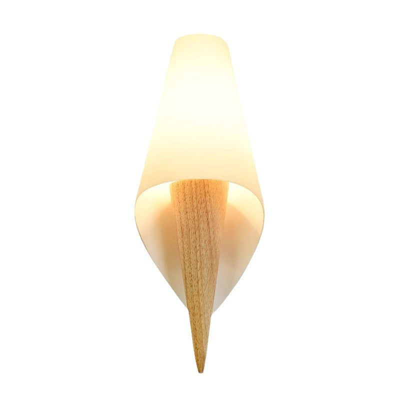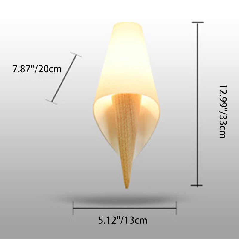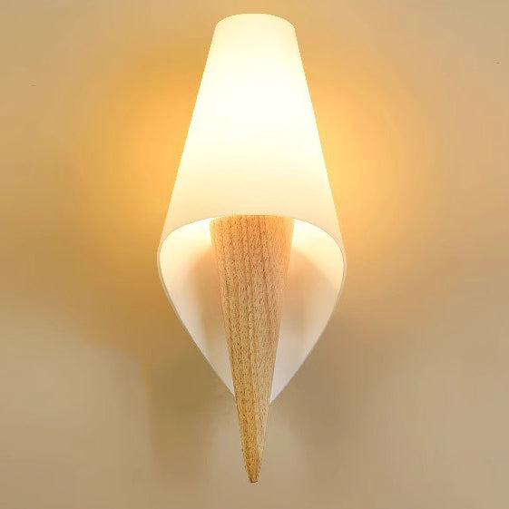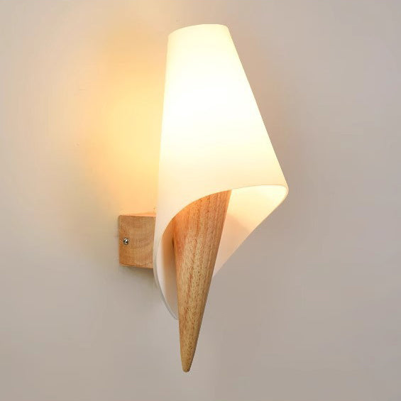 Contemporary Nordic Wood Glass Ice Cream Conic 1-Light Wall Sconce Lamp For Bedside
