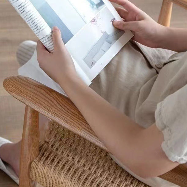 Contemporary Nordic Wood & Rope Square Dining Chair With Armrest & Backrest For Dining Room