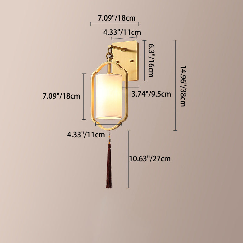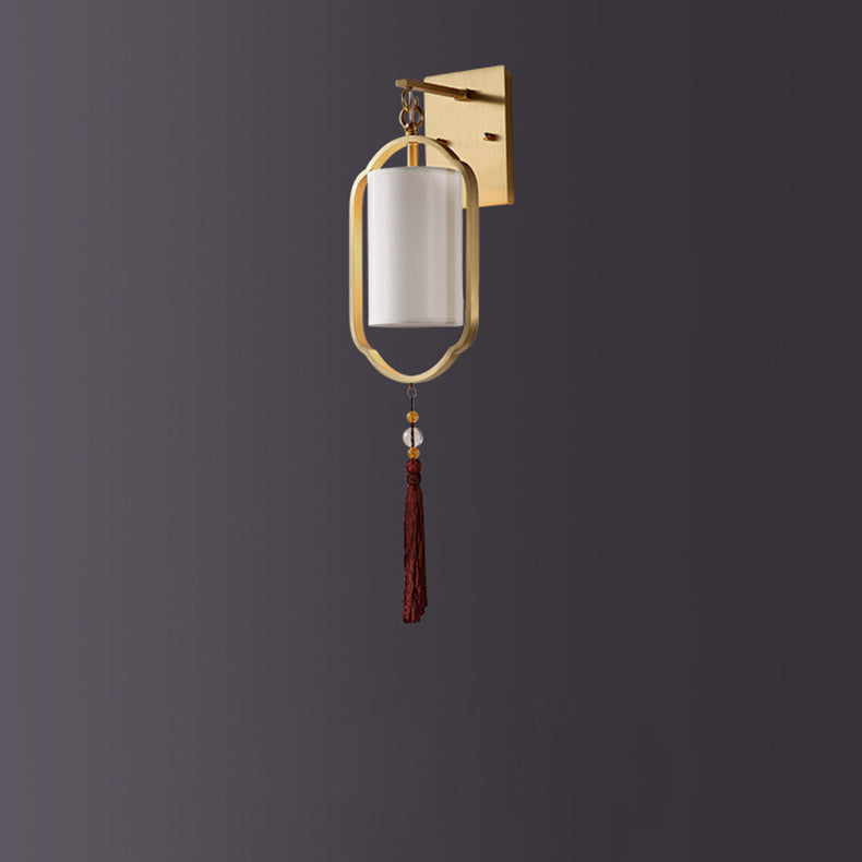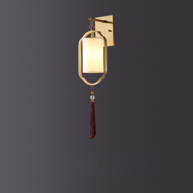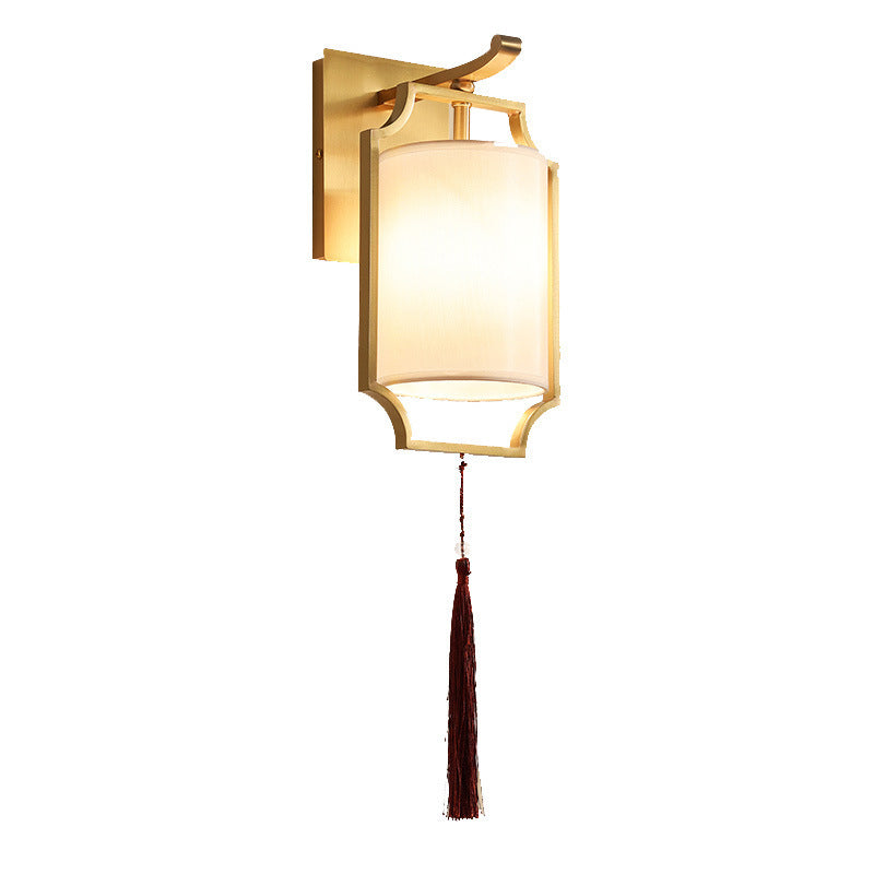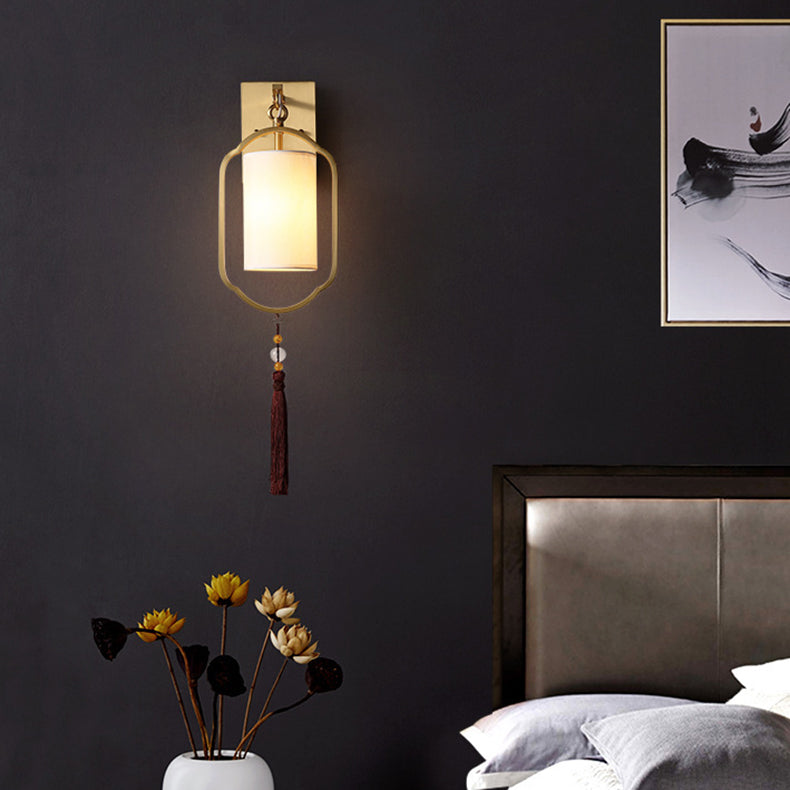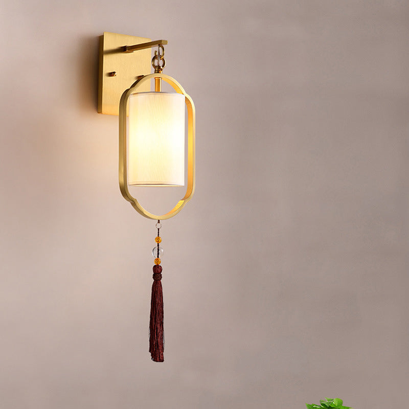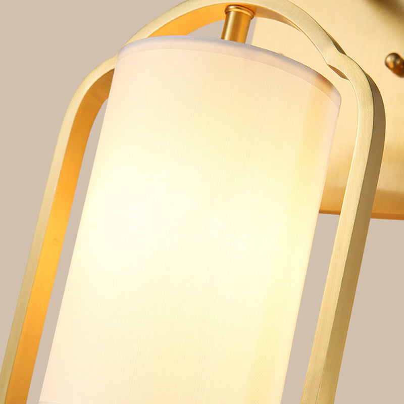 Contemporary Retro Brass Fabric Cylindrical Shade 1-Light Wall Sconce Lamp For Living Room