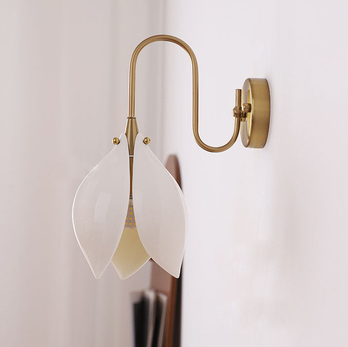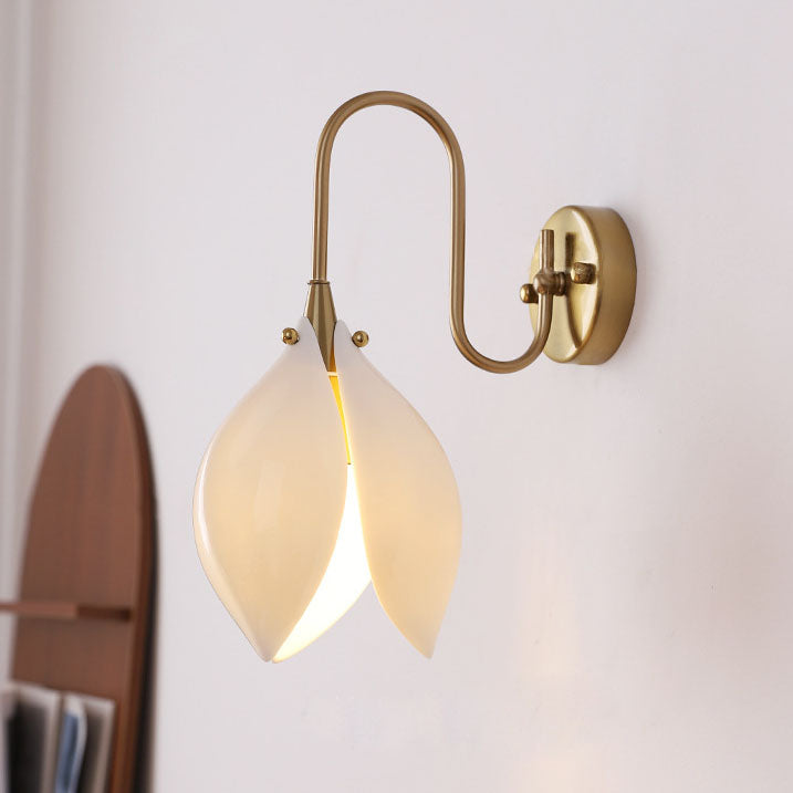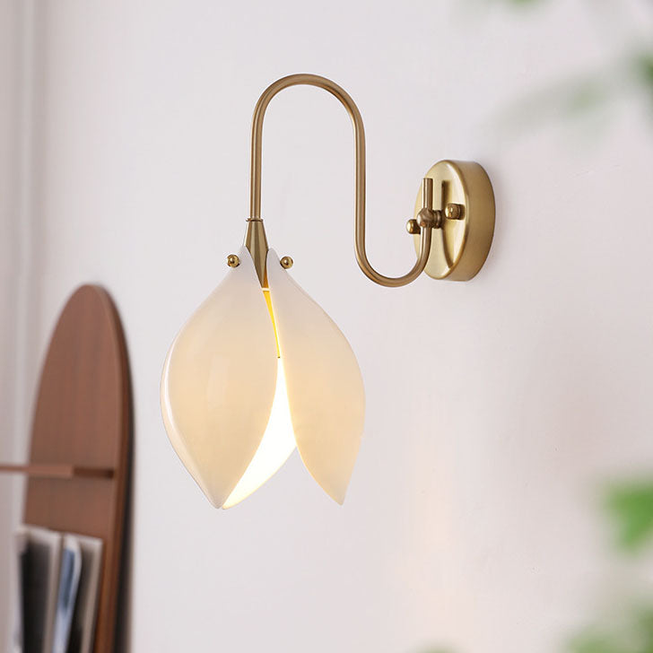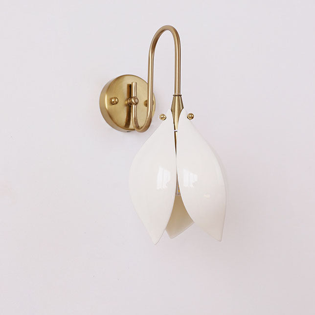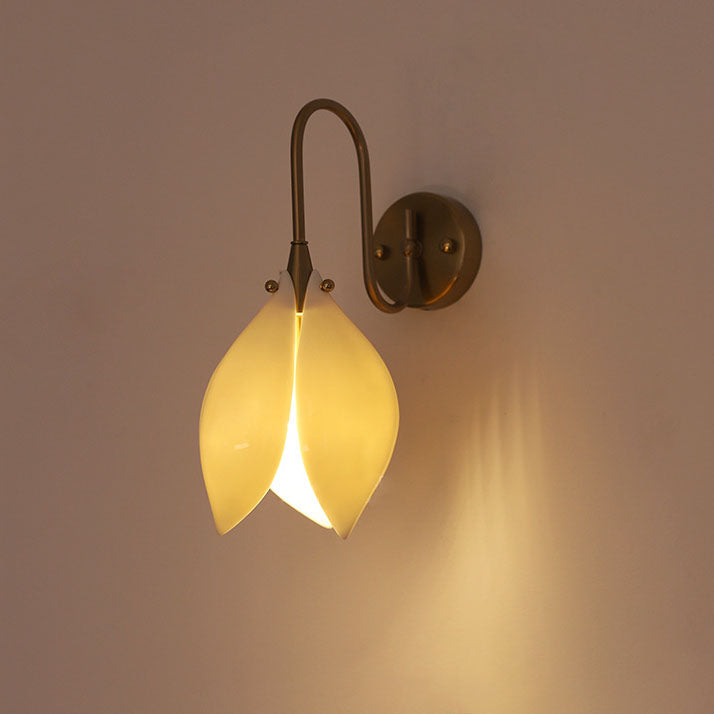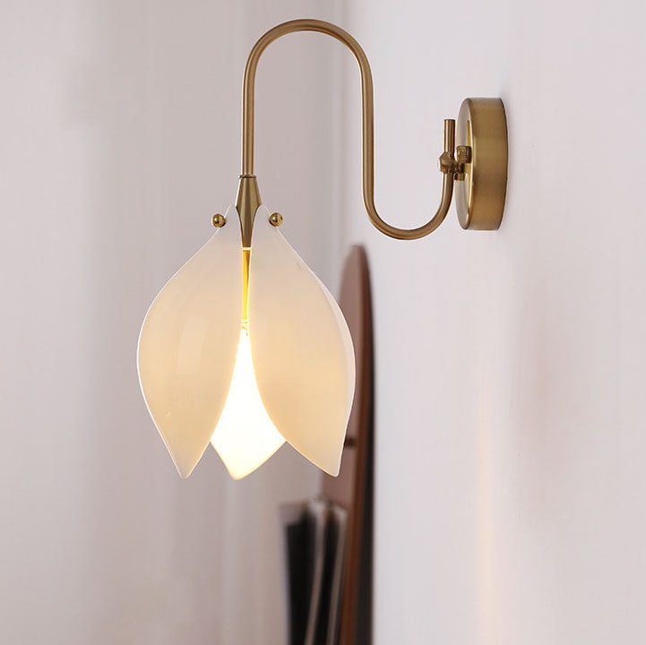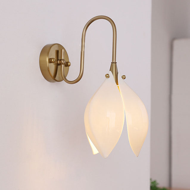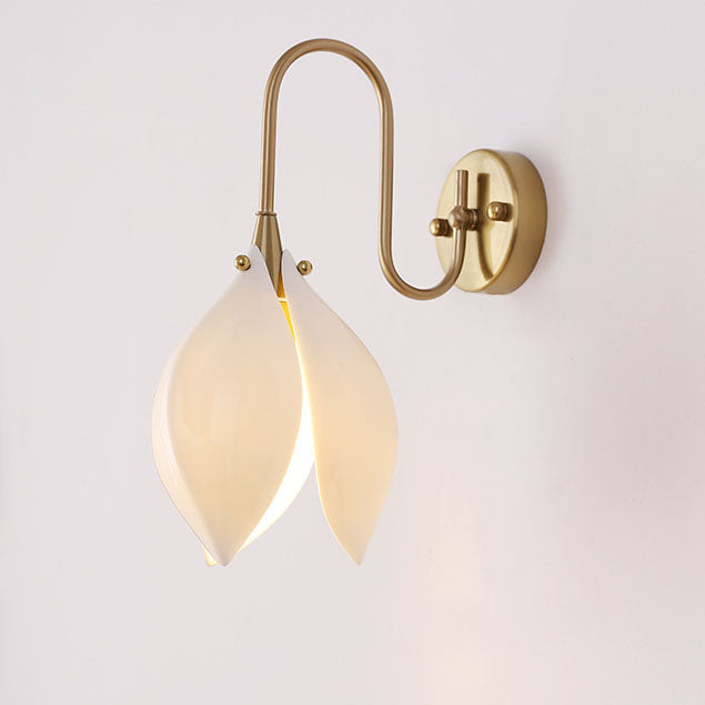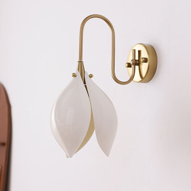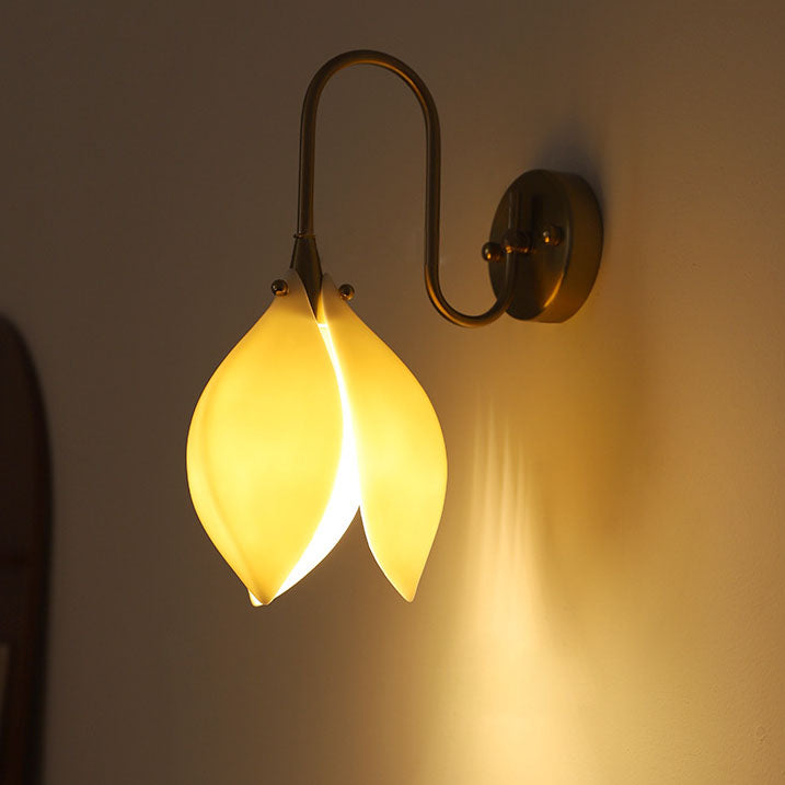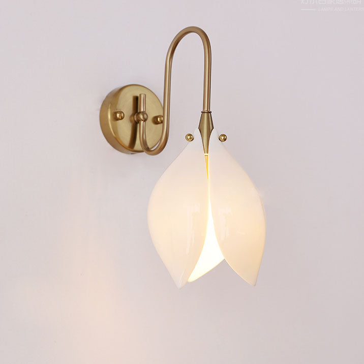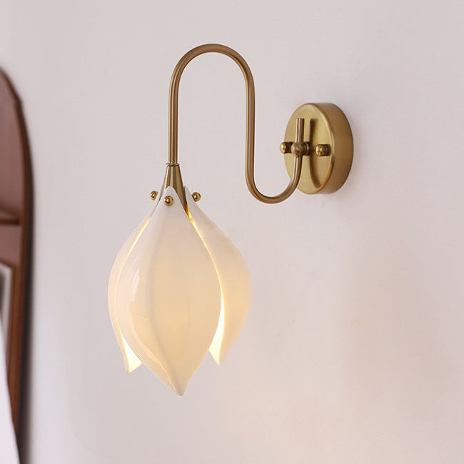 Contemporary Retro Ceramic Magnolia Flower Shape Iron Frame 1-Light Wall Sconce Lamp For Bedroom