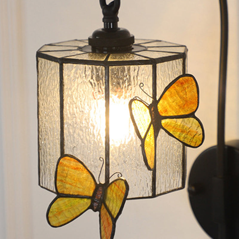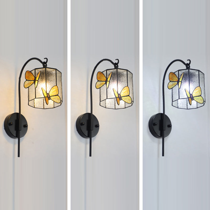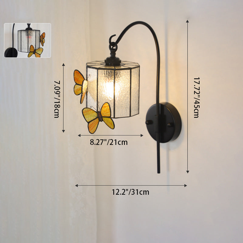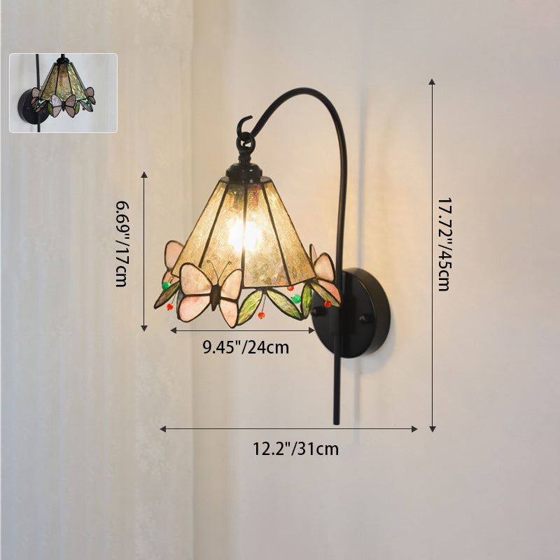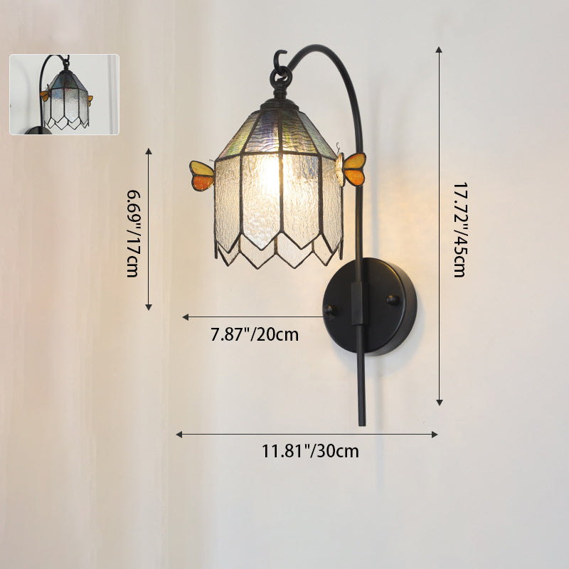 Contemporary Retro Cone Column Butterfly Hardware Glass 1-Light Wall Sconce Lamp For Living Room