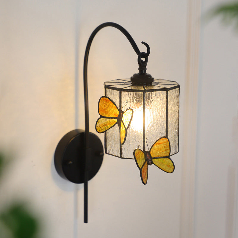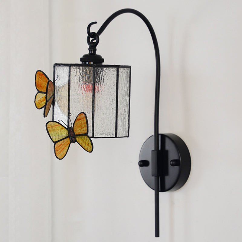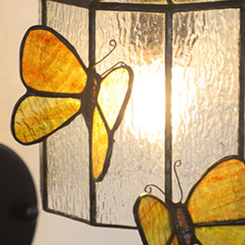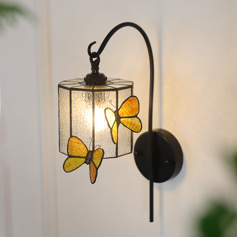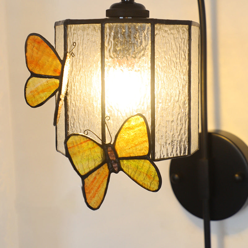 Contemporary Retro Cone Column Butterfly Hardware Glass 1-Light Wall Sconce Lamp For Living Room