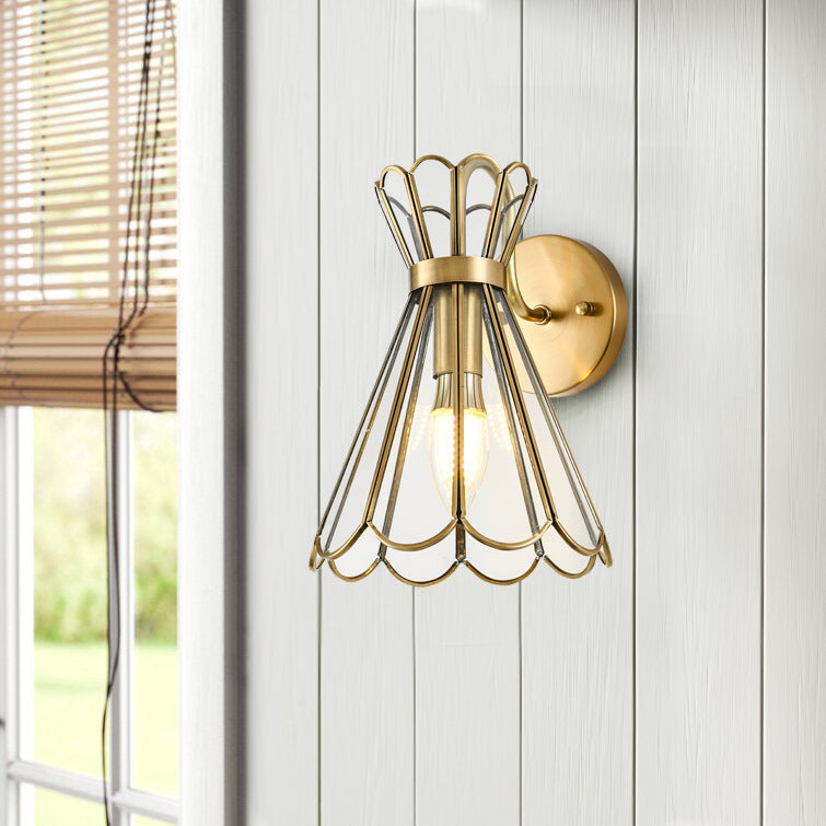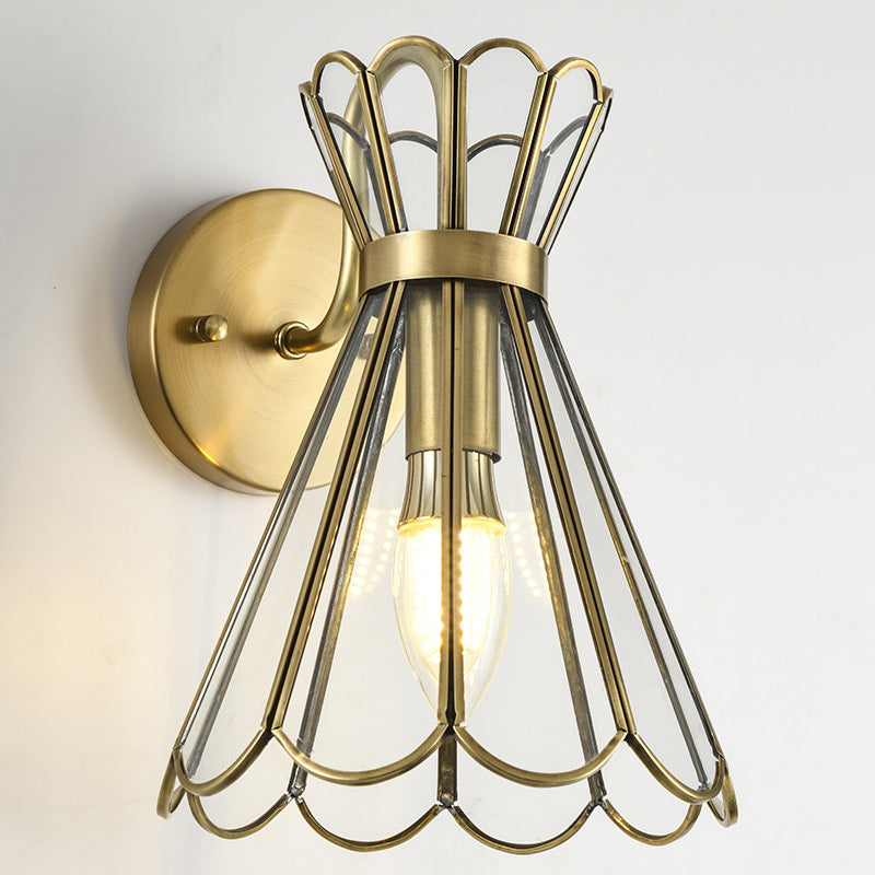 Contemporary Retro Cone Full Copper Glass 1 - Light Wall Sconce Lamp For Living Room