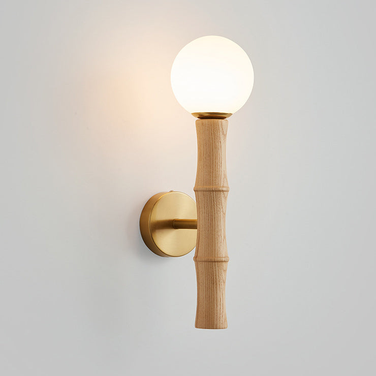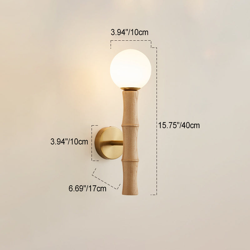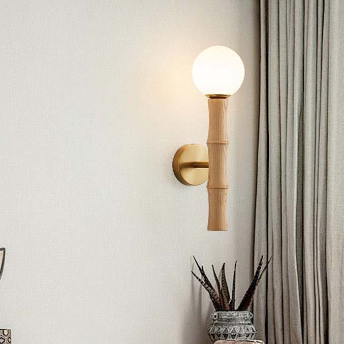 Contemporary Retro Cylinder Bamboo Shape Solid Wood 1-Light Wall Sconce Lamp For Living Room