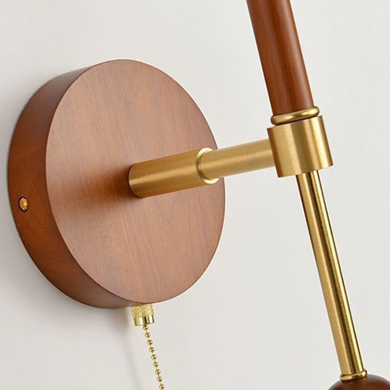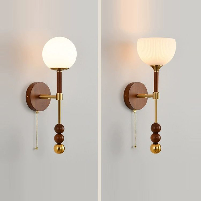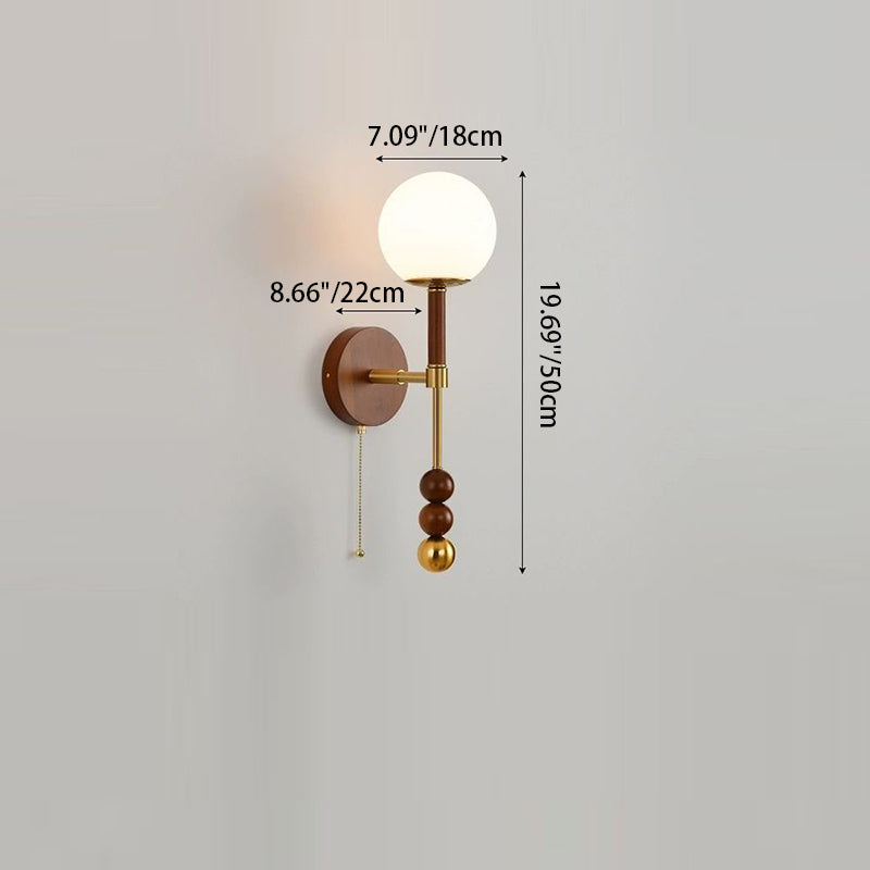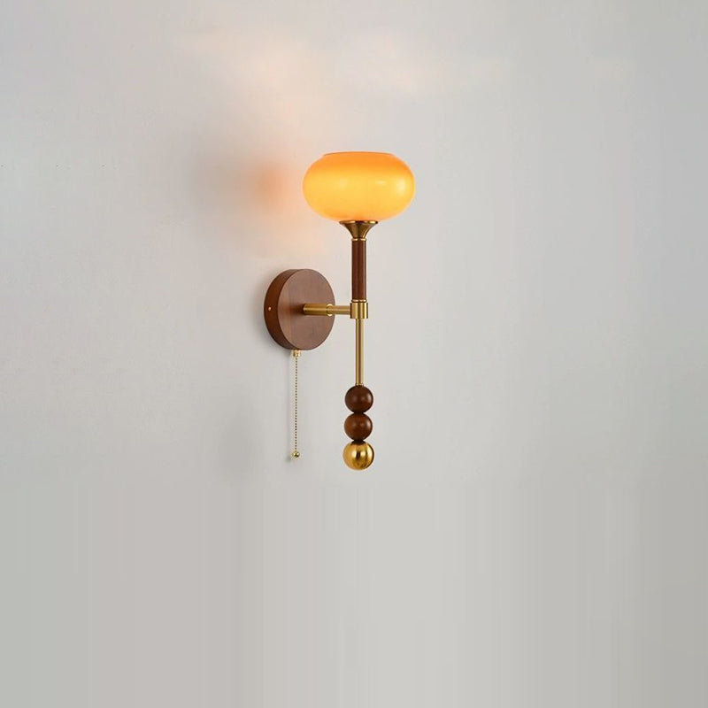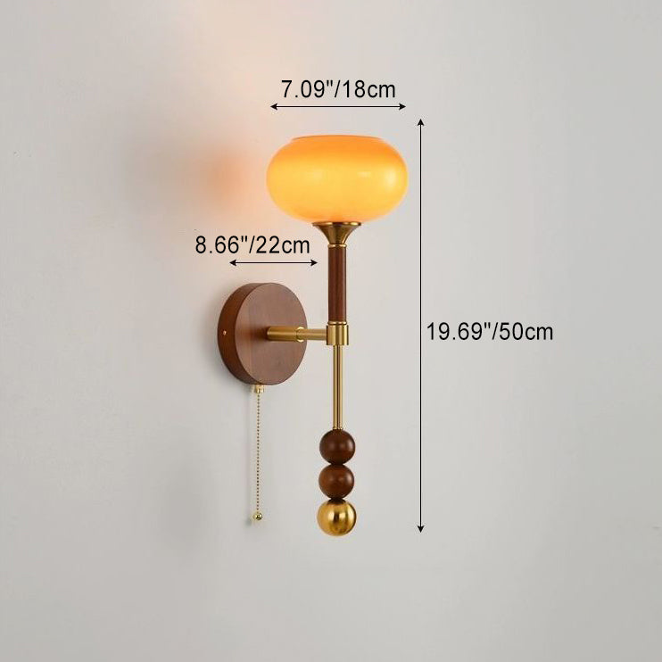 Contemporary Retro Cylinder Globe Oval Wood Hardware Glass 1-Light Wall Sconce Lamp For Living Room