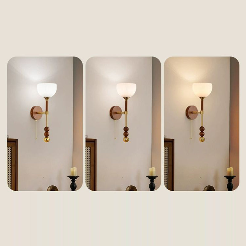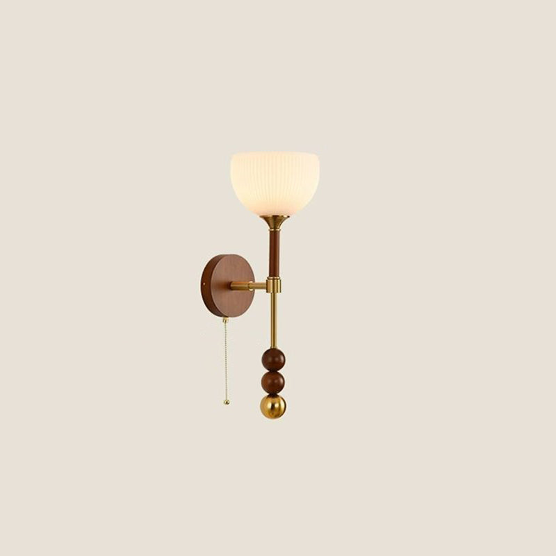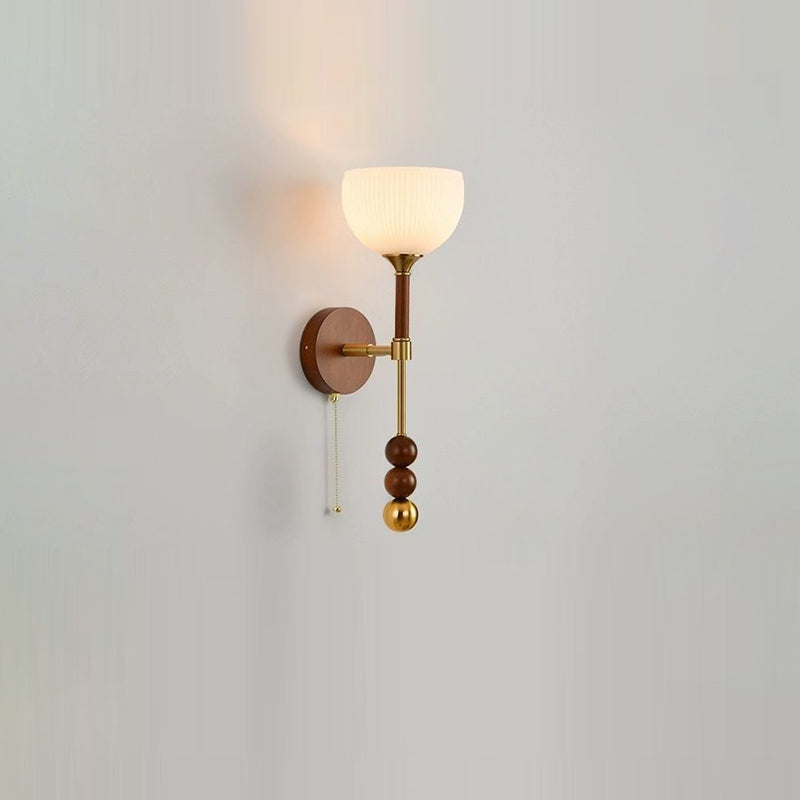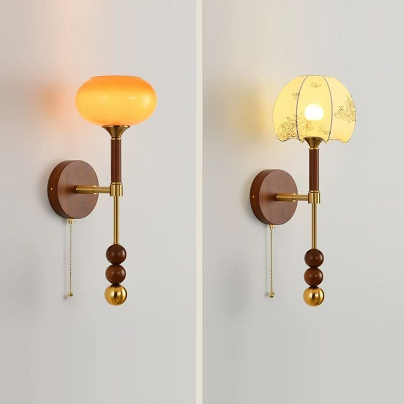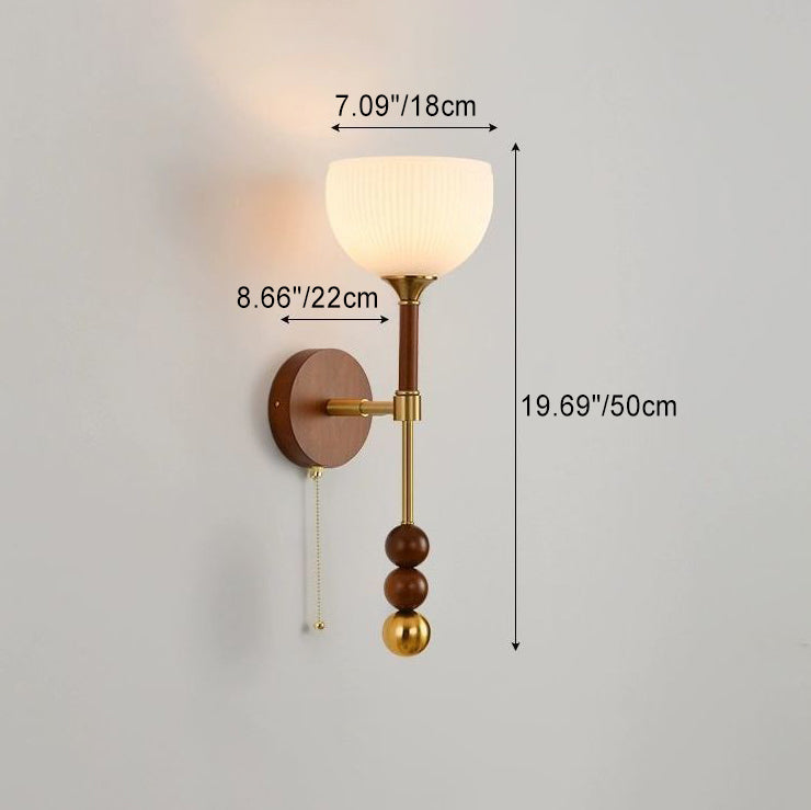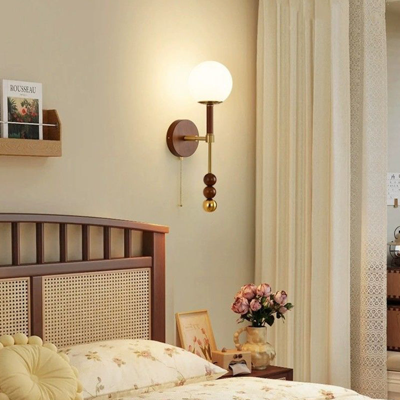 Contemporary Retro Cylinder Globe Oval Wood Hardware Glass 1-Light Wall Sconce Lamp For Living Room