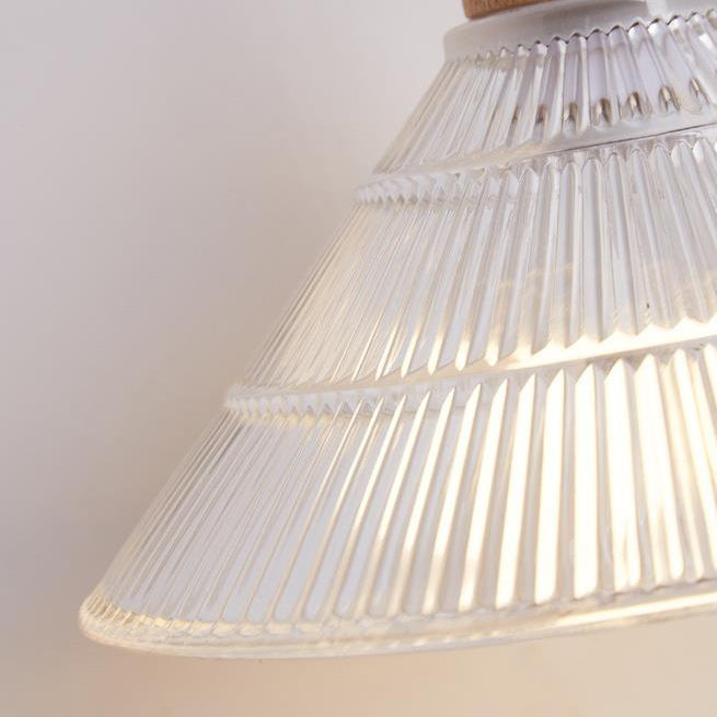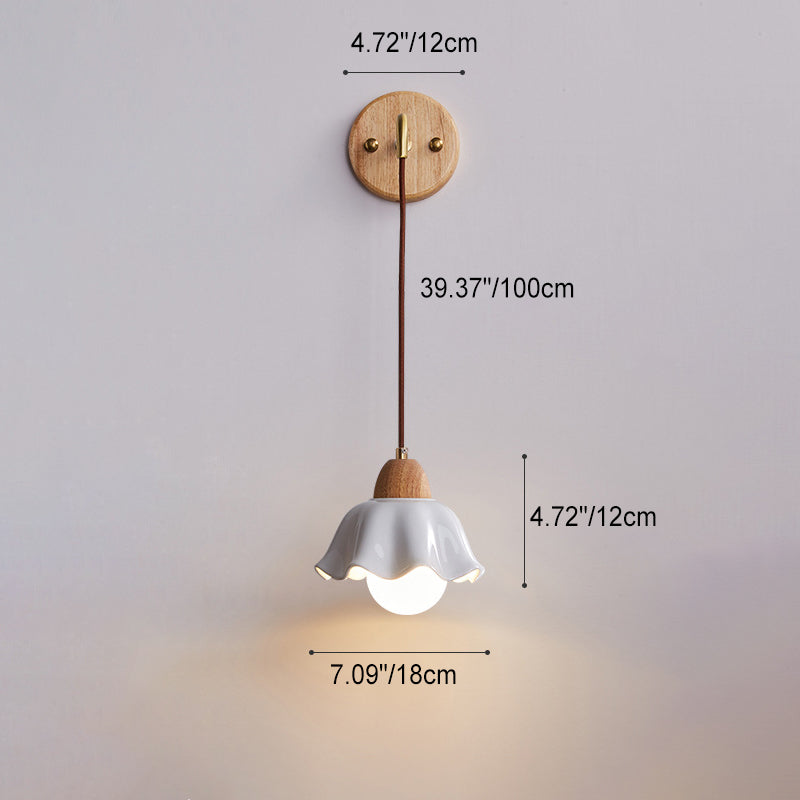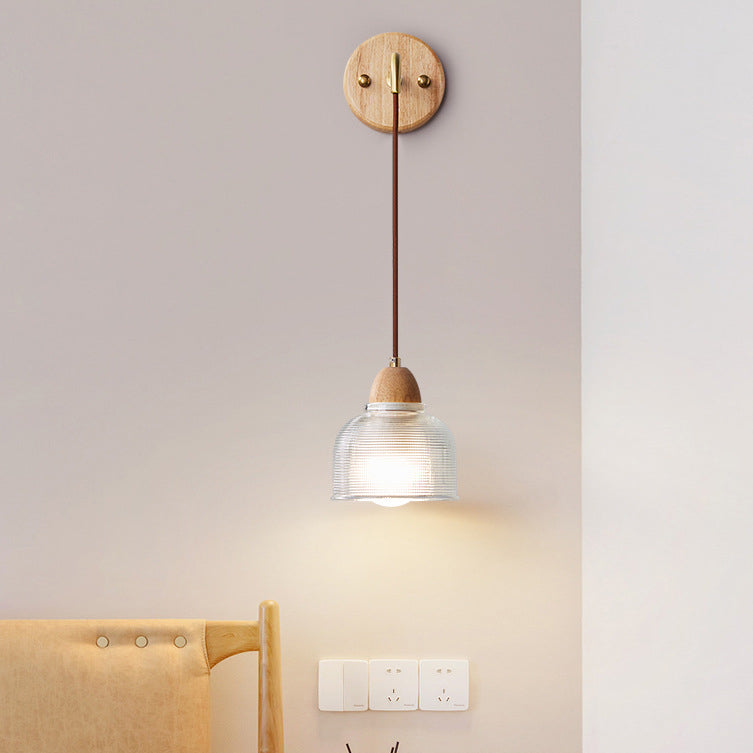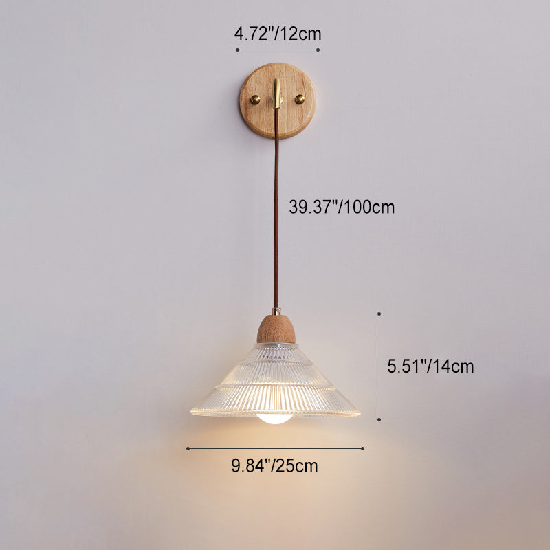 Contemporary Retro Cylinder Petal Cone Solid Wood Glass 1-Light Wall Sconce Lamp For Bedroom