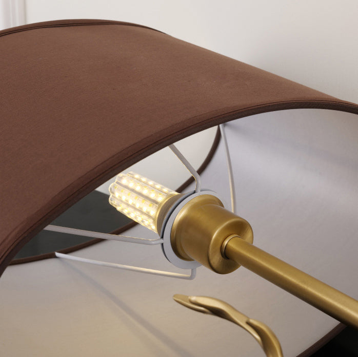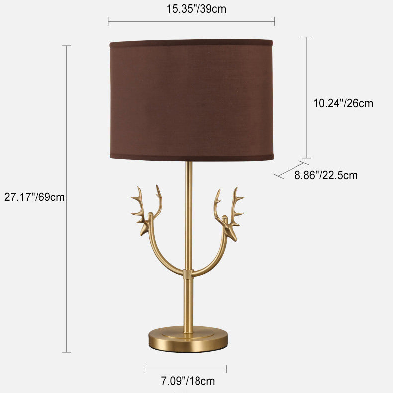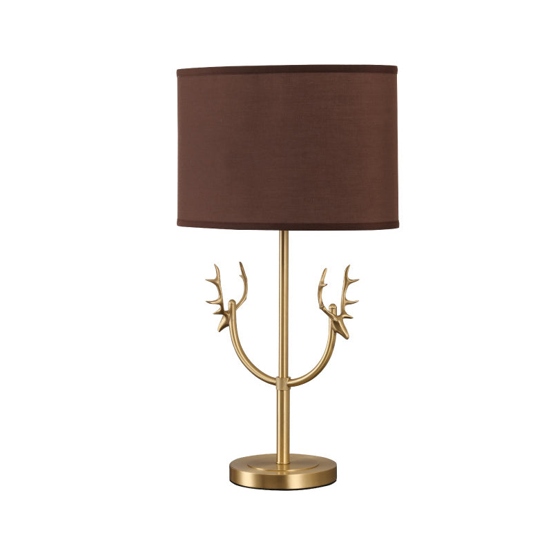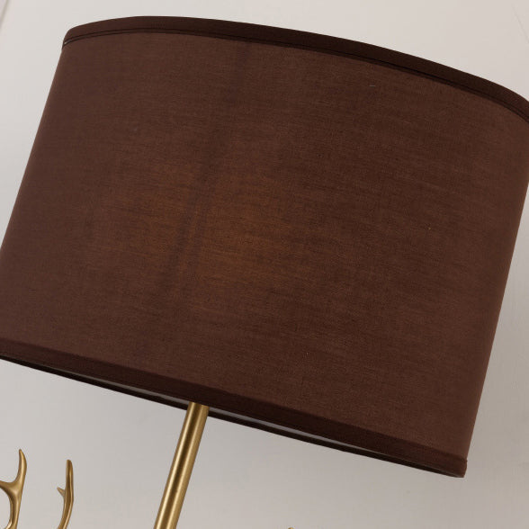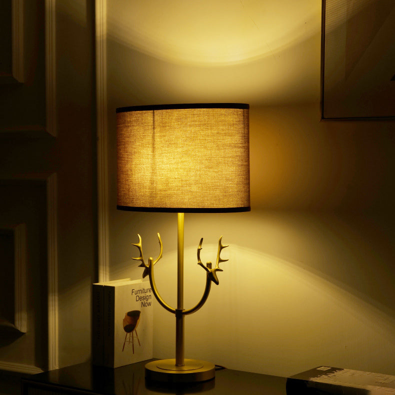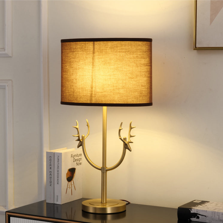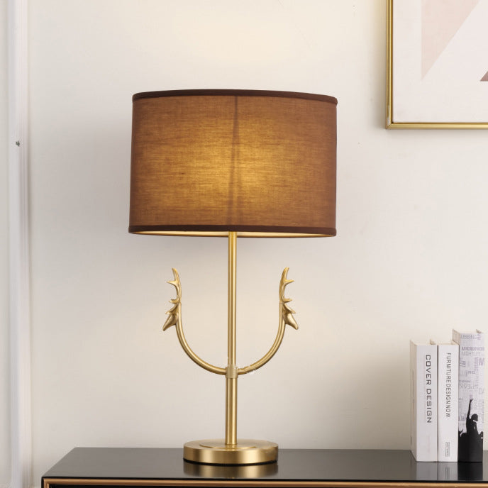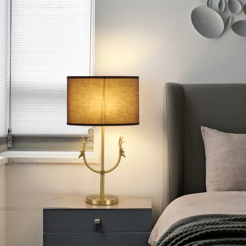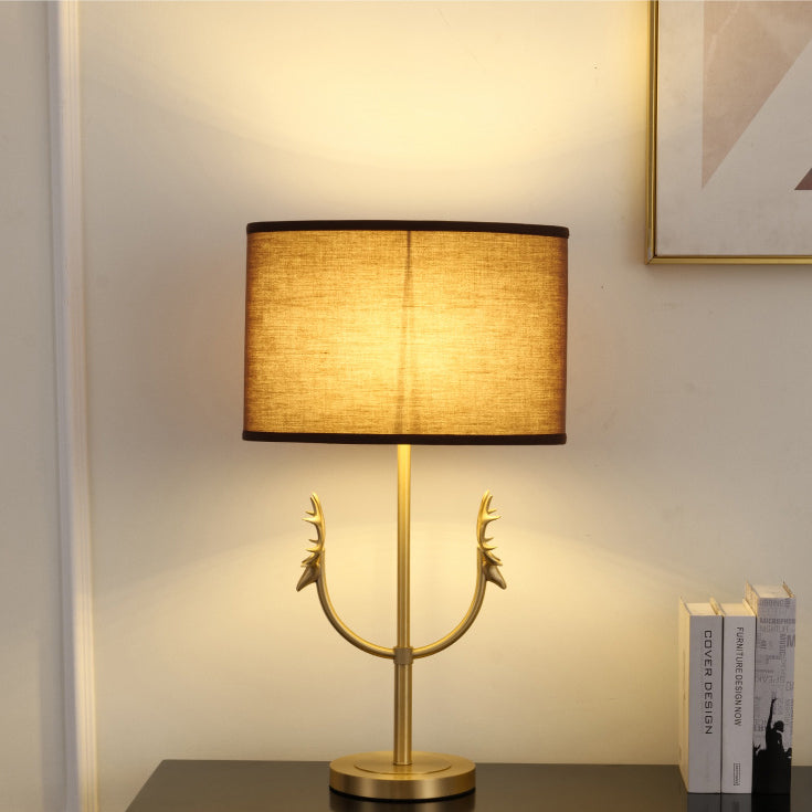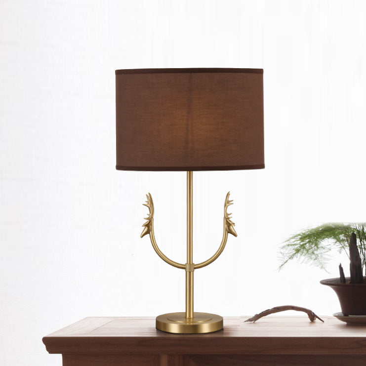 Contemporary Retro Fabric Brass Cylinder Deer 1-Light Table Lamp For Bedside