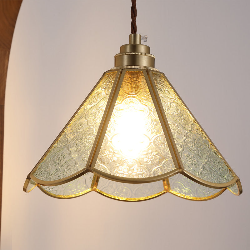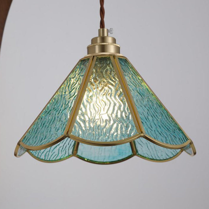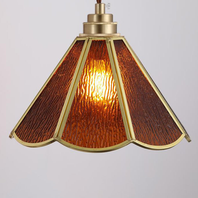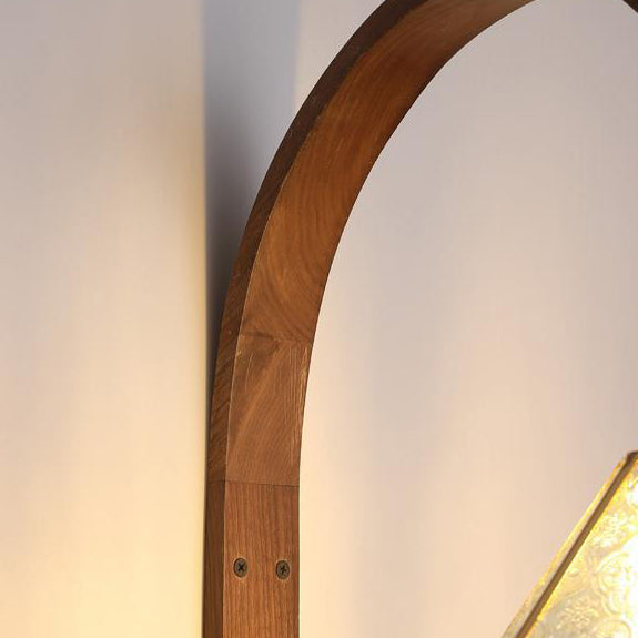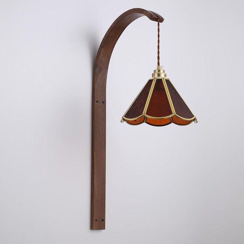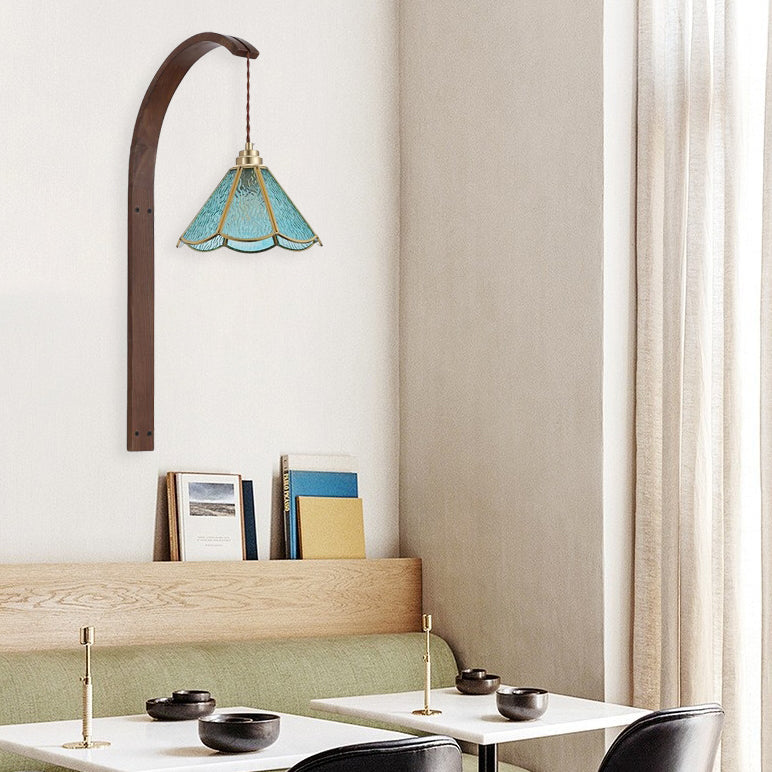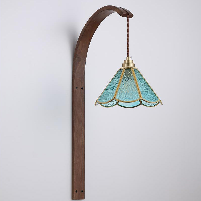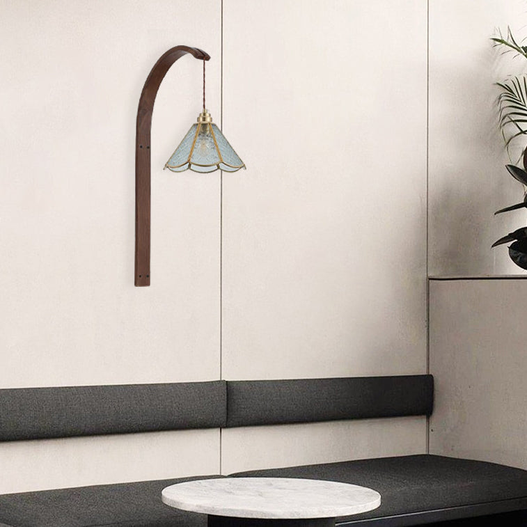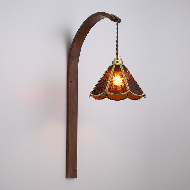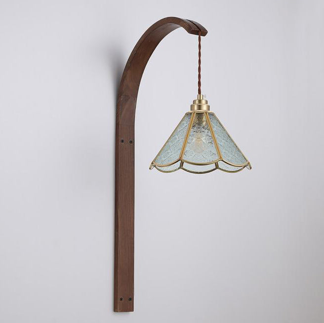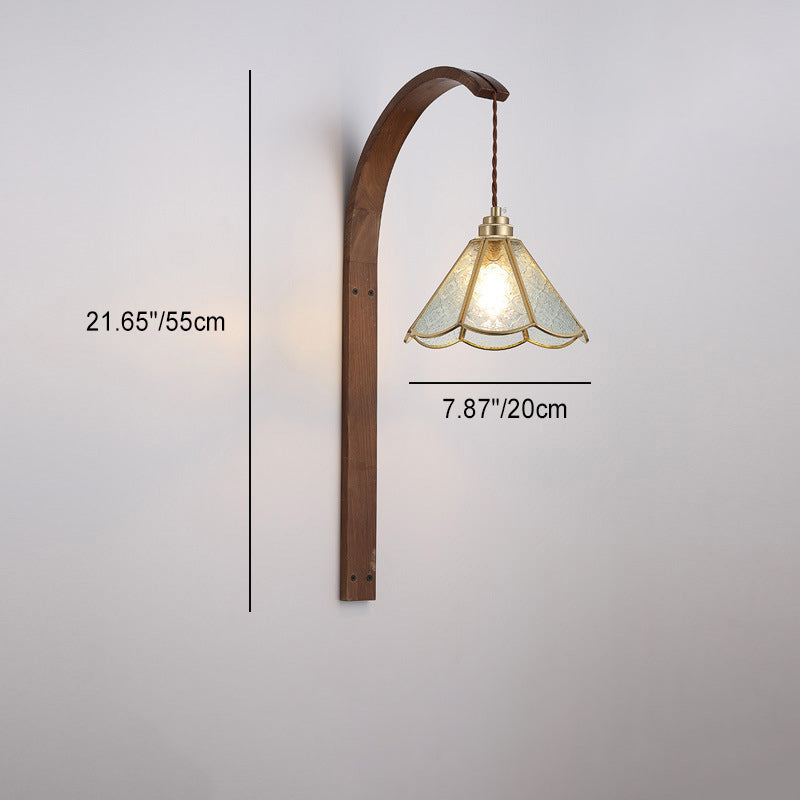 Contemporary Retro Flower Hammered Glass Shade Wood 1-Light Wall Sconce Lamp For Bedroom