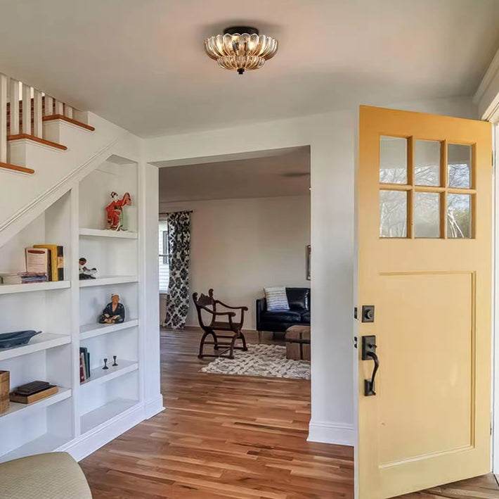 Contemporary Retro Glass Iron Floral Petal 3-Light Semi-Flush Mount Ceiling Light For Hallway