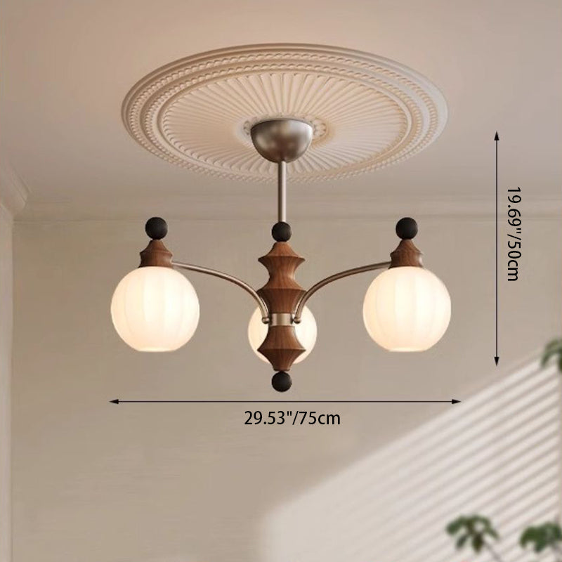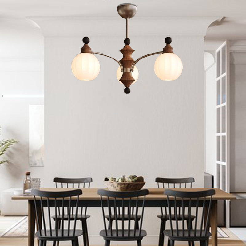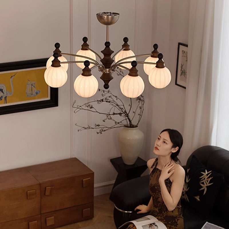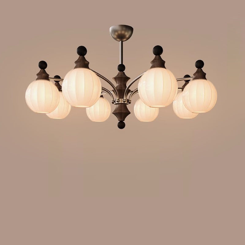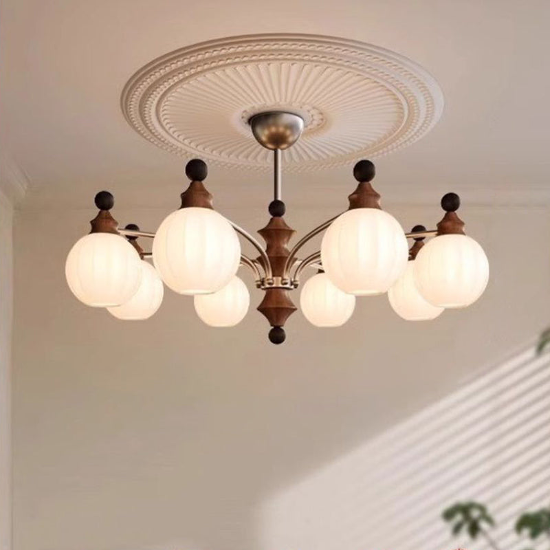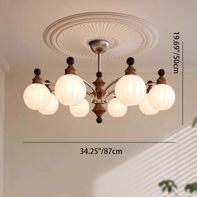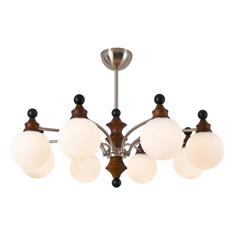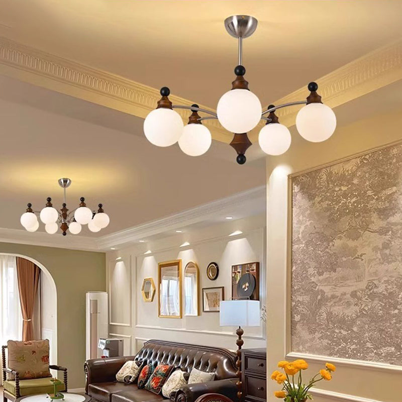 Contemporary Retro Hardware Wood Frame Glass Ball 3/5/8-Light Chandelier For Living Room