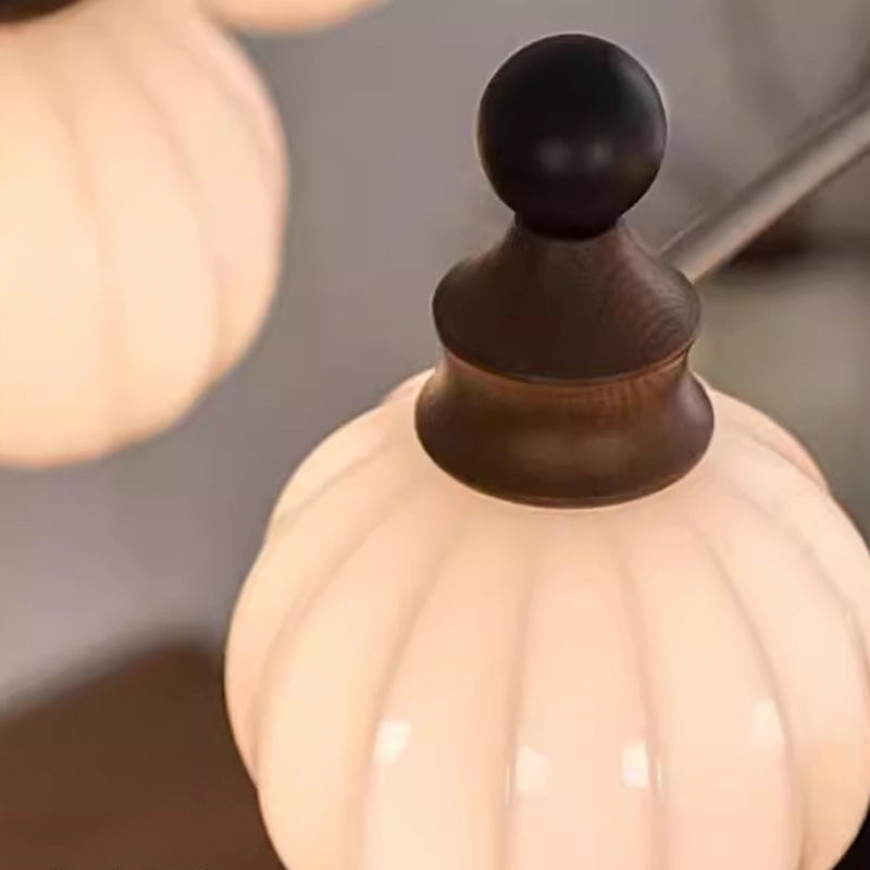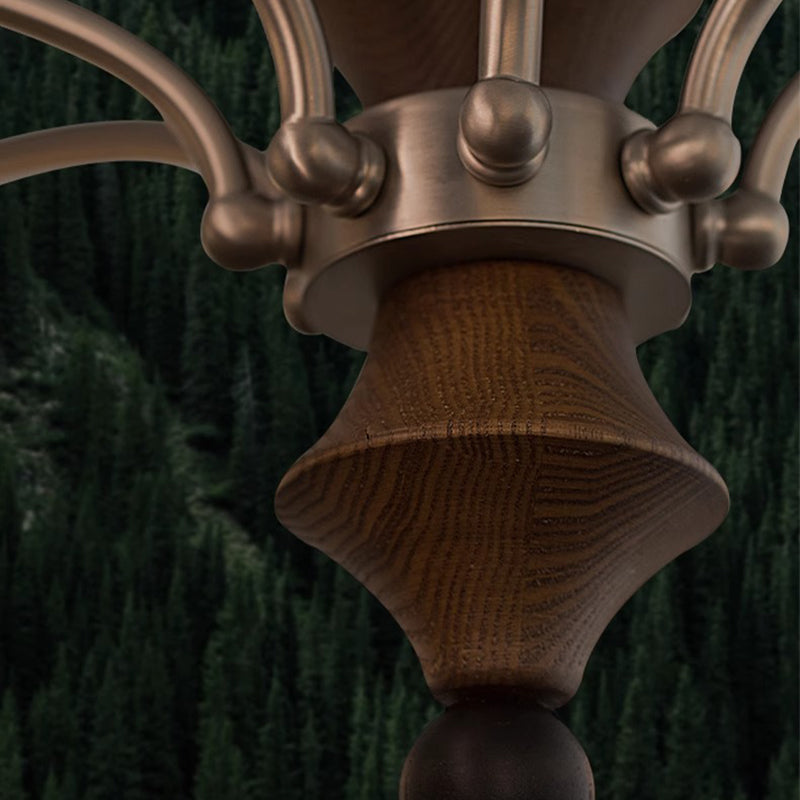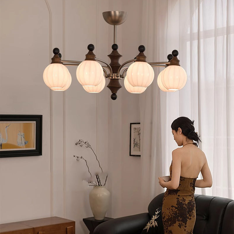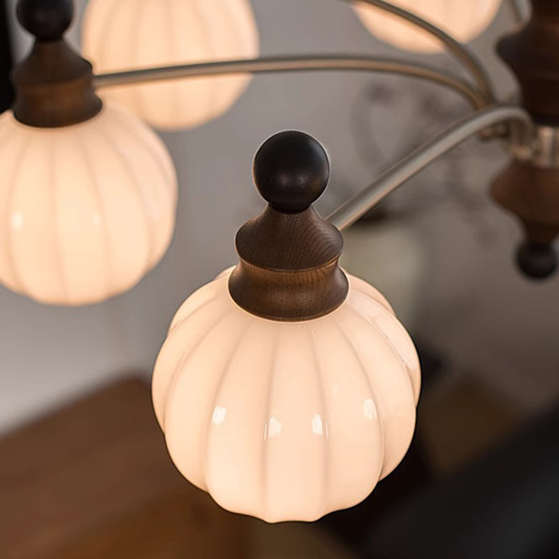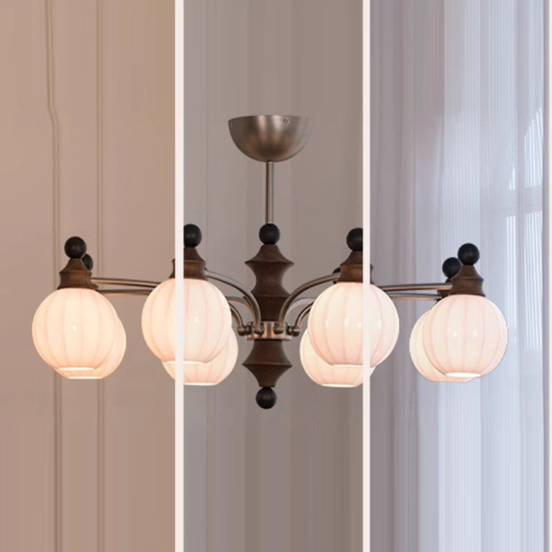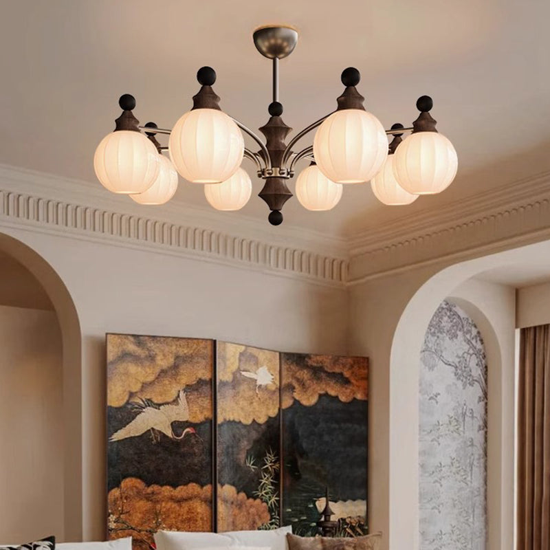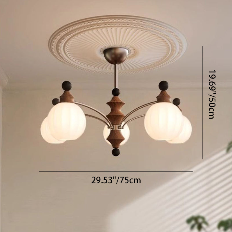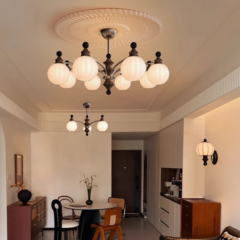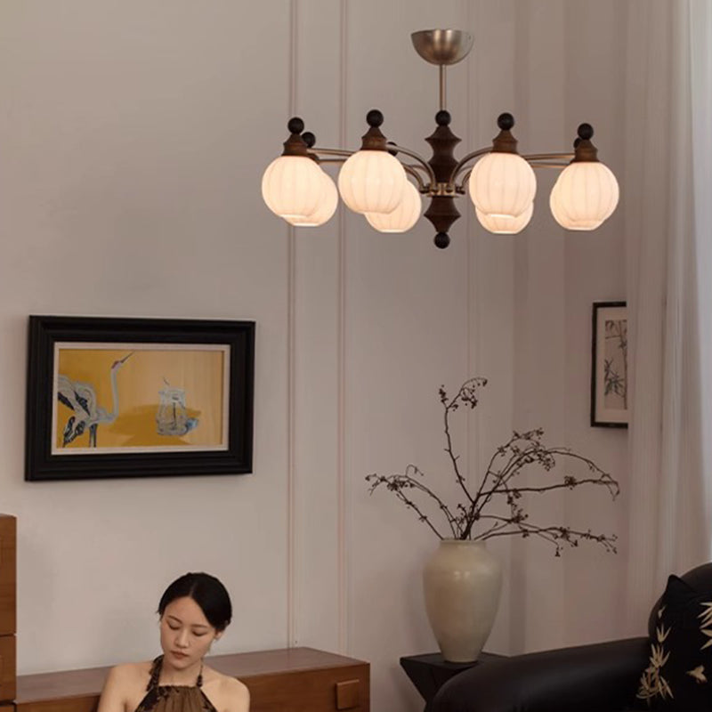Contemporary Retro Hardware Wood Frame Glass Ball 3/5/8-Light Chandelier For Living Room