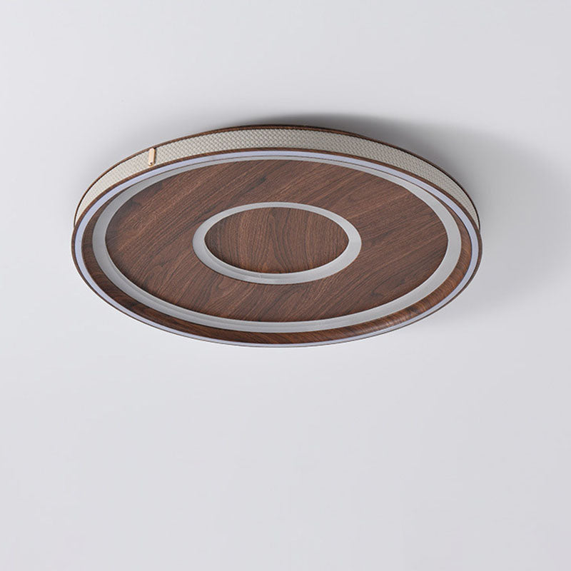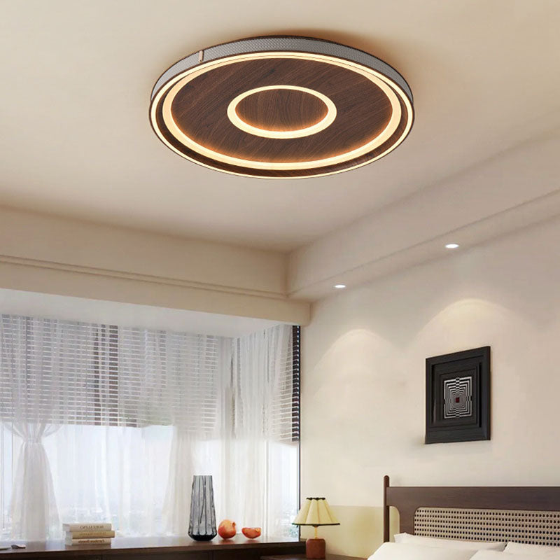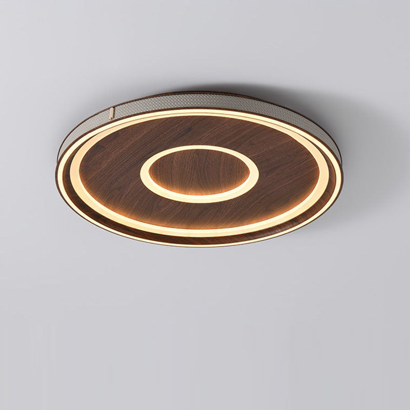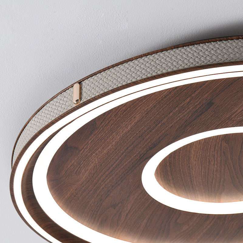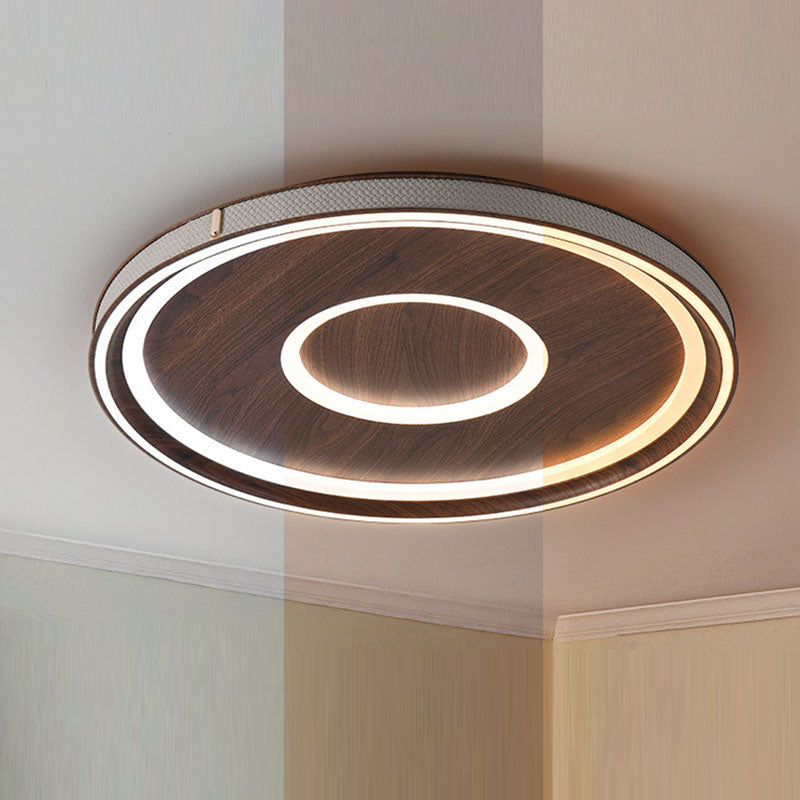 Contemporary Retro Iron Acrylic Aluminum Faux Leather Round LED Flush Mount Ceiling Light For Living Room