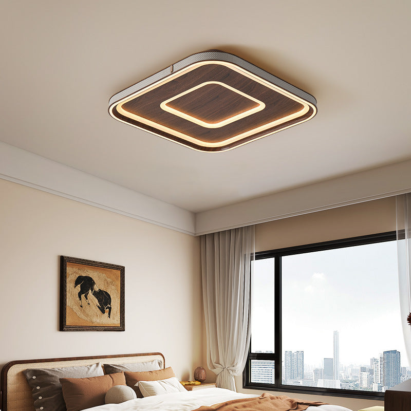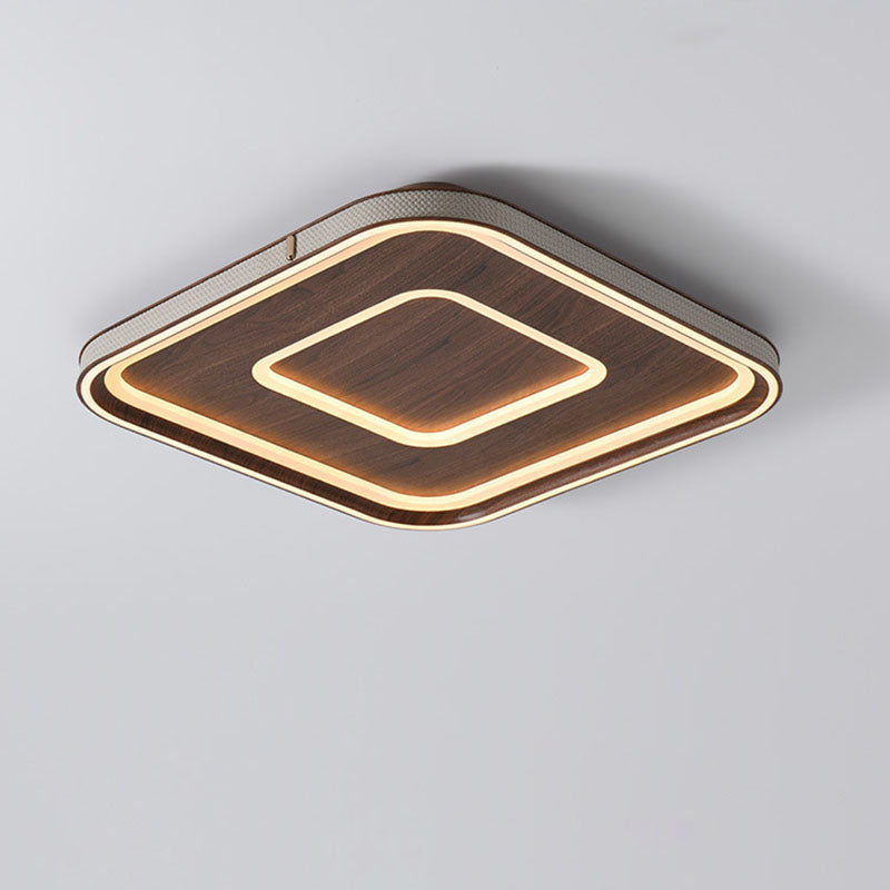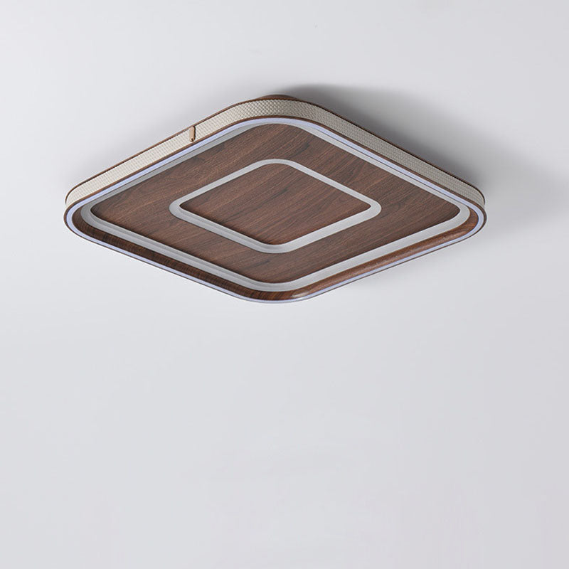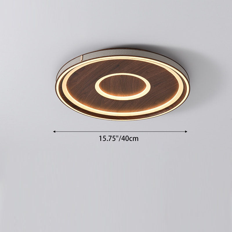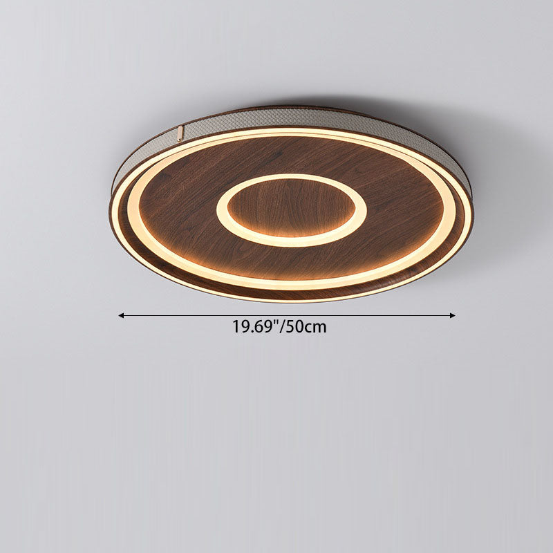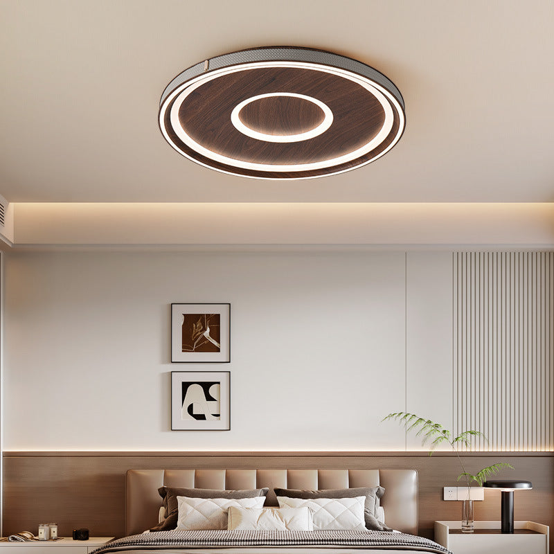 Contemporary Retro Iron Acrylic Aluminum Faux Leather Round LED Flush Mount Ceiling Light For Living Room