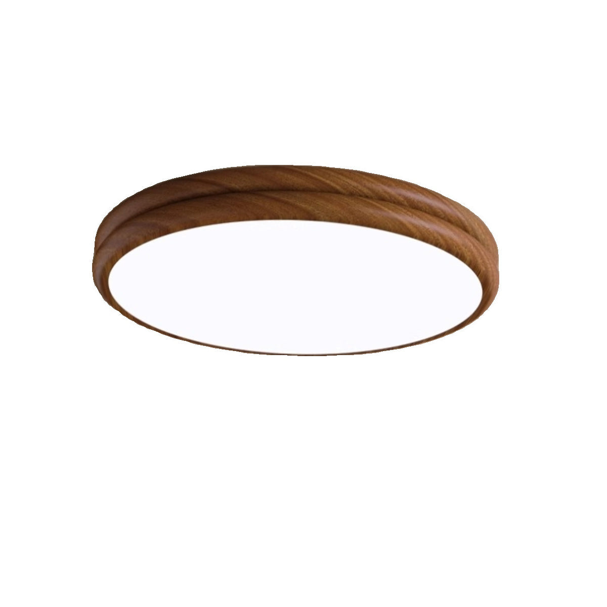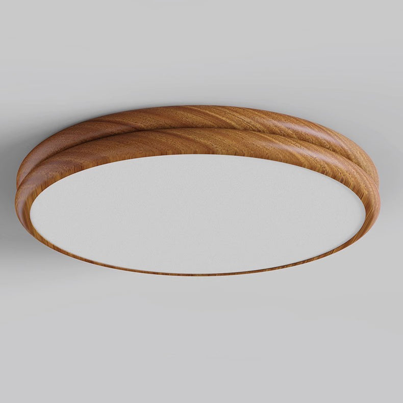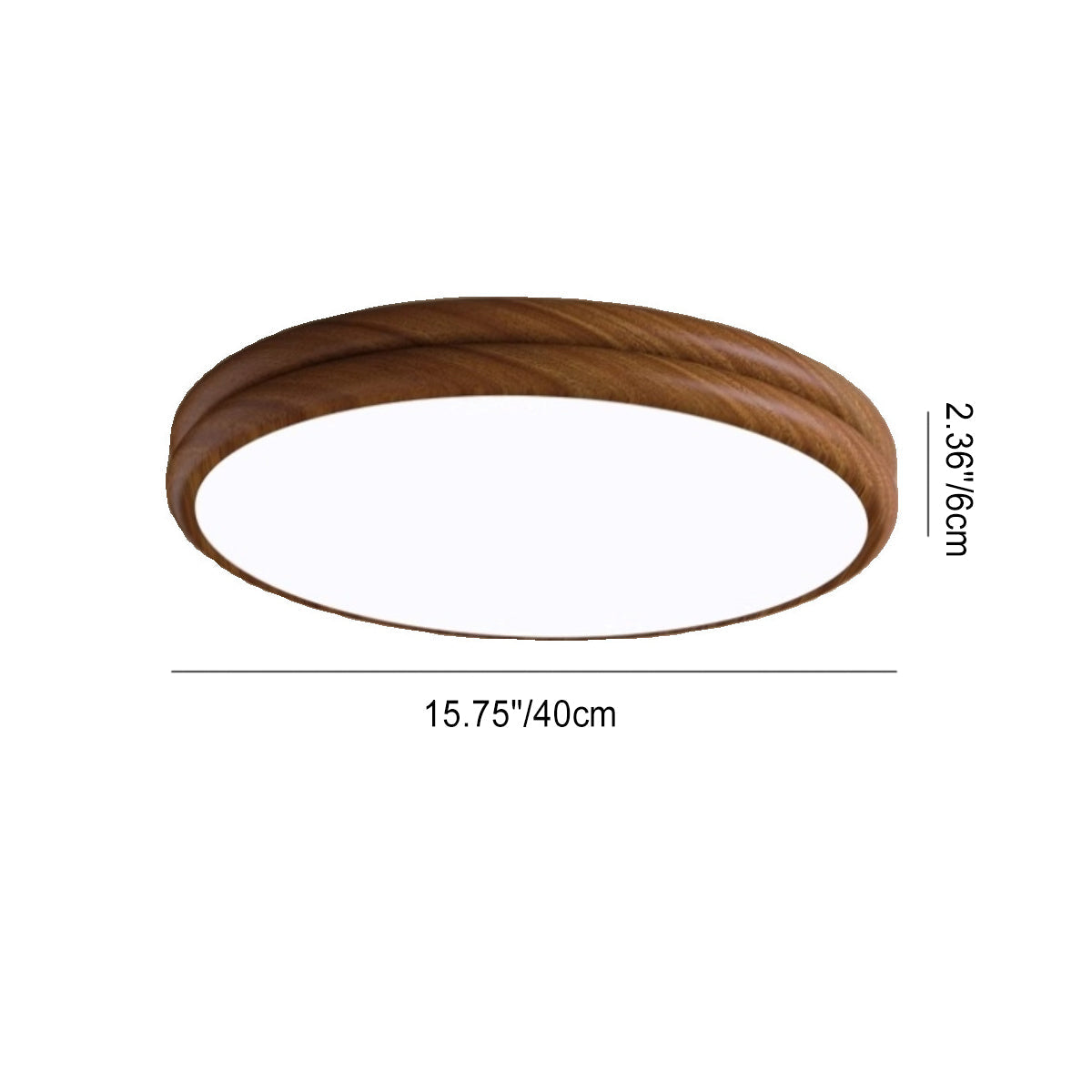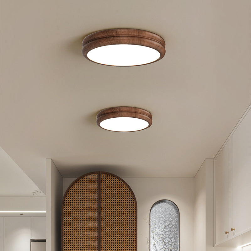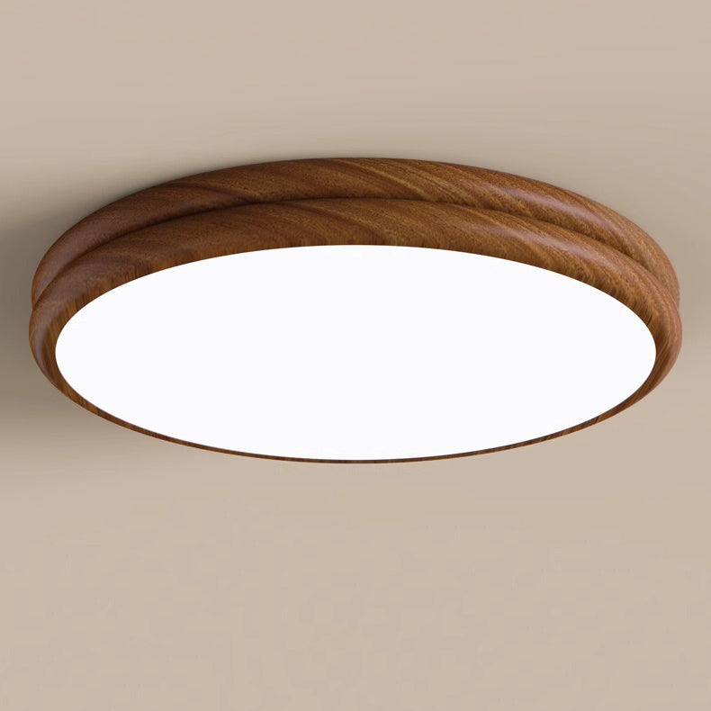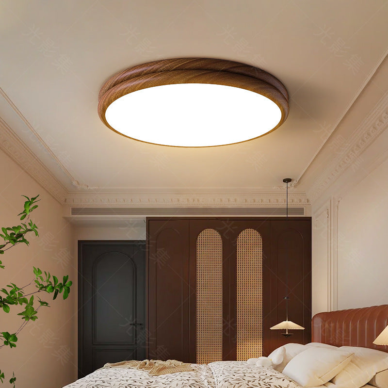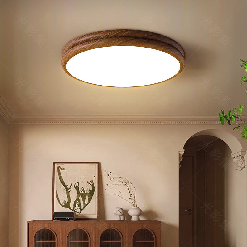 Contemporary Retro Iron Acrylic Round Wood Grain LED Flush Mount Ceiling Light For Bedroom