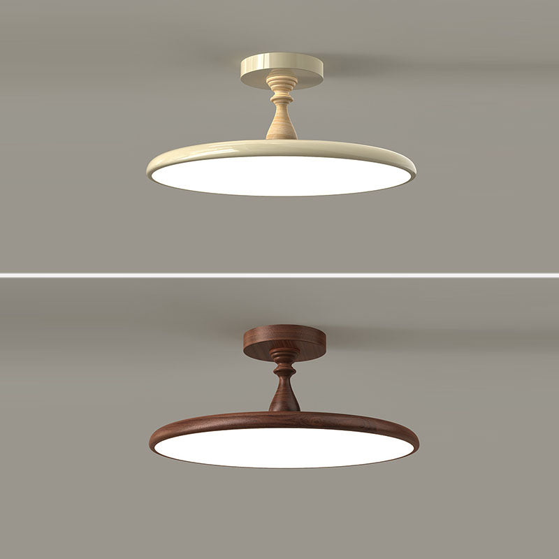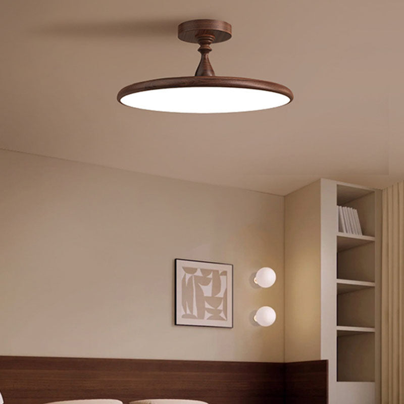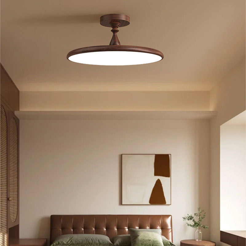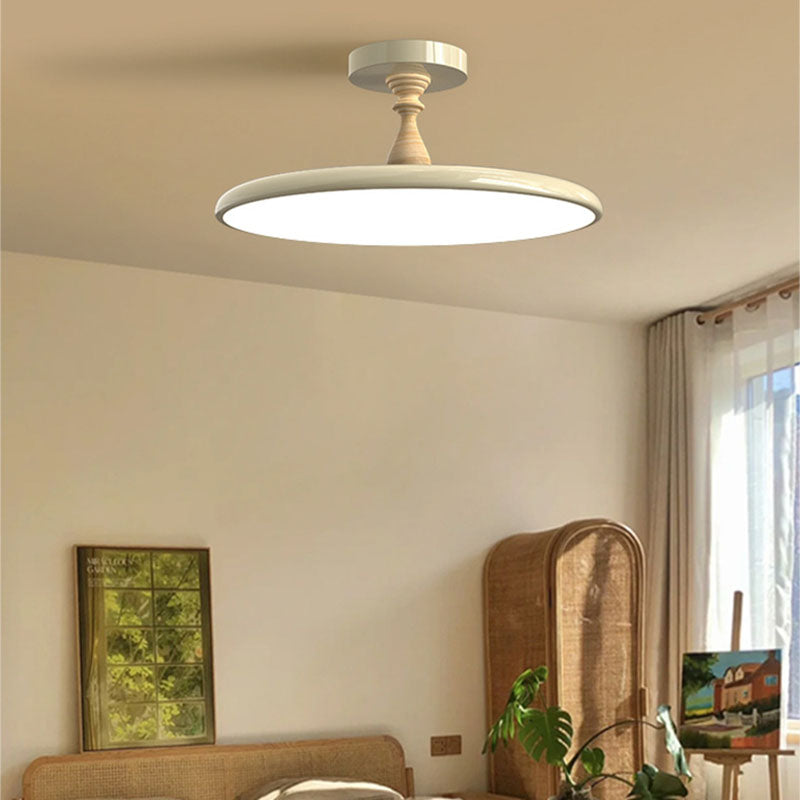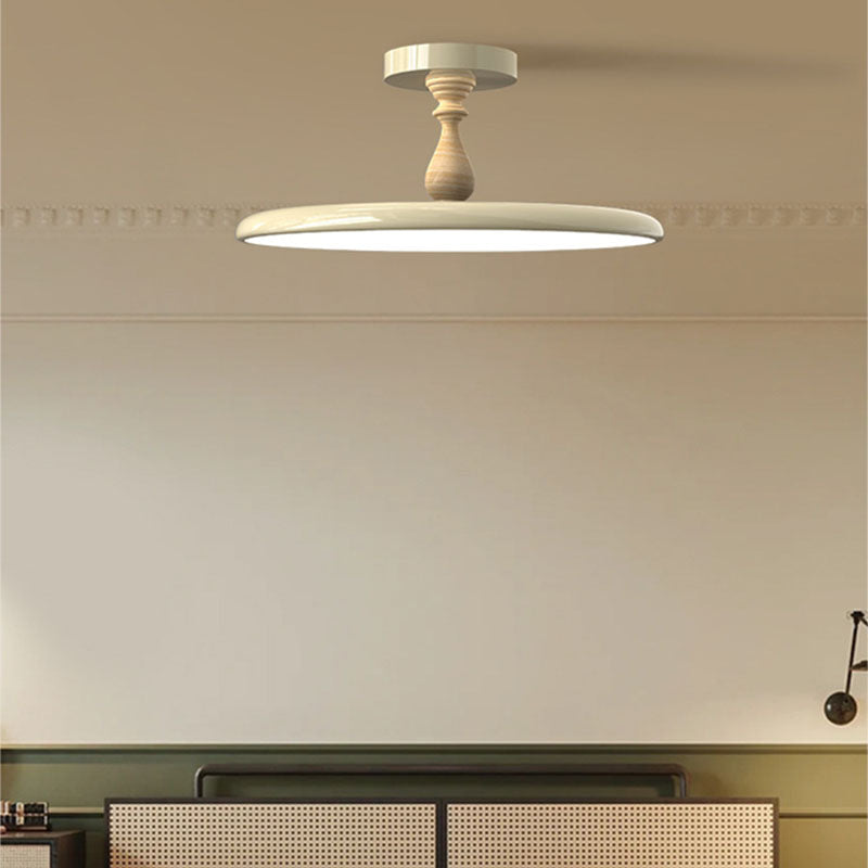 Contemporary Retro Iron PVC Round LED Semi-Flush Mount Ceiling Light For Bedroom