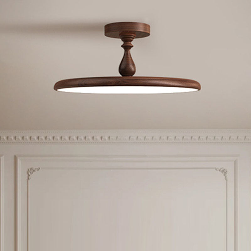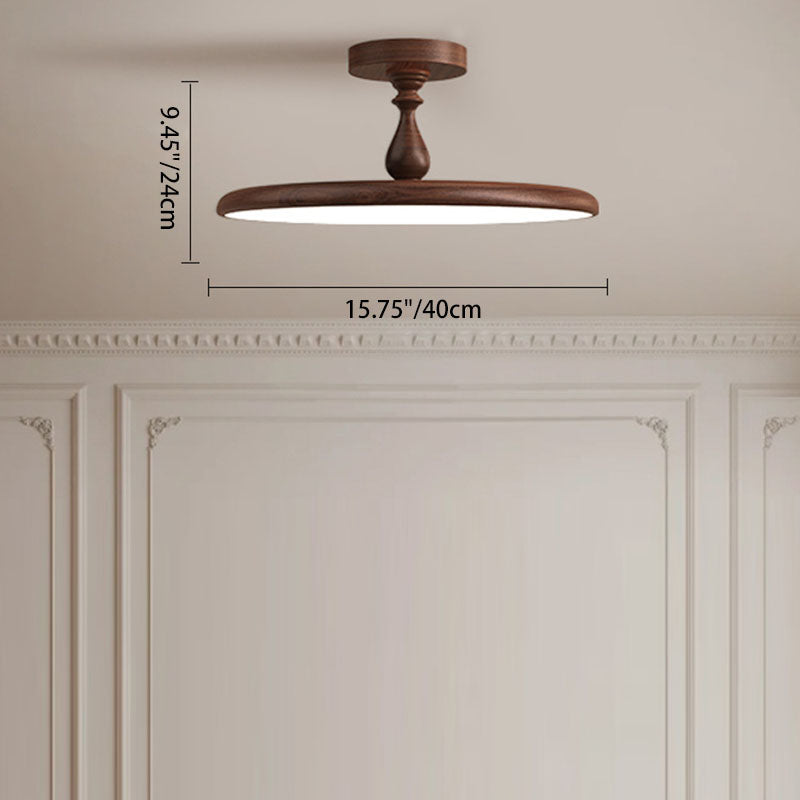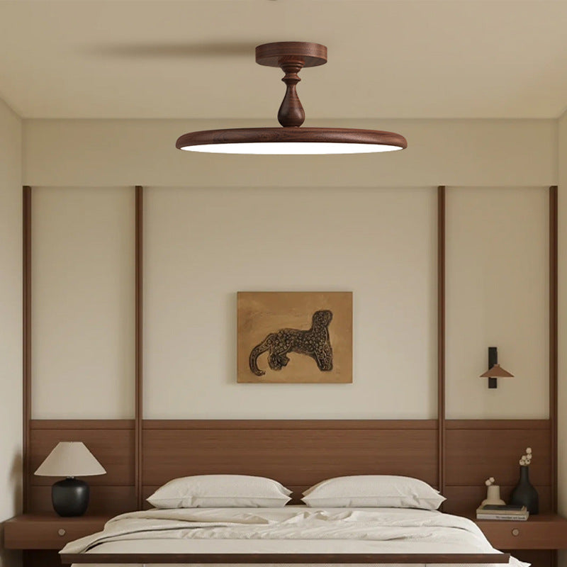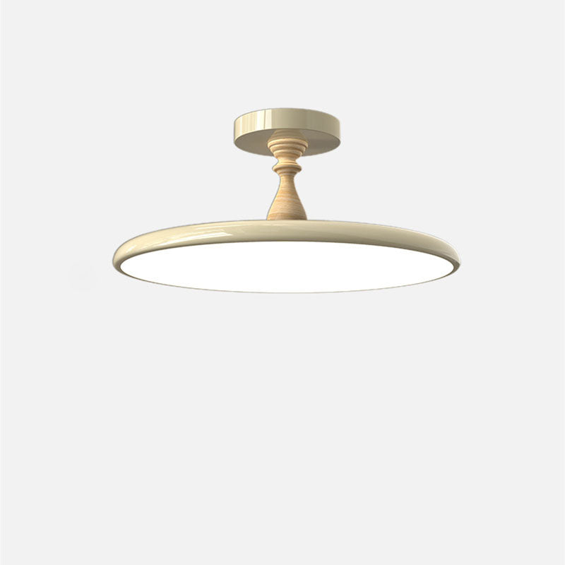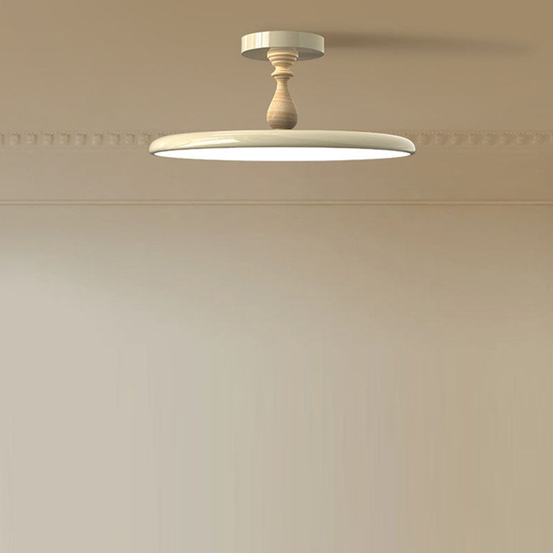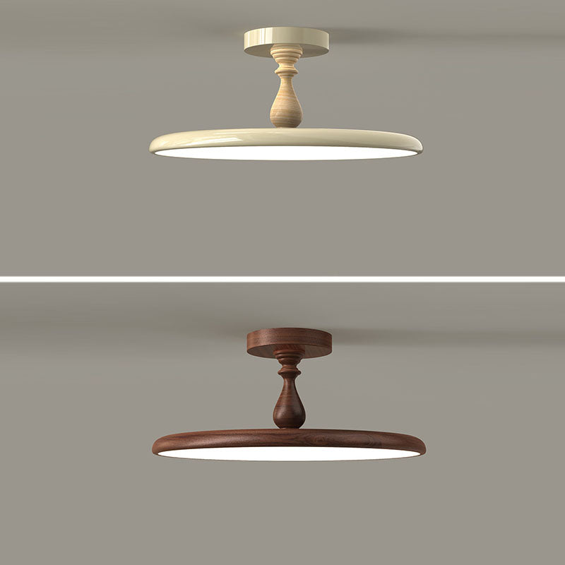 Contemporary Retro Iron PVC Round LED Semi-Flush Mount Ceiling Light For Bedroom