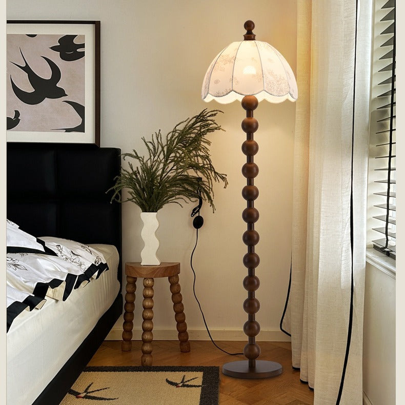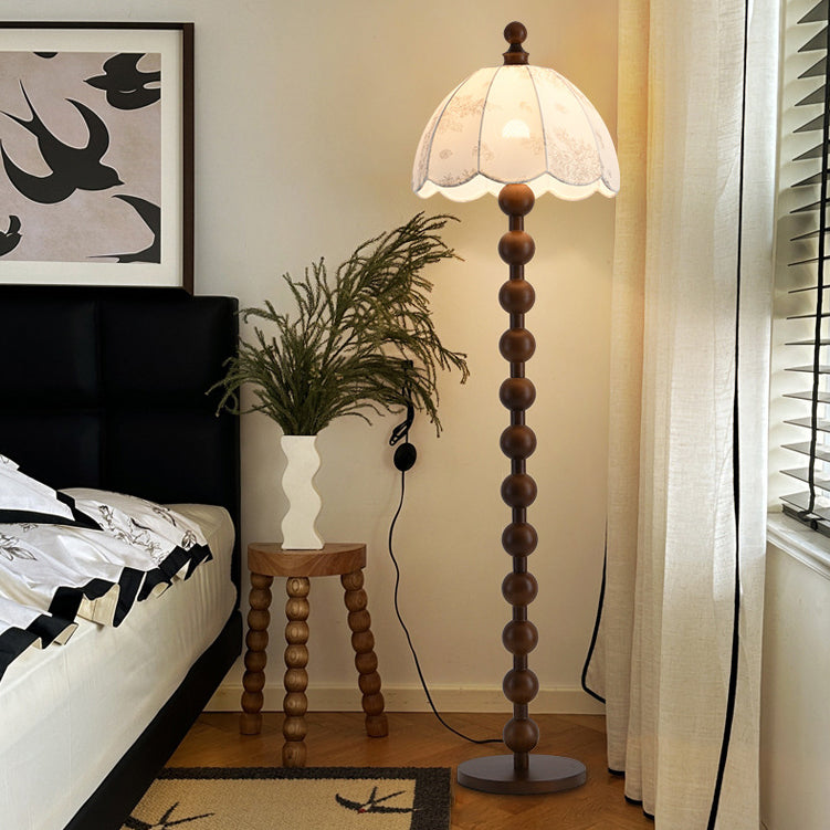 Contemporary Retro Leaves Print Umbrella Fabric Oak 1 - Light Standing Floor Lamp For Living Room