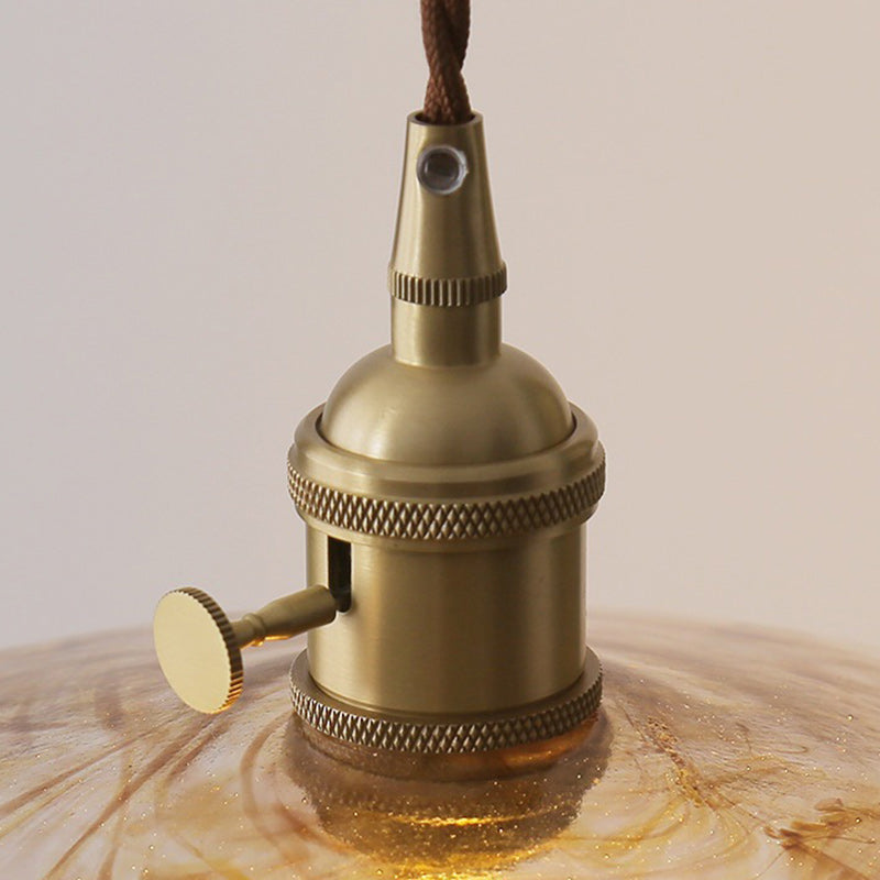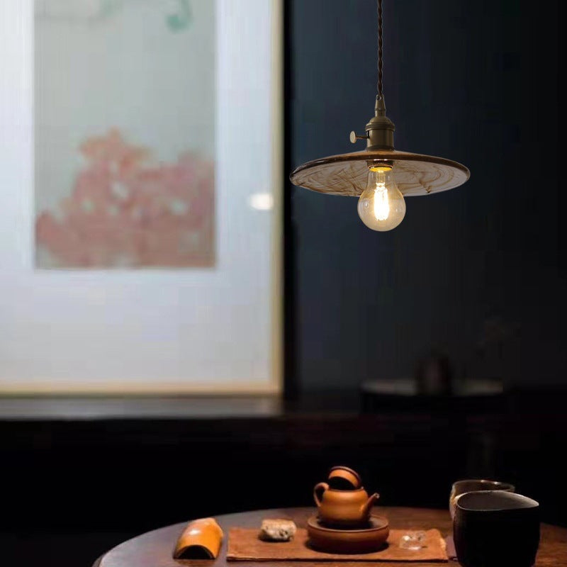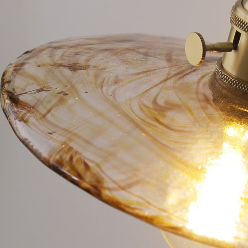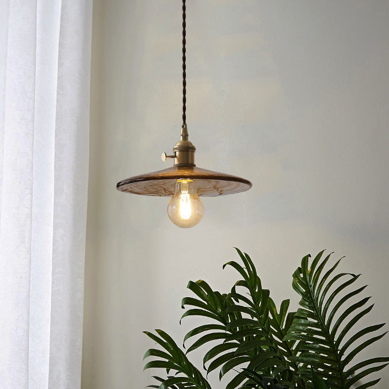 Contemporary Retro Round Plate Brass Glass 1-Light Pendant Light For Living Room