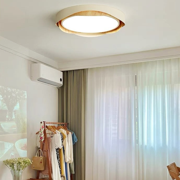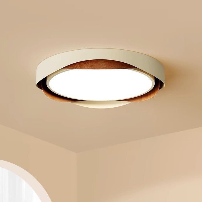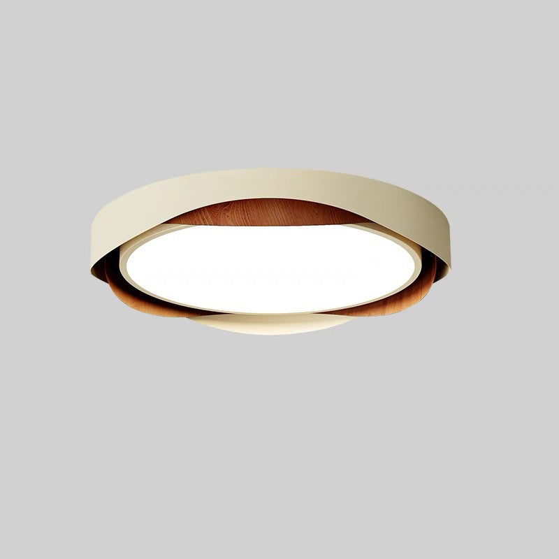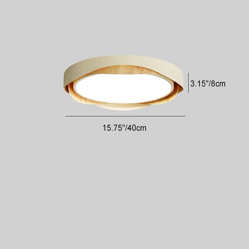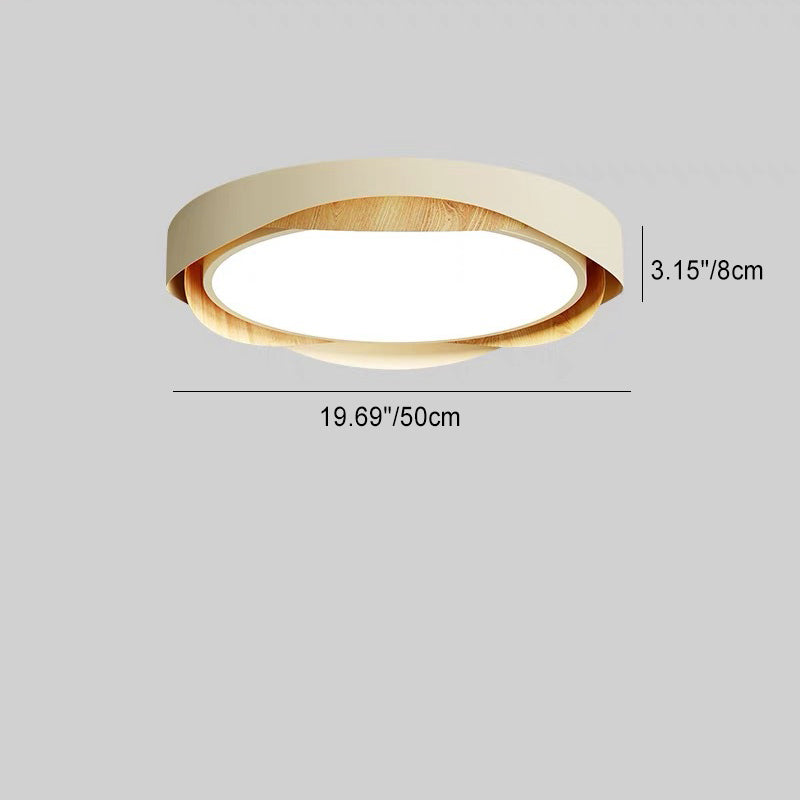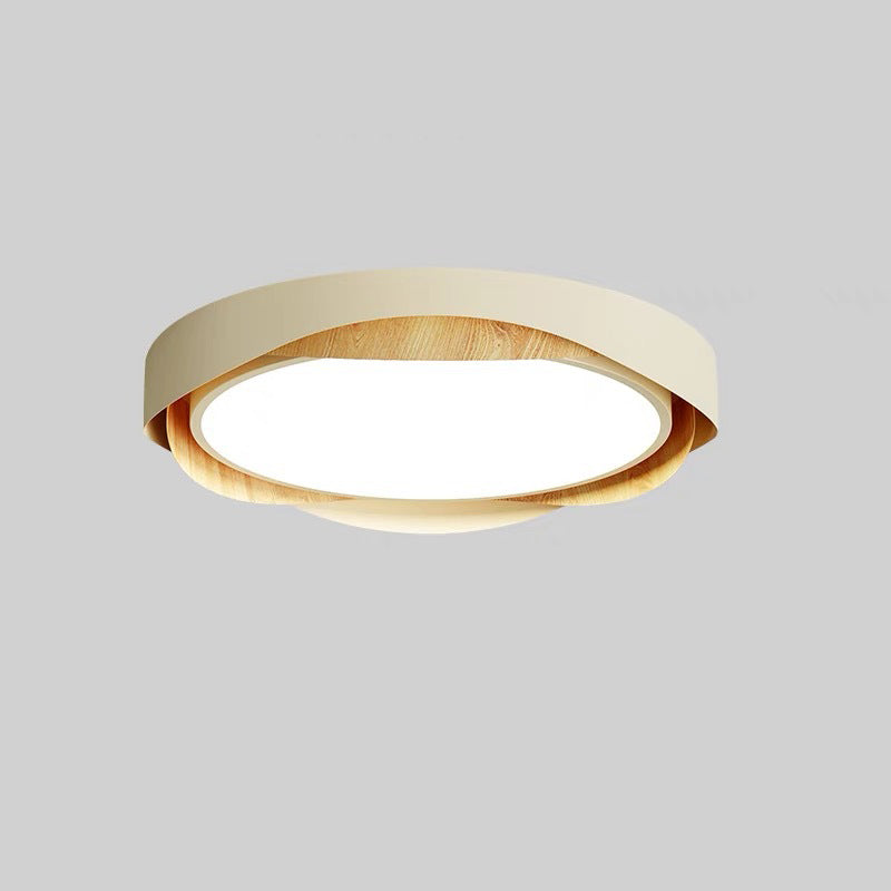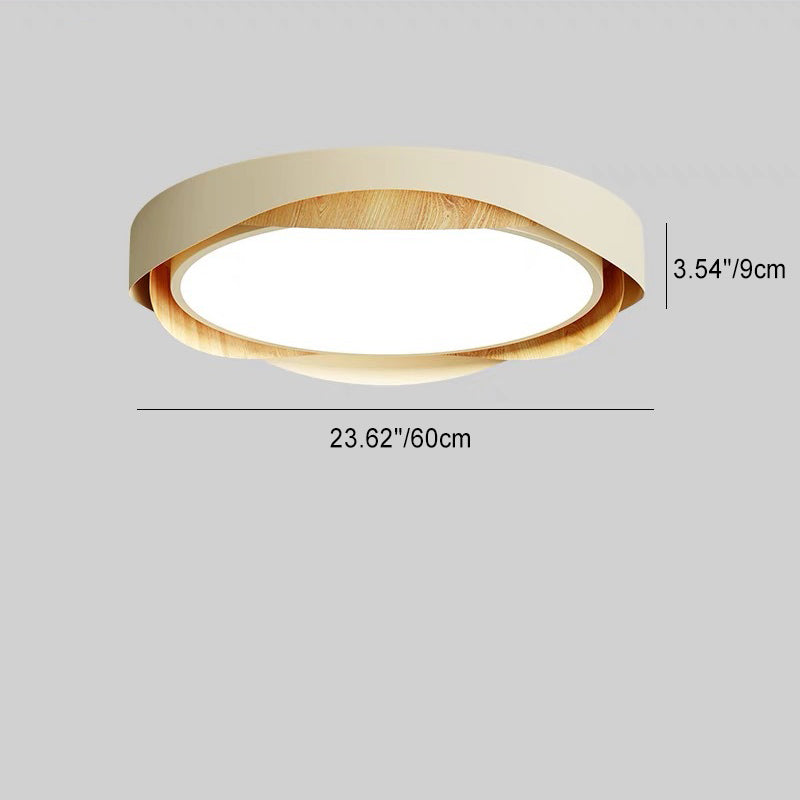 Contemporary Retro Round Wood Grain Iron Frame Acrylic Shade LED Flush Mount Ceiling Light For Bedroom
