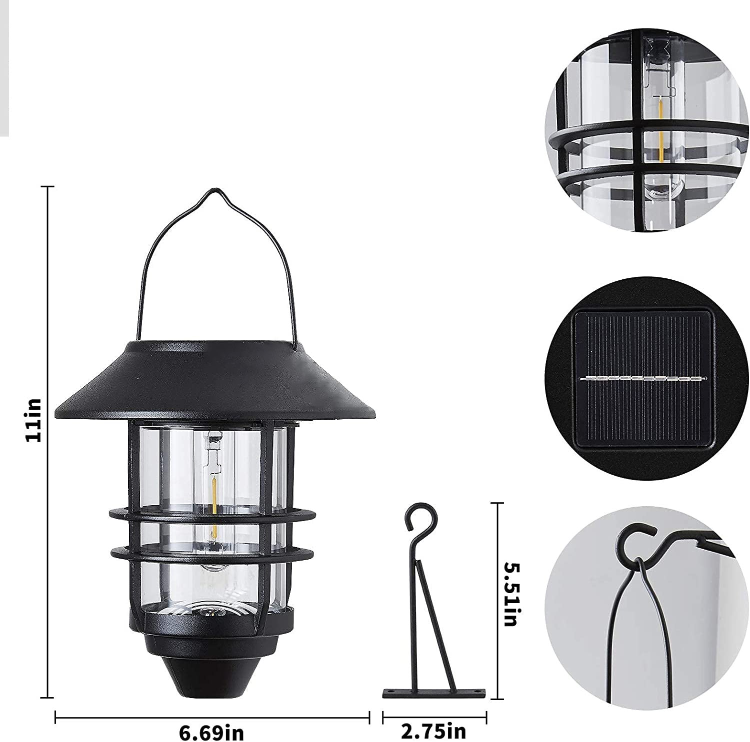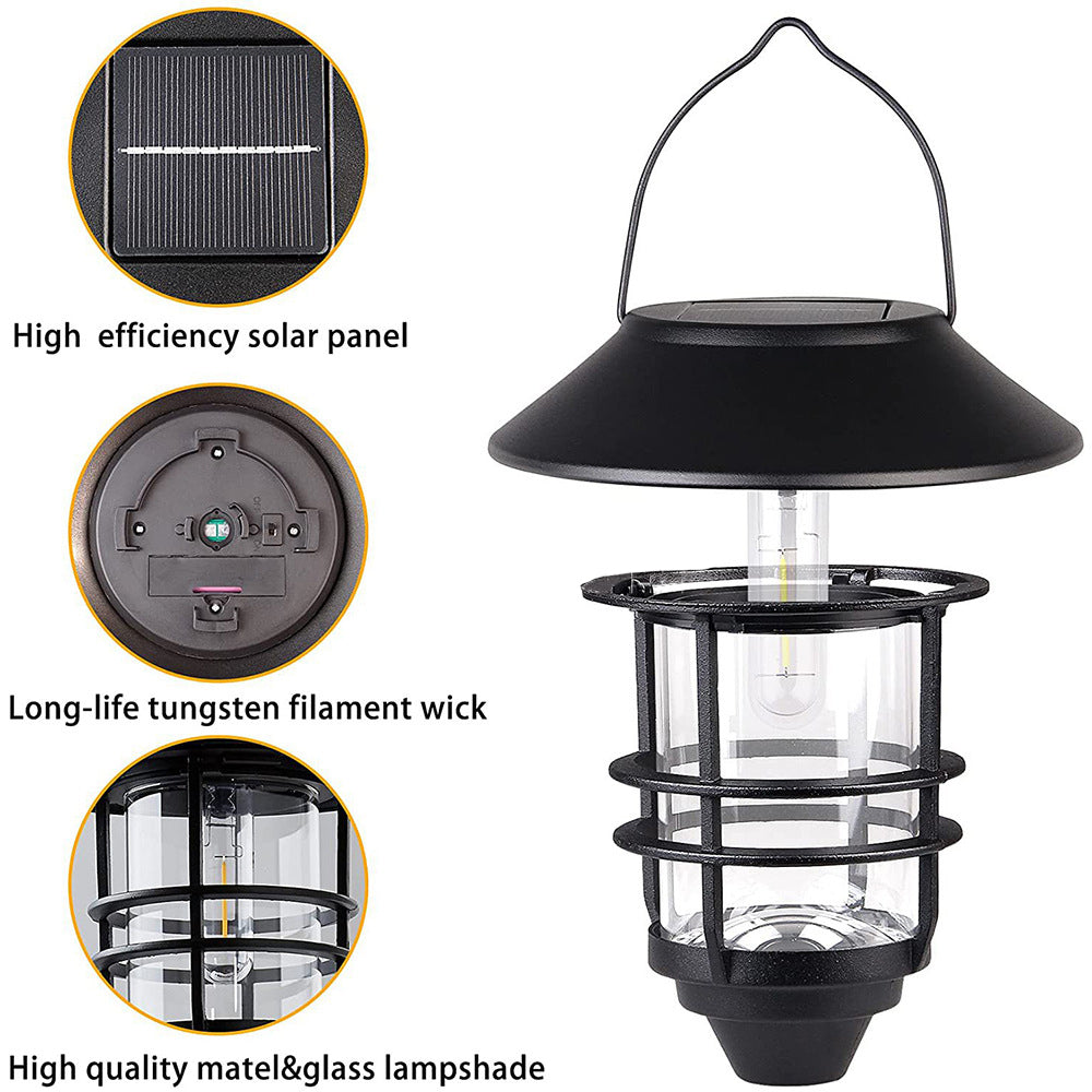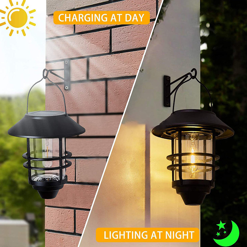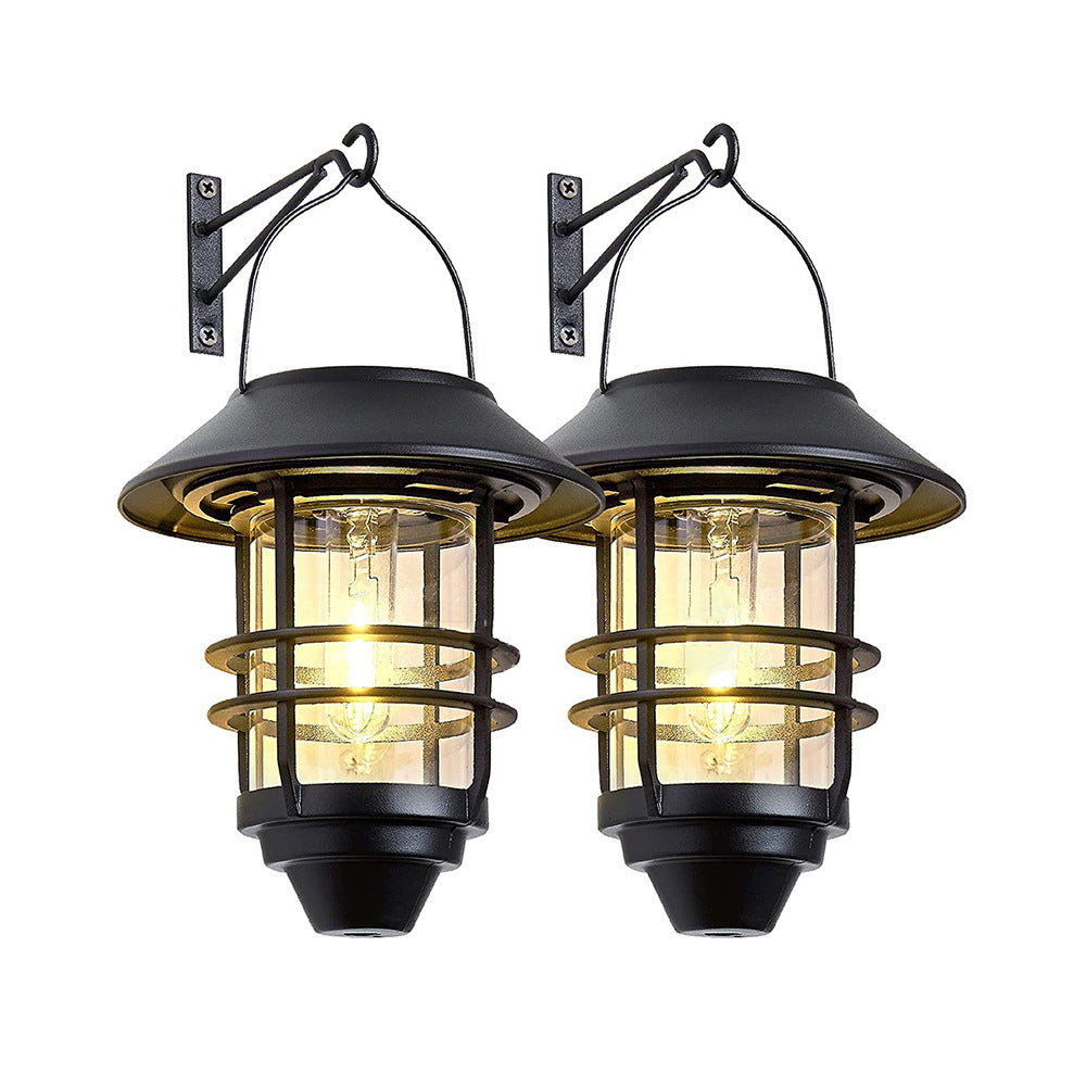 Contemporary Retro Solar Waterproof Aluminum Glass Lantern Cylinder 1-Light Hanging Wall Sconce Lamp For Outdoor Patio