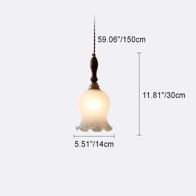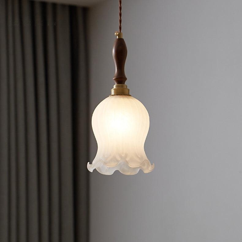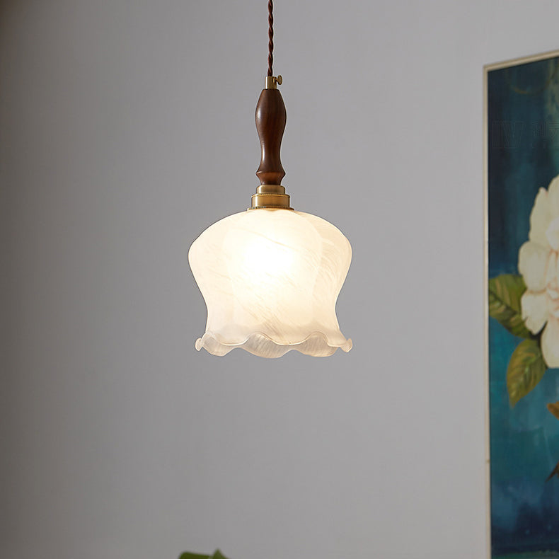 Contemporary Retro Solid Wood Flower Glass Shade 1-Light Pendant Light For Dining Room