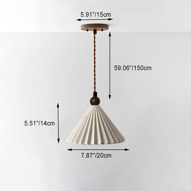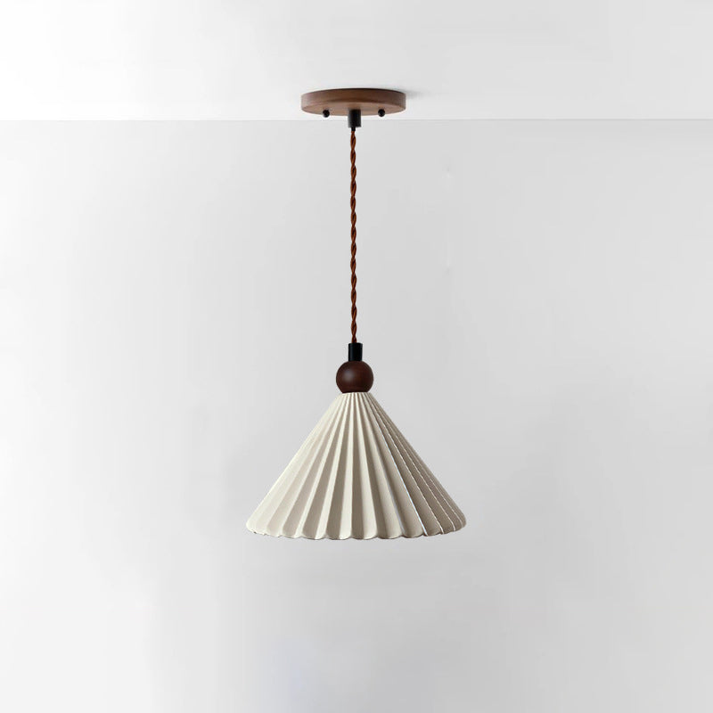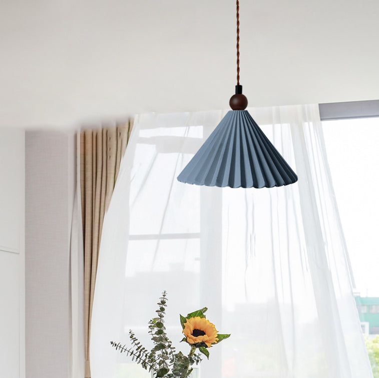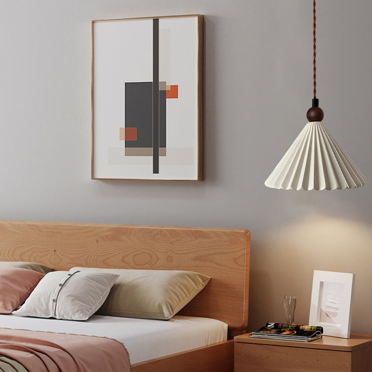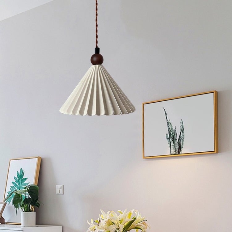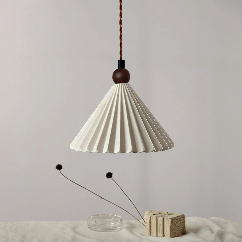 Contemporary Retro Solid Wood Pleated Ceramic Conical Shade 1-Light Pendant Light For Bedroom